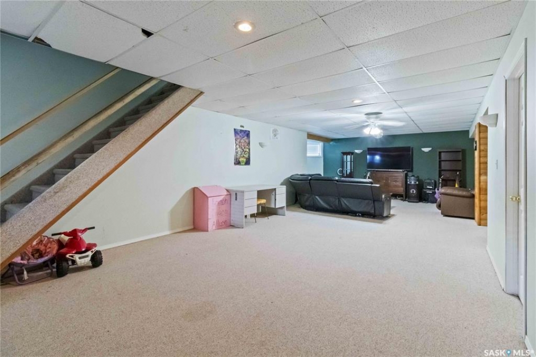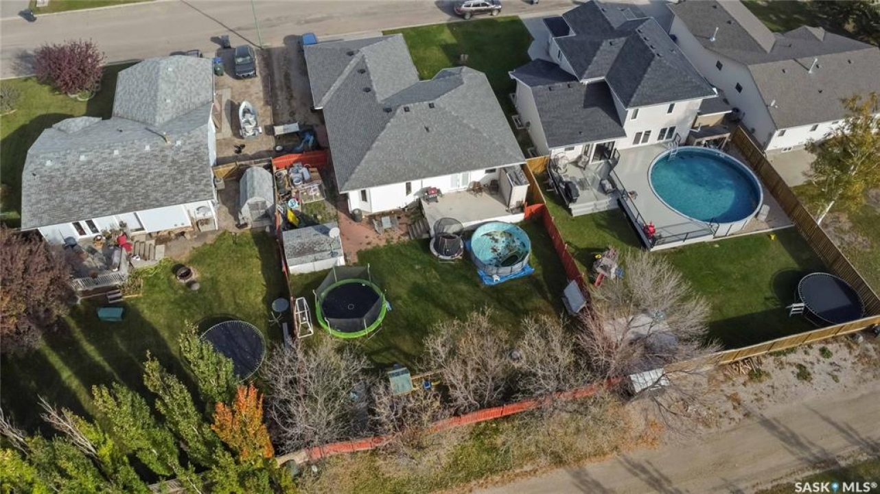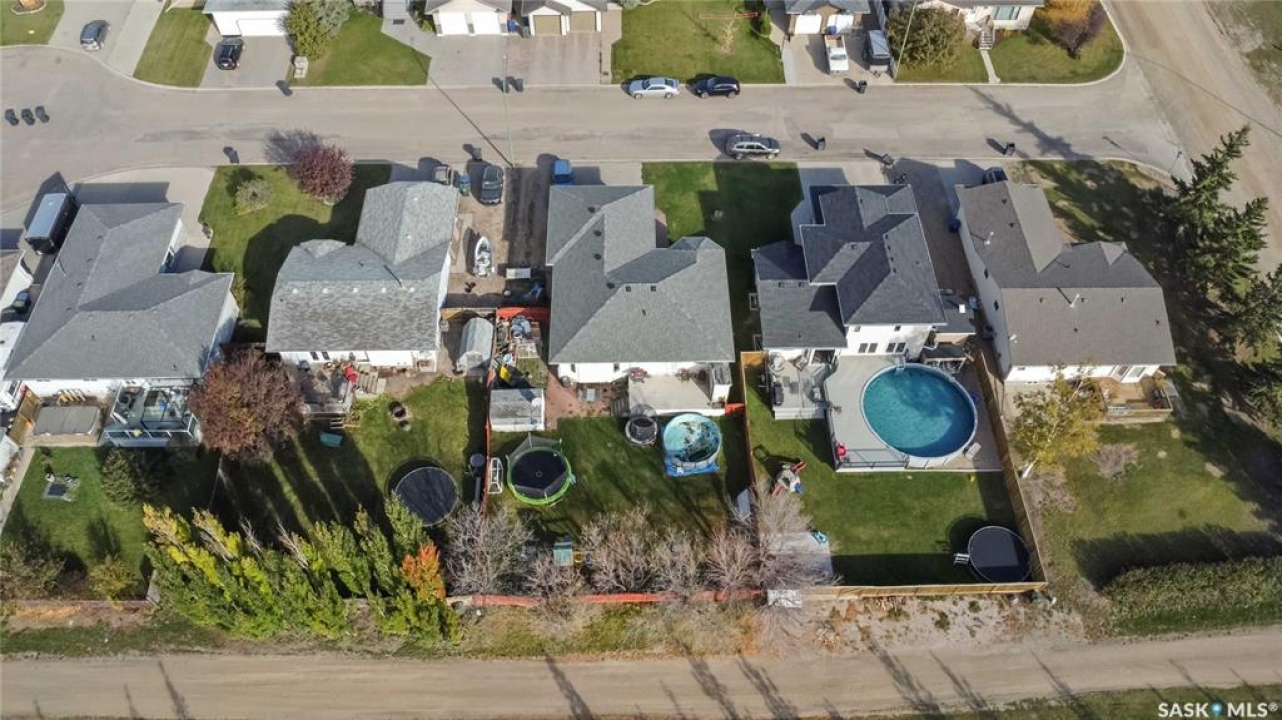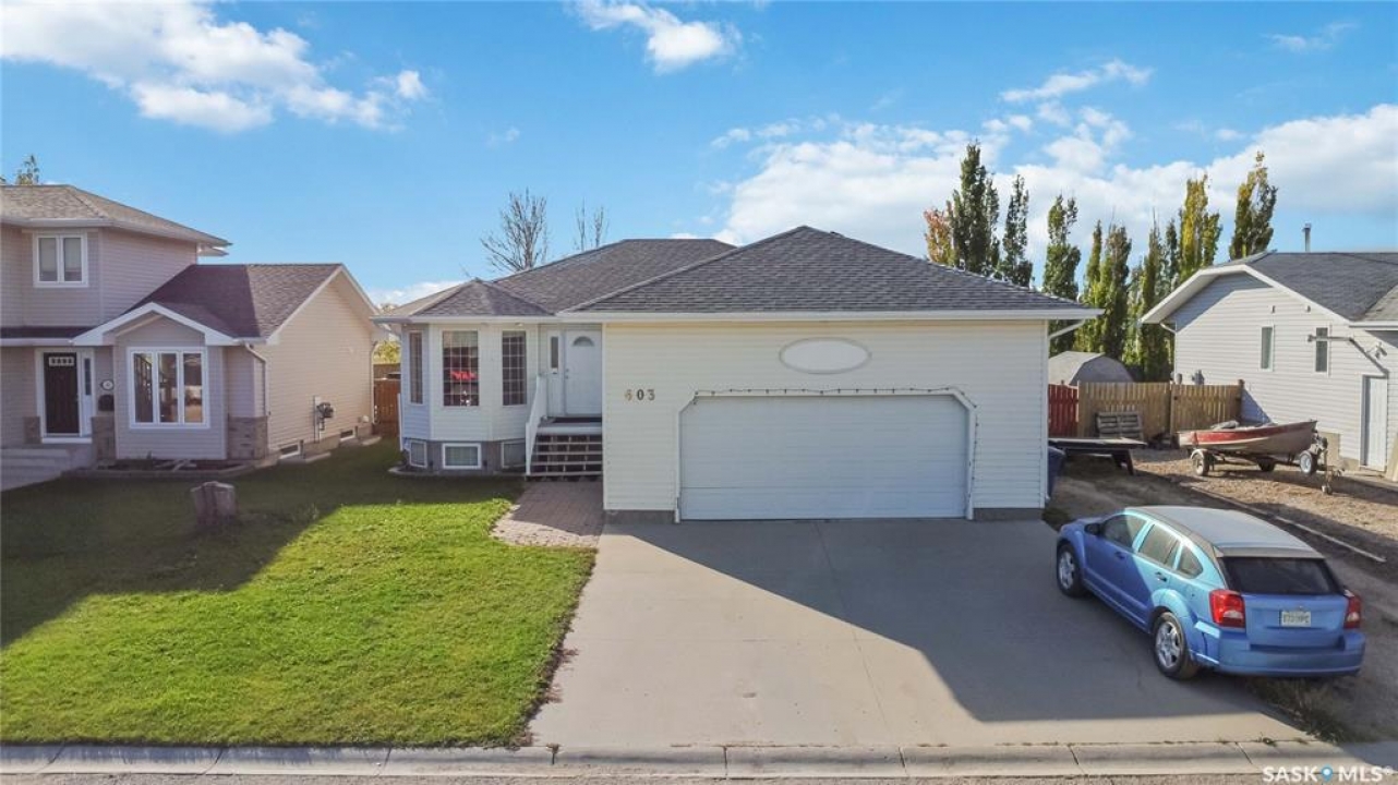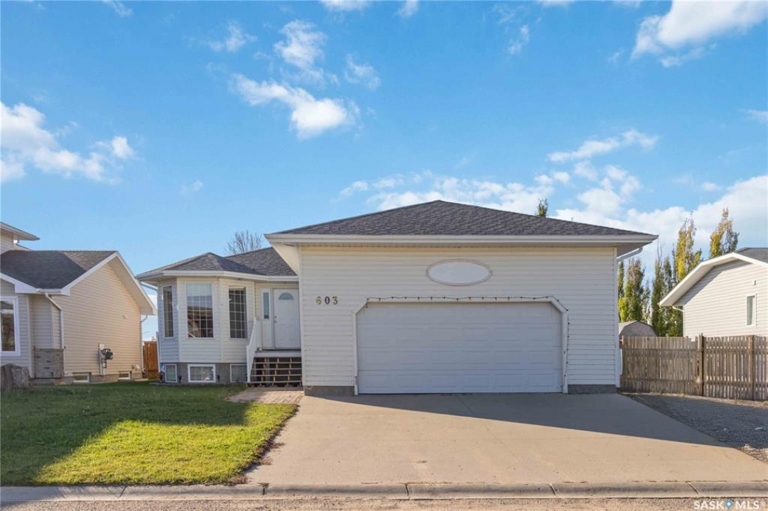 Welcome to 603 Cannon Court in Aberdeen. This home is situated on one of the best lots in the community. Located on a quiet cul de sac that backs onto a park that connects to the school and arena. Not to mention the huge 8246 square foot lot that is fully fenced and landscaped. There is a double concrete driveway out front with room on the west side of the lot for rv parking. The home comes with a double 24x24 attached garage that is insulated and boarded. The main floor of this raised bungalow has a large living room at the front of the house, kitchen and dining face the back yard with entry to the deck off the dining. The kitchen features a large island and corner pantry. There is a large master bedroom with a full 4 pc bath, a second bedroom, laundry room and 2nd 4 piece bath all on the main floor. The basement has a bedroom, a large 2 piece bath that has lots of room for a tub or shower and the rest of the basement is a huge family room. The home has new shingles, furnace, water heater and hrv. All this for $374900.00. Call to view!!