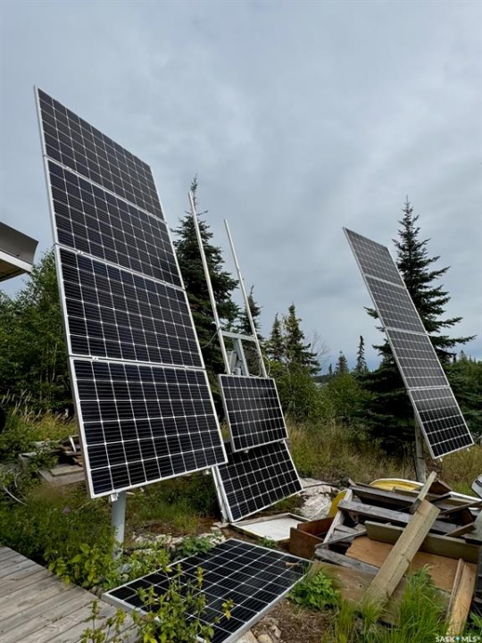 Have you dreamed of your own charming cottage on Lac La Ronge?! This adorable log cabin is located on its own island a short boat ride from Wadin Bay and close to Mooney Beach. The cabin is fully insulated, has running hot water, and is set up with a VERY robust solar system. It comes fully furnished with beds to sleep 6. The shed right next to the cabin is a tastefully disguised seacan that houses a composting toilet and the batteries for the power system with plenty of extra room for storage. Down by the water, you will find the dock (with a slide for the kids to enjoy all summer long!) and a floating boathouse right next to a small beach. A short stroll up from the dock along the boardwalk brings you to your deck, fire pit area, and brand new Fire Water hot tub! If you want more space for the family to gather, there is plenty of room on the site to build a larger cabin and keep the existing one as a guesthouse. Or keep it simple and just show up and enjoy! This is an ideal location on Lac La Ronge with mature trees all around the island and a quick boat ride back to mainland. This well maintained, turnkey cabin is ready for new owners - pack your bathing suits and hit the hot tub, then the lake, then back to the tub!