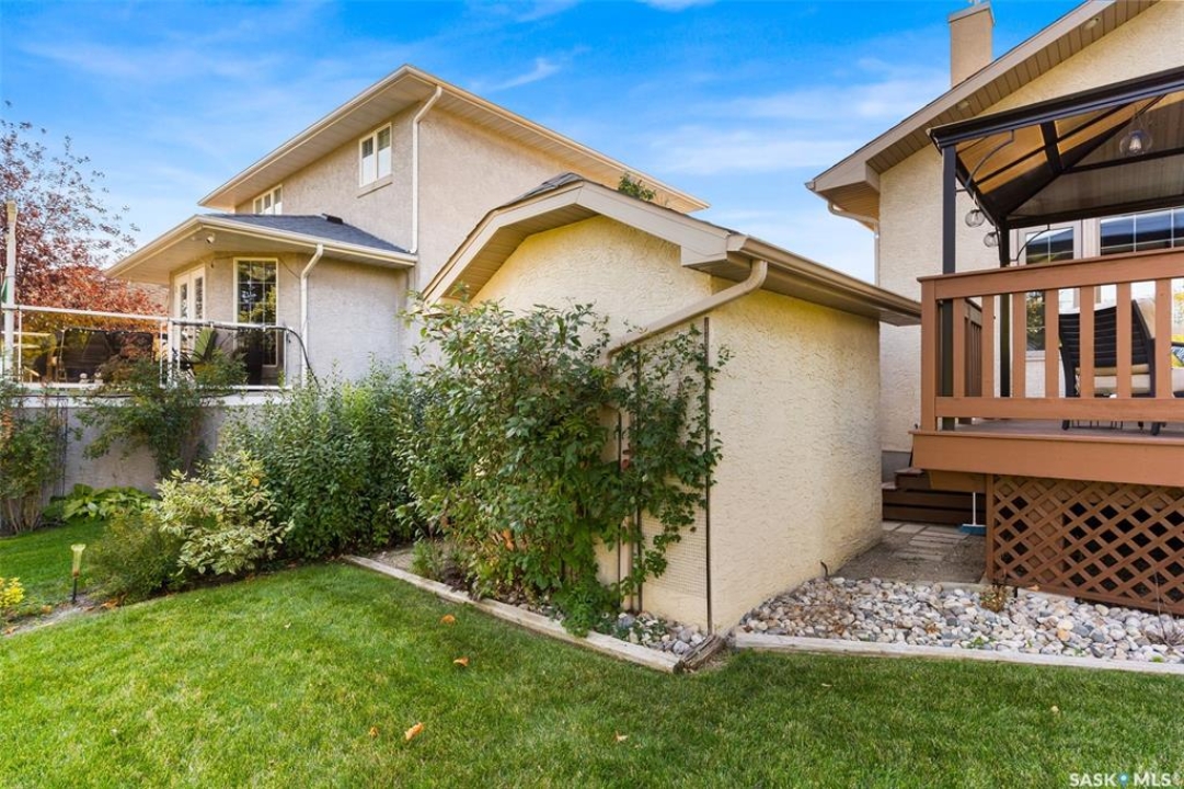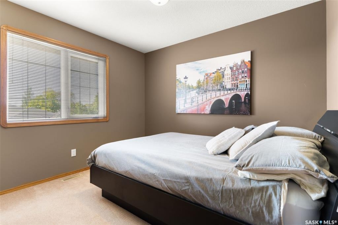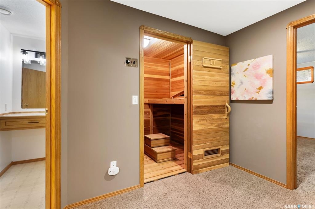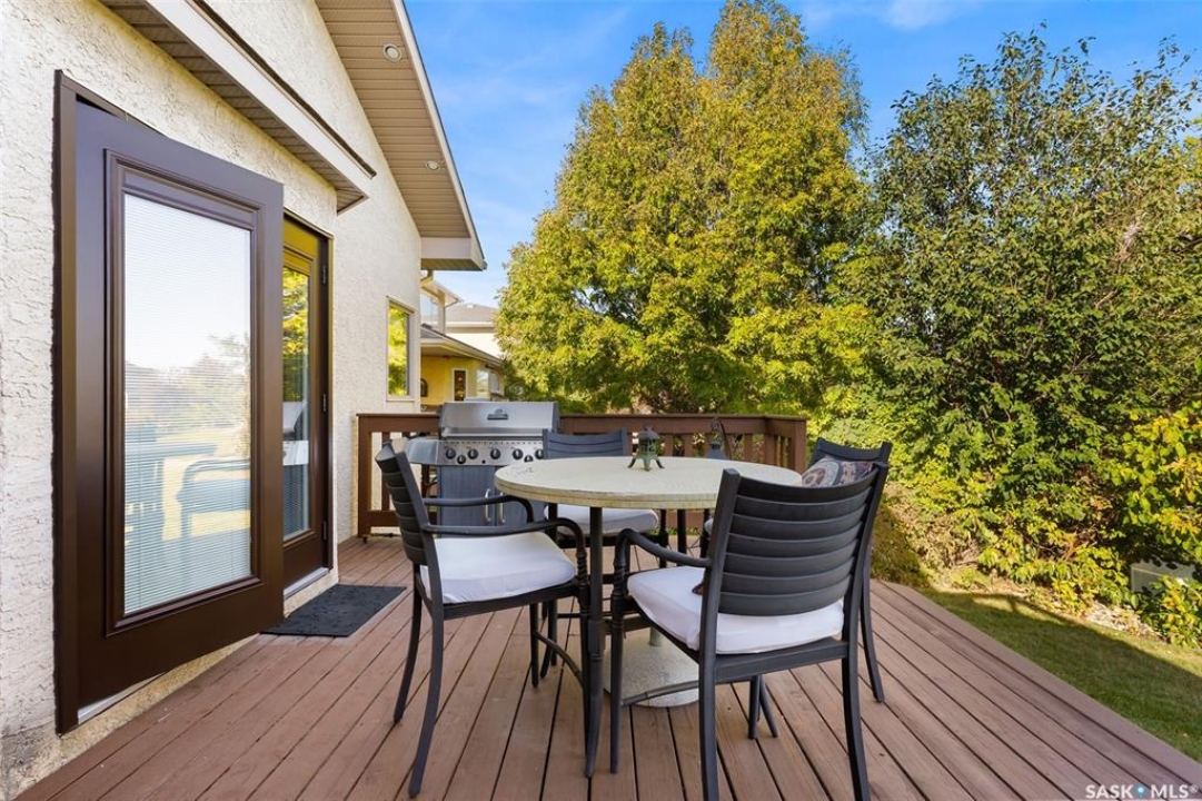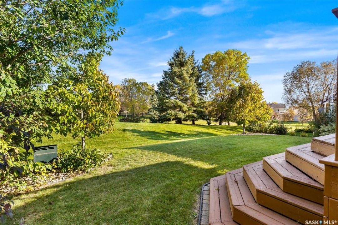 Welcome to 3023 Wimbledon Drive – A Rare Find in Windsor Park! Situated in one of Regina's most sought-after neighborhoods, this beautifully maintained family home backs onto green space and a walking path, offering privacy, tranquility, and convenience. Just steps from Jack Mackenzie and St. Gabriel Schools, as well as the Sandra Schmirler Leisure Centre, pool, library, and water park, the location is truly unbeatable! Step inside to discover over 2,100 sq. ft. of thoughtfully designed living space, featuring: a 24' x 24' fully finished double attached garage with radiant heat and floor drain – ideal for our Saskatchewan winters. A spacious front entry leading into a warm and inviting front living and formal dining room, complete with hardwood floors. A custom oak kitchen with centre island, walk-in pantry, under/over-cabinet lighting, ceramic tile flooring, corner sink, and direct access to the deck overlooking the park – perfect for entertaining or relaxing with family. Vaulted ceilings in the kitchen and adjoining family room, peaking at 14 feet for an airy, open feel. A convenient main floor office/den, 2 piece bathroom and laundry room with sink. Upstairs, you'll find: Three spacious bedrooms, including a primary suite with a large walk-in closet and luxurious ensuite featuring a corner shower and separate tub. A built-in desk in the second bedroom – perfect for students or a home office setup. The fully finished basement offers exceptional bonus space with a rec room featuring a gas fireplace, wet bar, games area, additional bedroom, full bathroom, and your very own sauna! Recent upgrades include: New front and back doors (2019), Shingles (2020), Two furnaces (2021), Central air conditioning (2021). This home is an absolute gem – perfect for families, entertainers, and anyone looking for a great home in a prime location.
