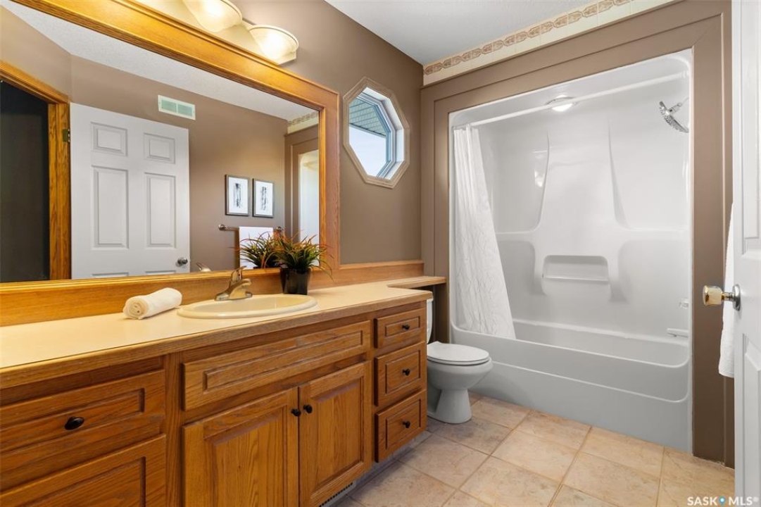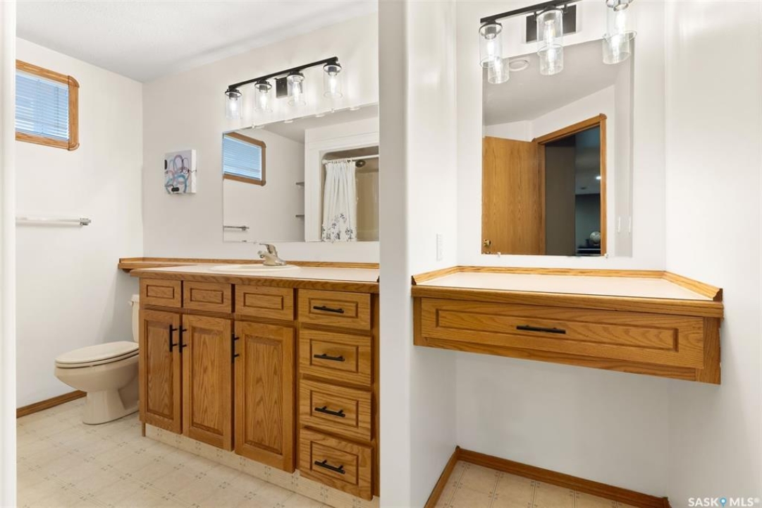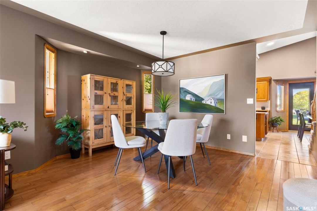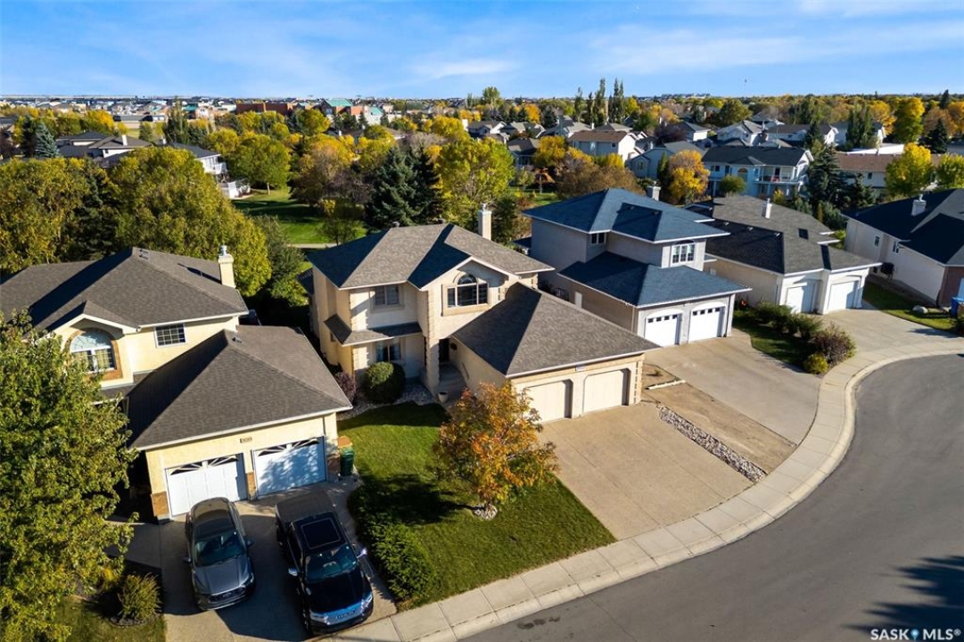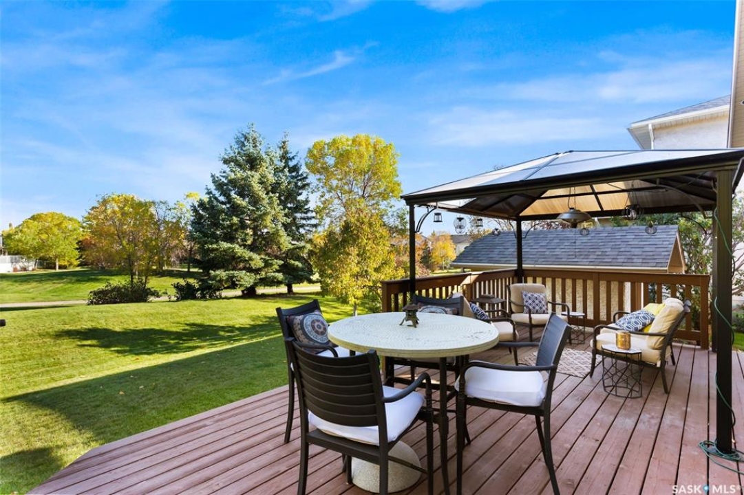 Welcome to 3023 Wimbledon Drive – A Rare Find in Windsor Park! Situated in one of Regina's most sought-after neighborhoods, this beautifully maintained family home backs onto green space and a walking path, offering privacy, tranquility, and convenience. Just steps from Jack Mackenzie and St. Gabriel Schools, as well as the Sandra Schmirler Leisure Centre, pool, library, and water park, the location is truly unbeatable! Step inside to discover over 2,100 sq. ft. of thoughtfully designed living space, featuring: a 24' x 24' fully finished double attached garage with radiant heat and floor drain – ideal for our Saskatchewan winters. A spacious front entry leading into a warm and inviting front living and formal dining room, complete with hardwood floors. A custom oak kitchen with centre island, walk-in pantry, under/over-cabinet lighting, ceramic tile flooring, corner sink, and direct access to the deck overlooking the park – perfect for entertaining or relaxing with family. Vaulted ceilings in the kitchen and adjoining family room, peaking at 14 feet for an airy, open feel. A convenient main floor office/den, 2 piece bathroom and laundry room with sink. Upstairs, you'll find: Three spacious bedrooms, including a primary suite with a large walk-in closet and luxurious ensuite featuring a corner shower and separate tub. A built-in desk in the second bedroom – perfect for students or a home office setup. The fully finished basement offers exceptional bonus space with a rec room featuring a gas fireplace, wet bar, games area, additional bedroom, full bathroom, and your very own sauna! Recent upgrades include: New front and back doors (2019), Shingles (2020), Two furnaces (2021), Central air conditioning (2021). This home is an absolute gem – perfect for families, entertainers, and anyone looking for a great home in a prime location.