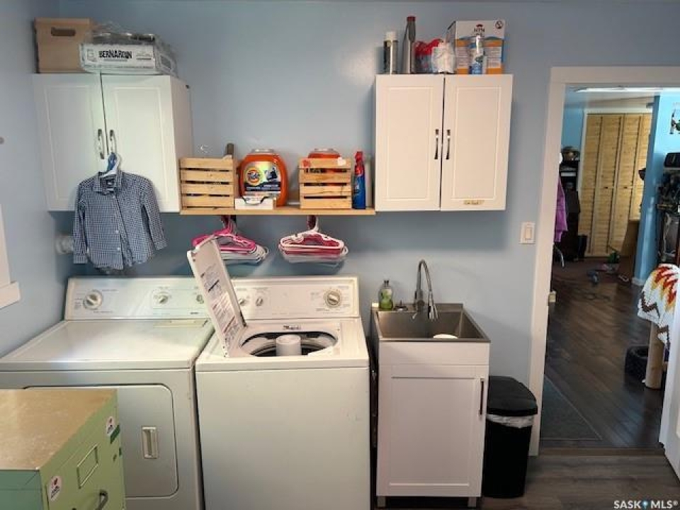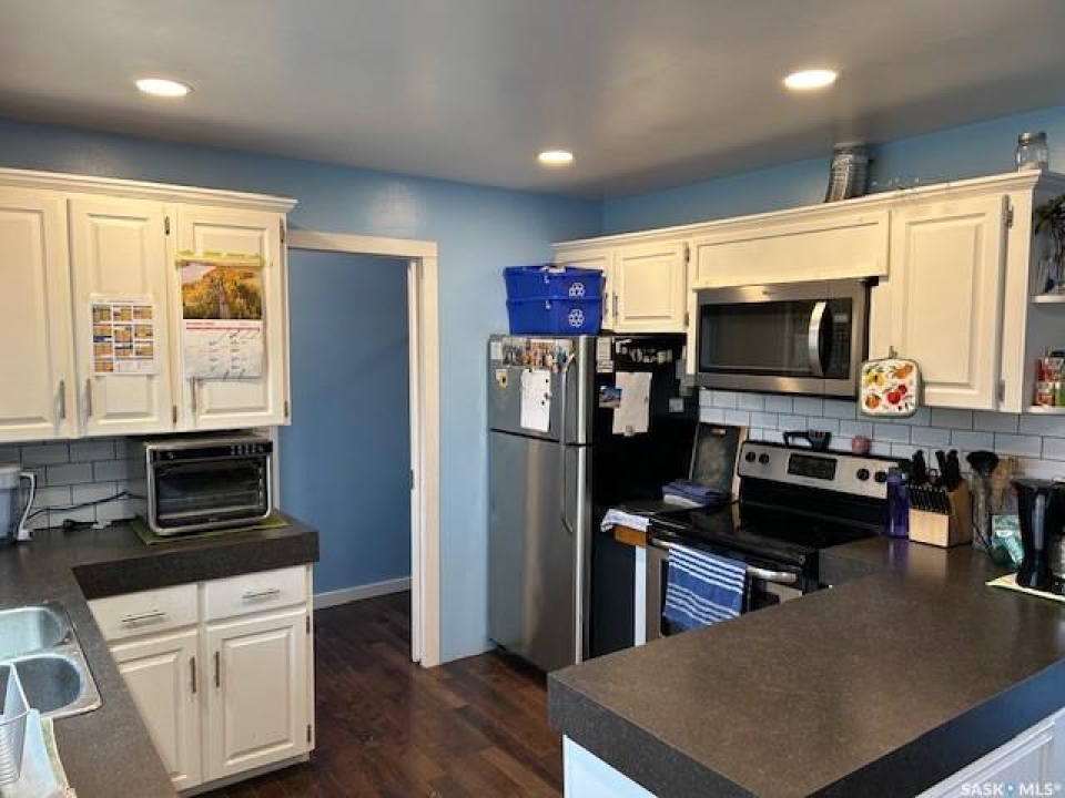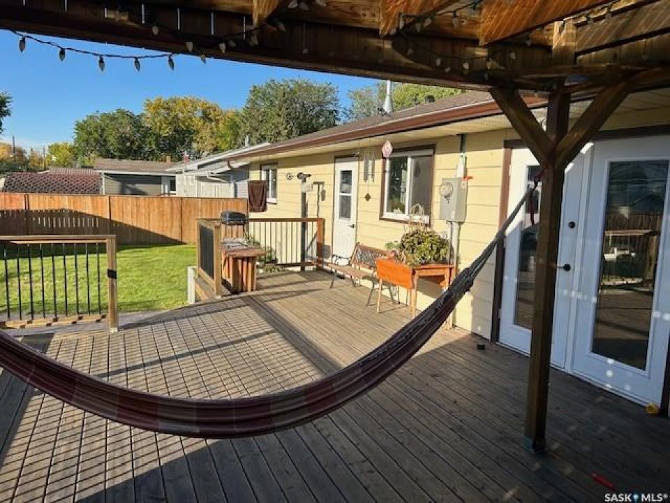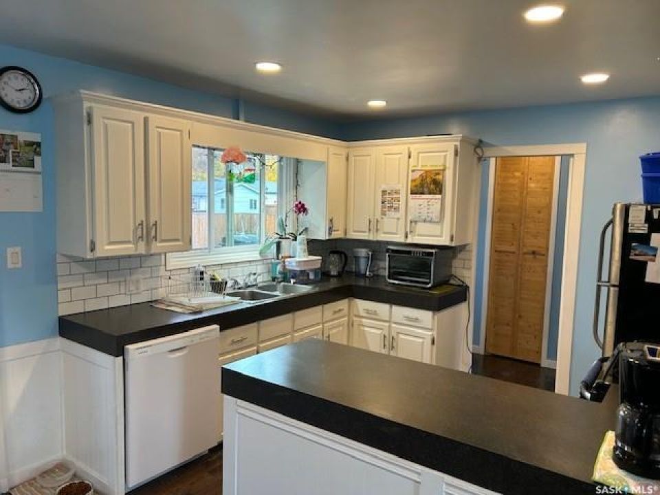 Located on a quiet crescent in Canora, SK, this 1344 sqft home offers a inviting layout and convenient features in a desirable location, ideally situated next to the Canora Golf Course and park. The main floor welcomes you with an open kitchen that boasts ample cabinetry and generous counter space, perfect for daily meal prep and entertaining. Adjacent is the dining room, which flows into the spacious living area, which is perfect for gatherings. The home includes 3 bedrooms and a 4 pce bath, along with a practical main floor laundry and storage area that provides direct entry to the single attached garage. The poured concrete basement is unfinished and open for development, offering a great opportunity to tailor the space to your needs. From the dining room, patio doors lead to a vast deck with a covered pergola, extending entertaining space to the outdoors while also enjoying the west facing sunsets. The property features a large, fully fenced yard centered around a massive stamped concrete pad—an excellent setting for hosting, relaxing, or roasting marshmallows around a fire. There have been several upgrades over the years which include: fence - 2020 & 2022, shingles - 2016, deck w/ pergola - 2015, stamped pad and walkways - 2015, hardwood floors - 2014, windows (on west side) - 2009, attic insulated - 2008, furnace - 2008. Included in the purchase price: storage sheds, fridge, stove, washer & dryer 'as is', dishwasher - 2025 and all window coverings. Call today for your personal tour!!!