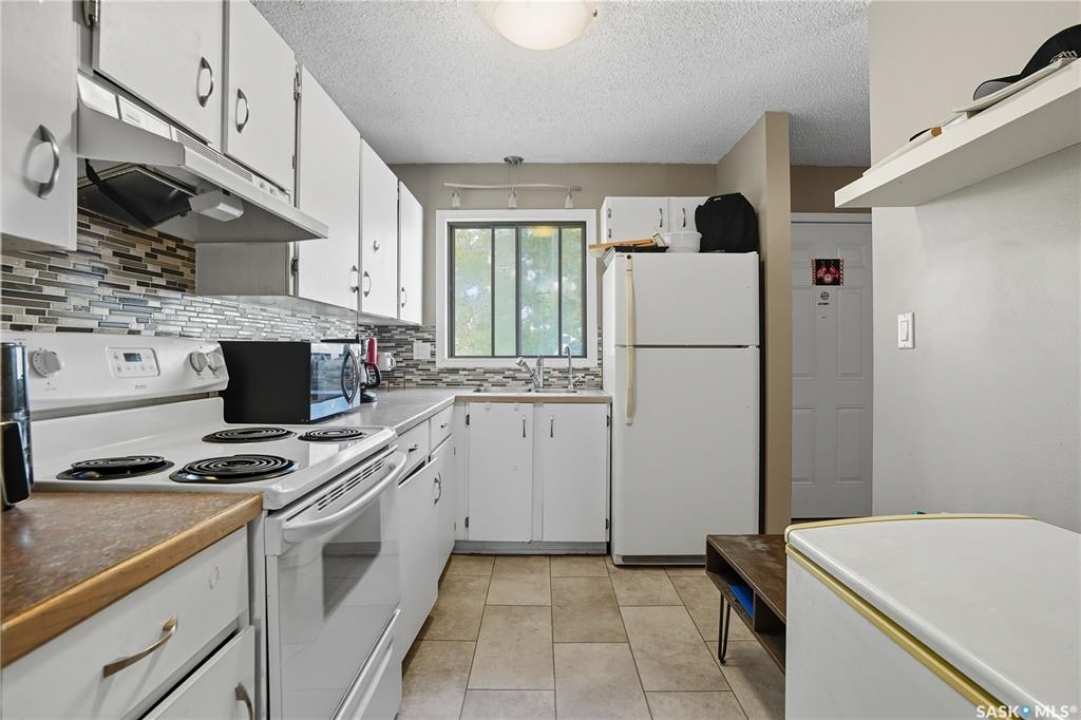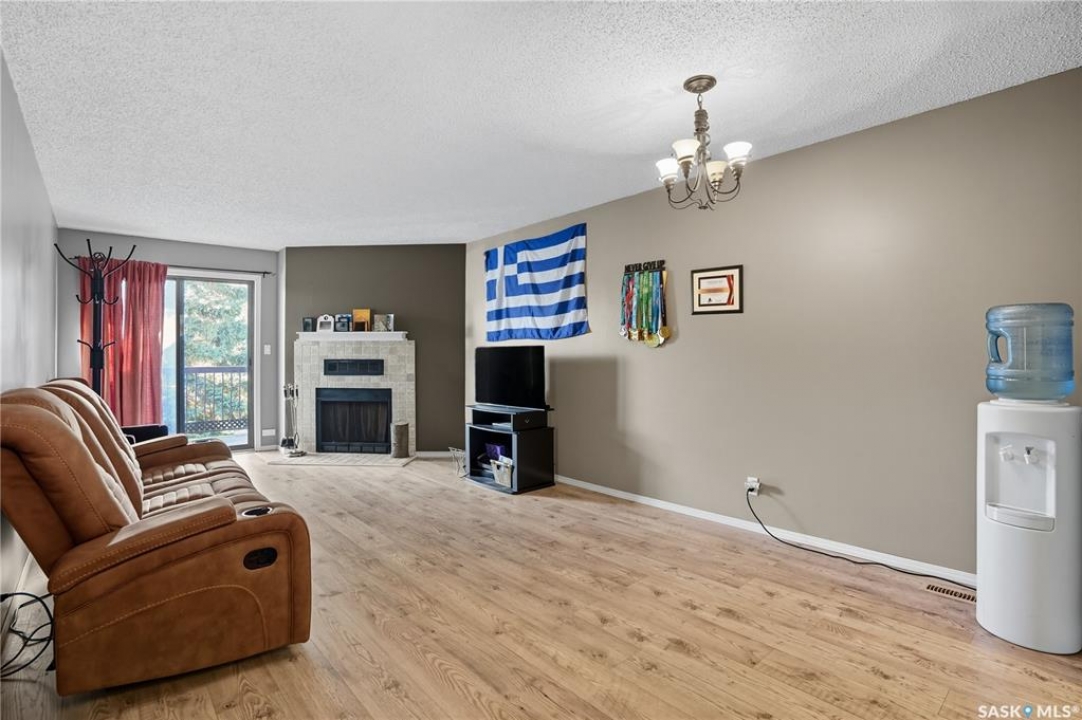 Perfectly located just steps from Rochdale Park—with the lake, walking paths, arena, and all the North End amenities nearby—338 Cedar Meadow Drive offers the perfect blend of comfort, convenience, and low-maintenance living. This bright and spacious upper-floor unit means no noisy neighbours above you, so you can truly relax and enjoy the peace and quiet of home. Inside, an open layout welcomes you with a cozy decorative fireplace—perfect for unwinding after a long day or hosting friends. The kitchen is fully equipped with all appliances, ample counter space, and plenty of cabinets to make everyday cooking easy and enjoyable. You'll love the thoughtful storage throughout, including built-in shelving and a well-organized laundry area that keeps things tidy and functional. Both bedrooms are generously sized, with the primary featuring two closets, and laminate hardwood flooring flows throughout most of the home for a clean, modern feel. A 4-piece bathroom completes the layout with comfort and style. Step outside to enjoy two large balconies—front and back—**ideal for morning coffee, fresh air, or warm summer evenings. There's even extra outdoor storage right on the balcony for added convenience. This condo also includes one electrified parking stall, and the location can't be beat—everything you need just minutes away. Whether you're a first-time buyer, downsizing, or looking for a smart, low-maintenance investment, this home delivers great value and an easy North End lifestyle. Come see for yourself how comfortable condo living can be at 338 Cedar Meadow Drive!