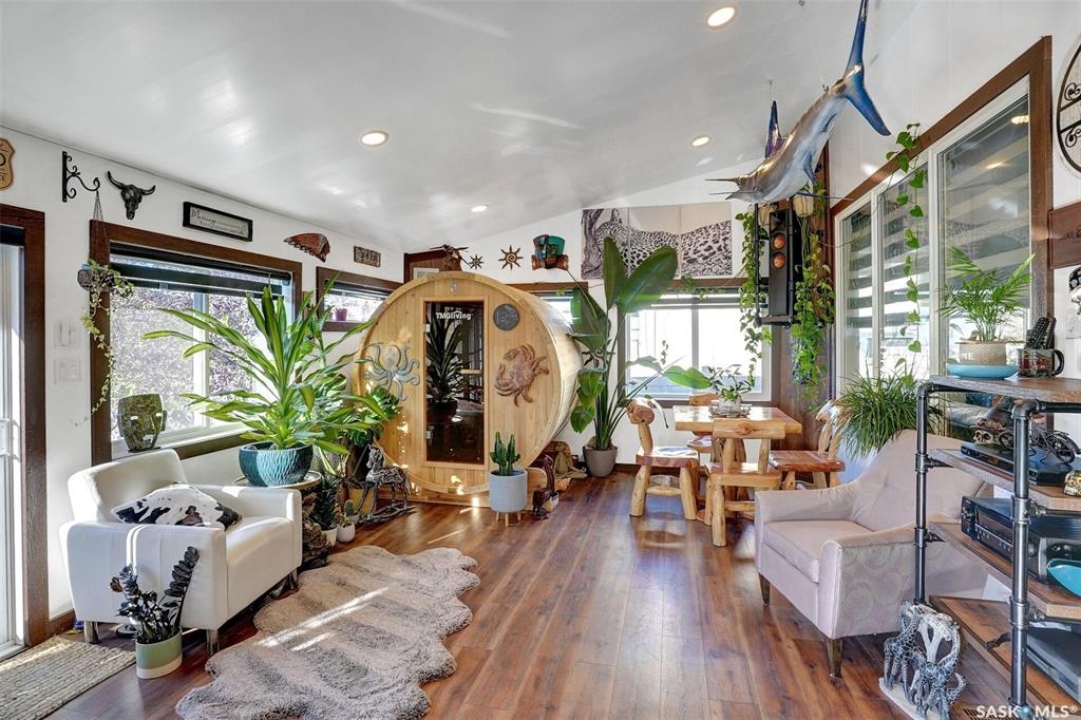 Your Private Retreat Awaits: If space, comfort & luxury living are what you've been searching for—this is it! Step inside this impressive two-storey home & experience the abundance of space designed for both relaxation & connection. The main floor flows seamlessly from the welcoming foyer to the living room with a great view of the greenery filled sunroom & back yard beyond. The main floor space is versatile providing a dining area plus an eating bar at the kitchen counter. The stylish cabinetry, sleek MXL faucet, Ionza filtration & high end finishes create a stunning chef's kitchen. Sliding glass doors open to a four-season sunroom (476 sf) with hot tub & sauna that was added in 2023 at a cost of over $150,000.00 with waterproof finish on the walls, it's own A/C,furnace, air exchanger and ventilation. Convenient powder room on main floor.Direct access to heated garage 25 x 24. Upstairs, you'll love the carpet (new in October 2025) that continues to the three generous bedrooms plus a beautiful bonus room ideal for movie nights, games area or a creative space. The primary suite is a true sanctuary, featuring two walk-in closets & a luxurious ensuite that feels straight out of a boutique hotel. Convenient upstairs laundry. The basement is fully insulated and wired: ready for your design ideas. 200 AMP service. Drip line for trees. Gererac back-up generator is roughed in. The backyard is an extension of living space with a heated Studio (16 x 10.8) for a peaceful workspace, craft room , yoga ,artist, hobbyist… with exquisite finishes. There's a “log” shed( 12 x 18). Everything is finished with attention to detail. Lush artificial turf and greenery. Outdoor shower. Plenty of patio space. From the thoughtful design to the upscale extras, this home offers the comfort of space & the tranquility of a retreat—all in one exceptional package.