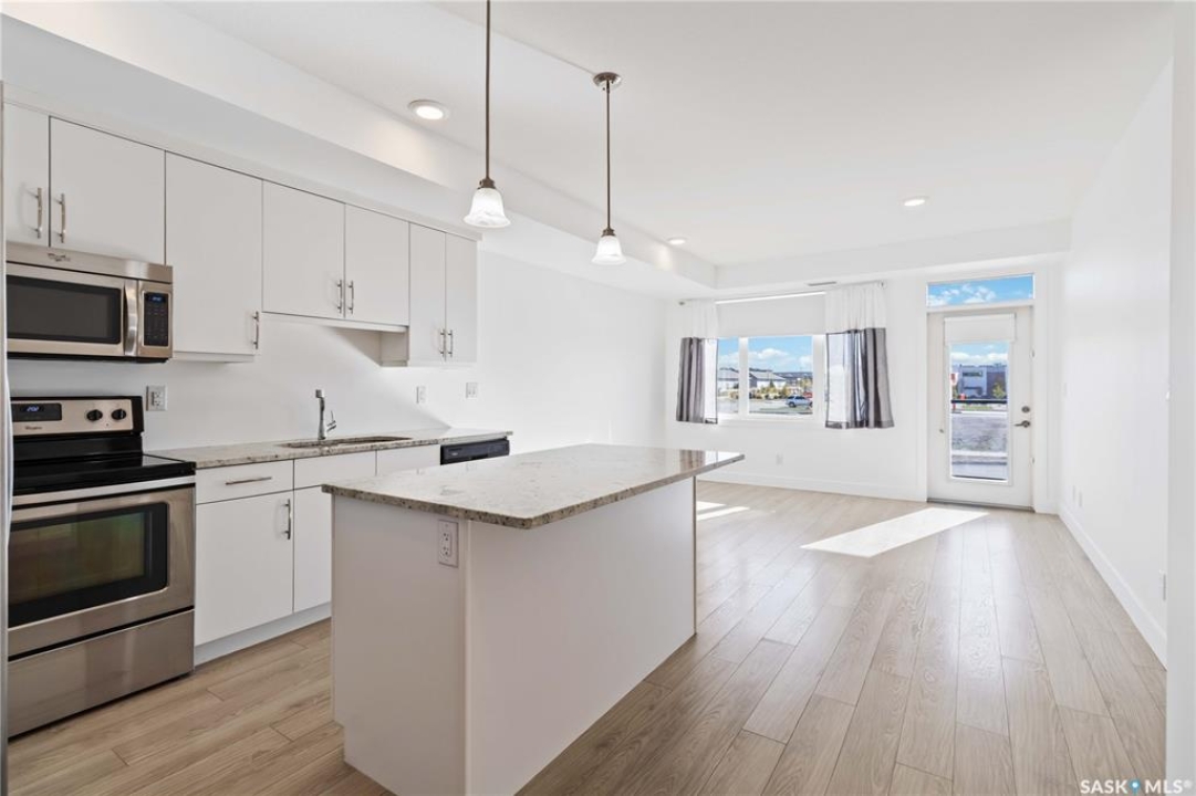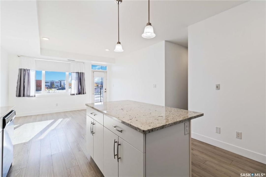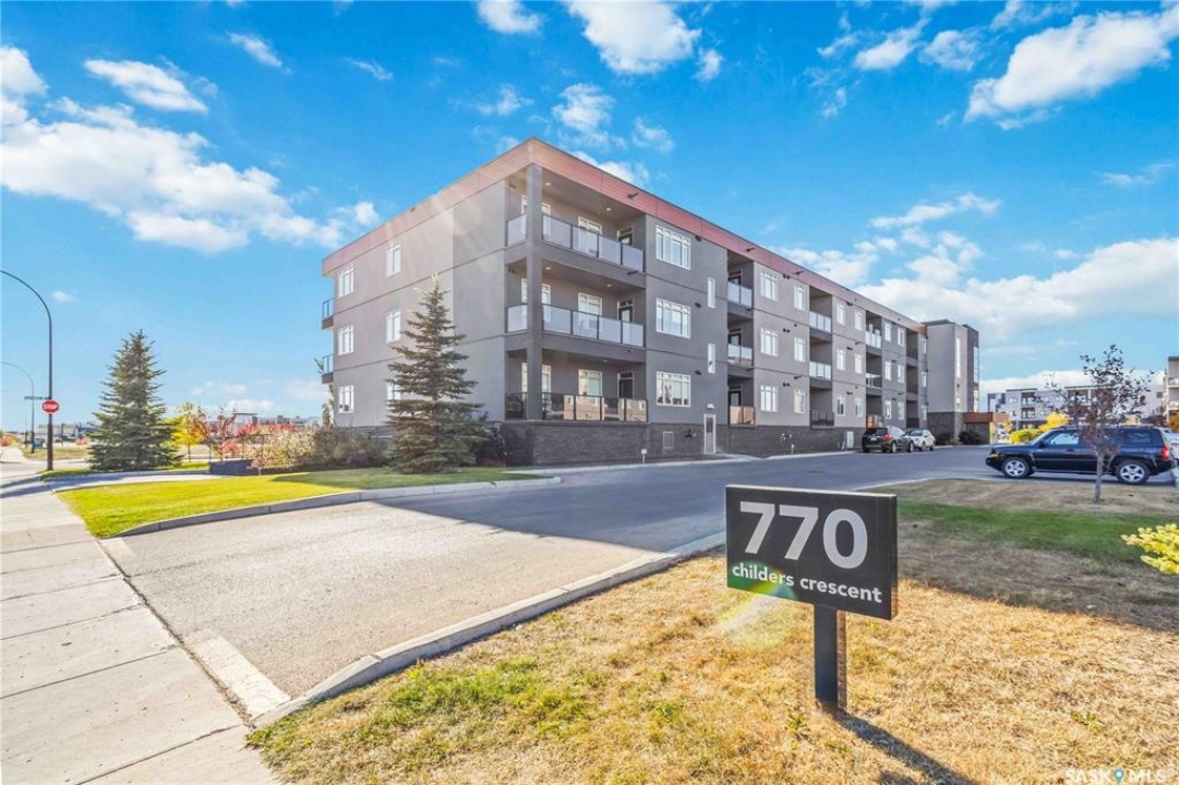 Welcome to modern and convenient living at 770 Childers Crescent in the vibrant community of Kensington! This 936 sq/ft apartment-style condo is designed for comfort and ease. As you step inside, you'll be greeted by an open and bright living area featuring large windows and durable vinyl plank flooring. The impressive kitchen is the heart of the home, offering sleek quartz countertops, a full set of stainless steel appliances, ample storage, and a large island with an eat-up bar that's perfect for entertaining. Step out onto the generous-sized balcony to enjoy your private outdoor space. This unit is equipped with essential comforts, including in-suite laundry, central air conditioning, and efficient forced-air heating. Forget scraping windows in the winter—this property includes a parking stall in the secure, heated underground parkade with convenient elevator access directly to your floor. Located just a short walk from all the amenities Kensington has to offer, including groceries, restaurants, banks, and parks, and with quick access to major city routes, this location is second to none. This condo offers the perfect blend of style, function, and location. Contact your real estate agent to schedule a private viewing today!