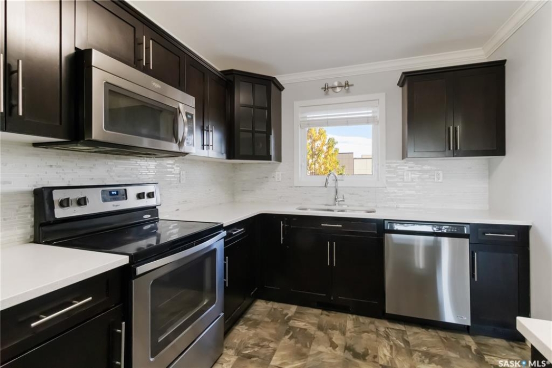 Welcome to #364-620 Cornish Road, a well maintained 3-bedroom, 1.5-bath townhouse in the desirable Stonebridge neighborhood with south-facing park views. The kitchen offers plenty of cabinet space, a window above the sink, sleek white quartz countertops, and a convenient eat-up peninsula. The spacious living room is bright and airy, with large windows and a deck door leading to a balcony overlooking the park. Upstairs, you'll find built-in storage at the landing, a handy second-floor laundry area, and a generous primary bedroom with a walk-in closet, along with two additional bedrooms. This lovely home also includes central air conditioning and two parking stalls. Great location - within walking distance of elementary schools and various amenities.