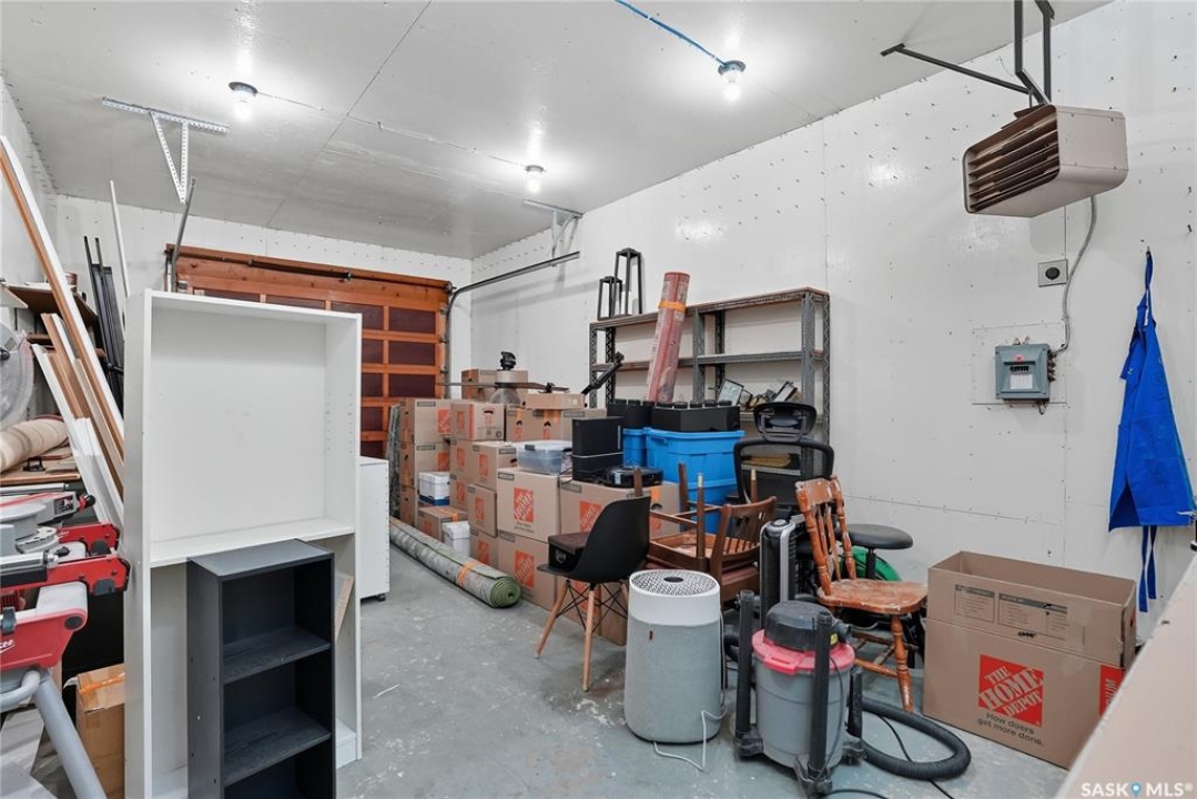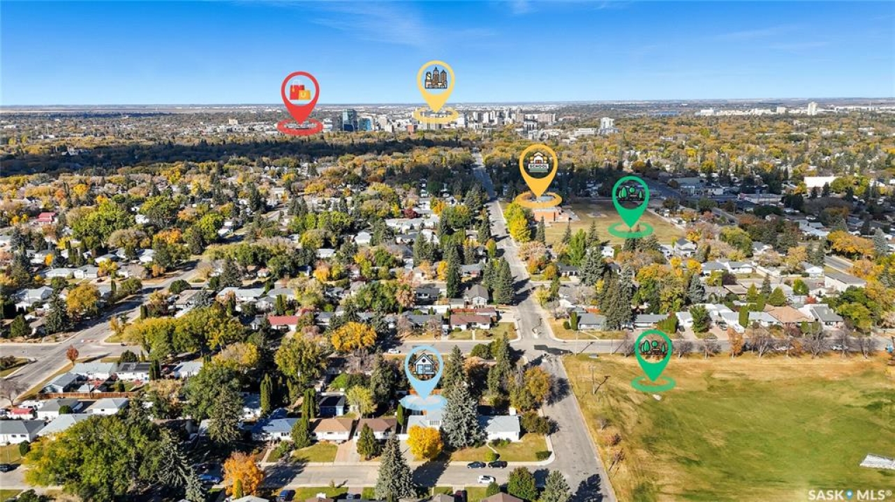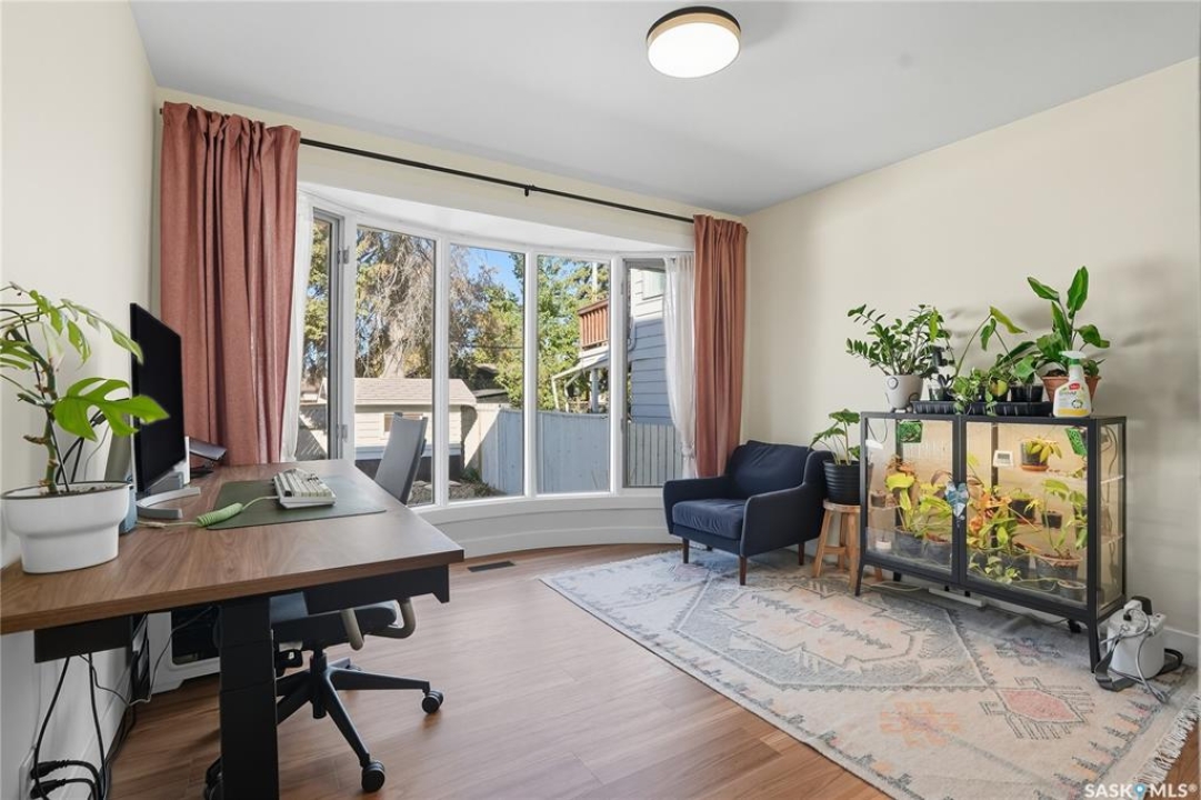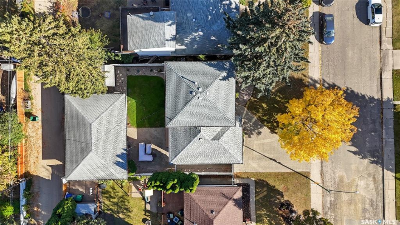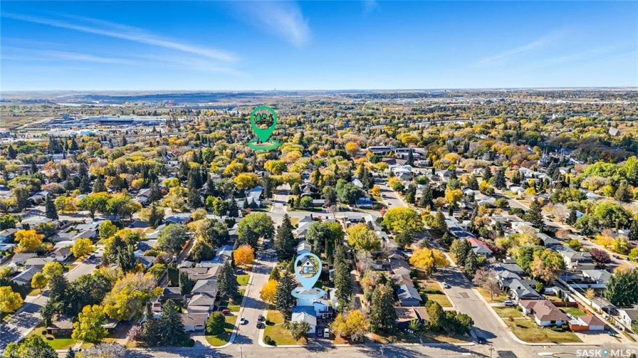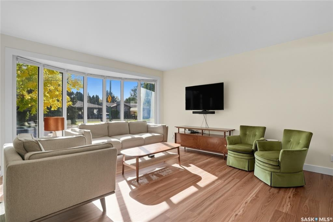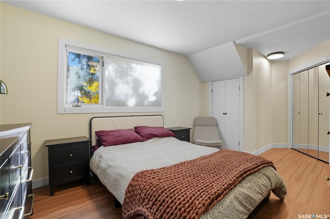 Welcome to 433 Elm Street, a 1,772 sq ft two storey home in the heart of Queen Elizabeth. Built in 1955 and thoughtfully updated, this 4 bedroom, 2 bathroom property combines classic charm with modern comfort. The main floor features bright vinyl plank flooring across the living room, dining area, and kitchen. The kitchen offers generous workspace and storage, and the 5 piece main bath adds a clean, contemporary touch. Two bedrooms on the main level provide flexibility for guests, family, or office use. The upper level is an open living area with incredible natural light and ample space for a studio, home office, or relaxing family room. The full basement includes a large family room, an additional bedroom, a 3 piece bath, a den, and a laundry area. Notable upgrades include new eaves on the house and garage, new basement windows, an upgraded electrical panel and service entry, new washer, dryer, furnace, and water heater in 2024, as well as new shingles on the lower portion of the home in 2025. Additional highlights include two gas fireplaces, central air conditioning, underground sprinklers, and a private fenced yard with mature trees. The triple detached garage features one partitioned stall that is partially heated and insulated, along with a single front drive and total parking for four vehicles. Set on a 55 by 110 foot lot, this property offers a perfect mix of space, updates, and location within one of Saskatoon's most established neighbourhoods.