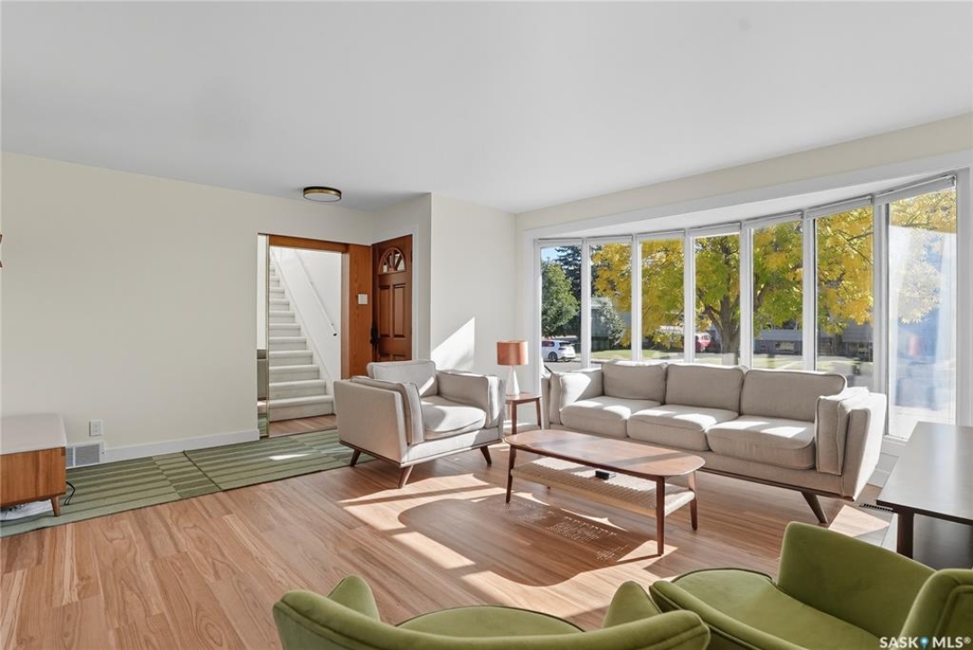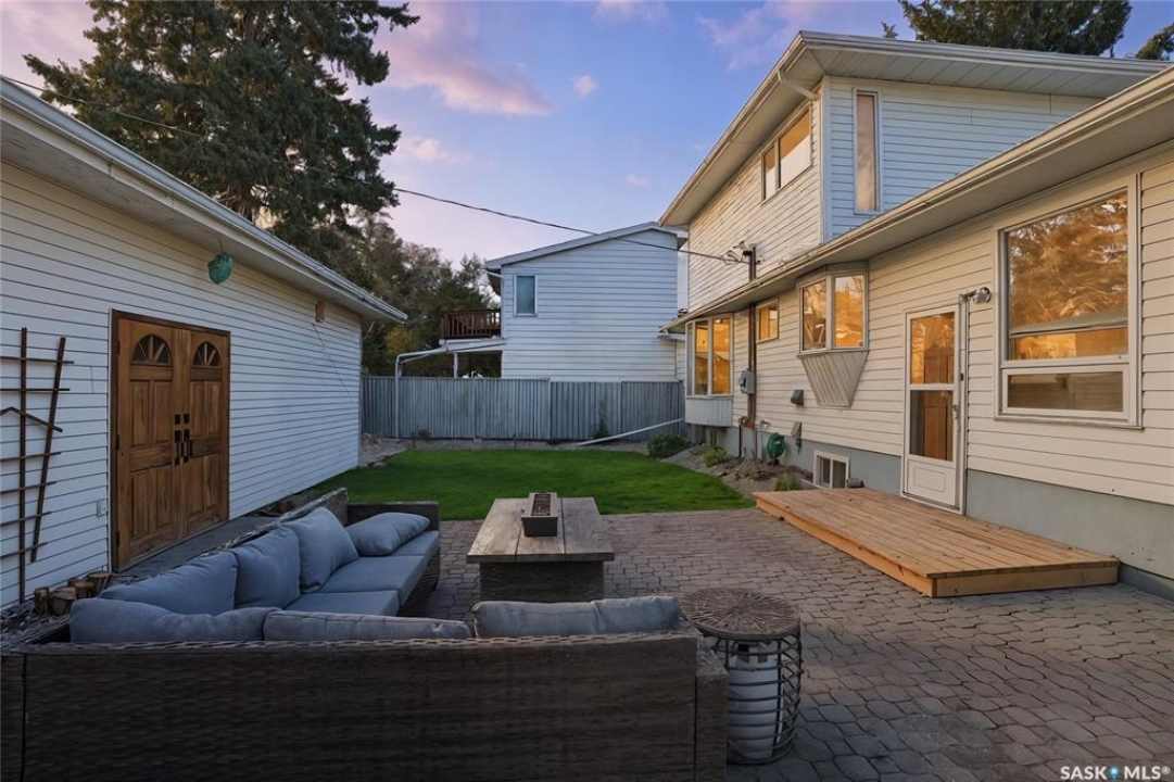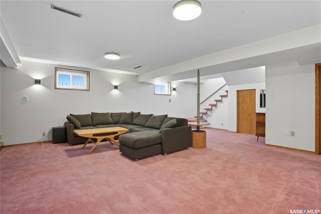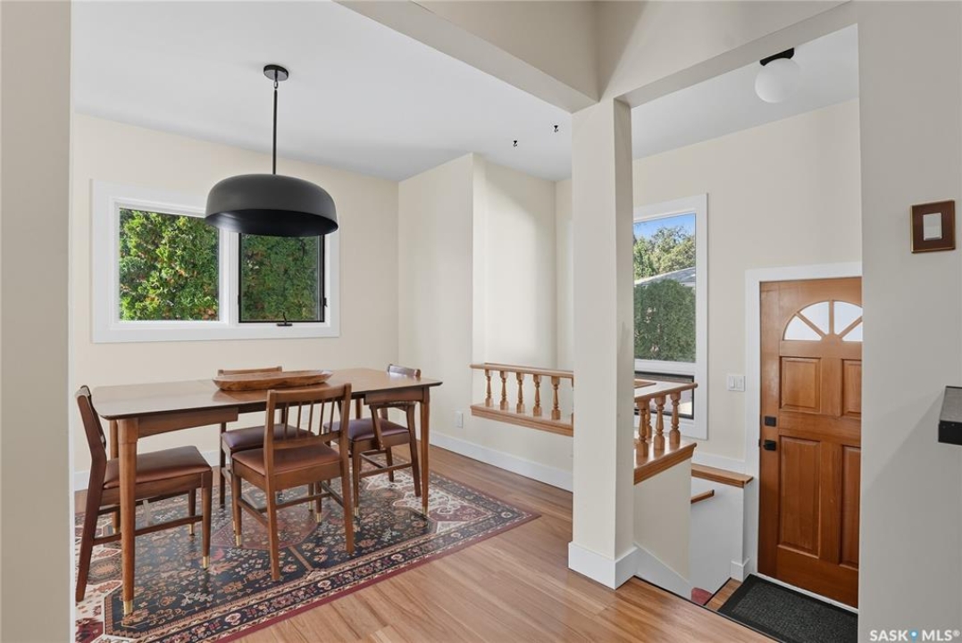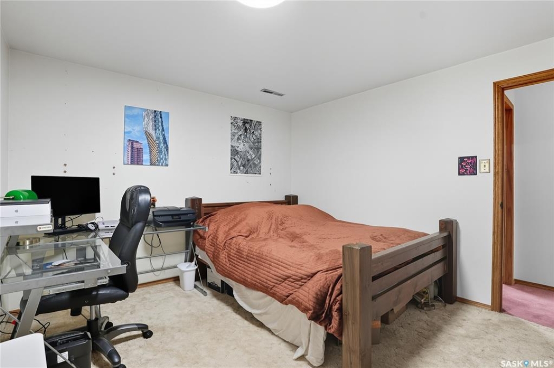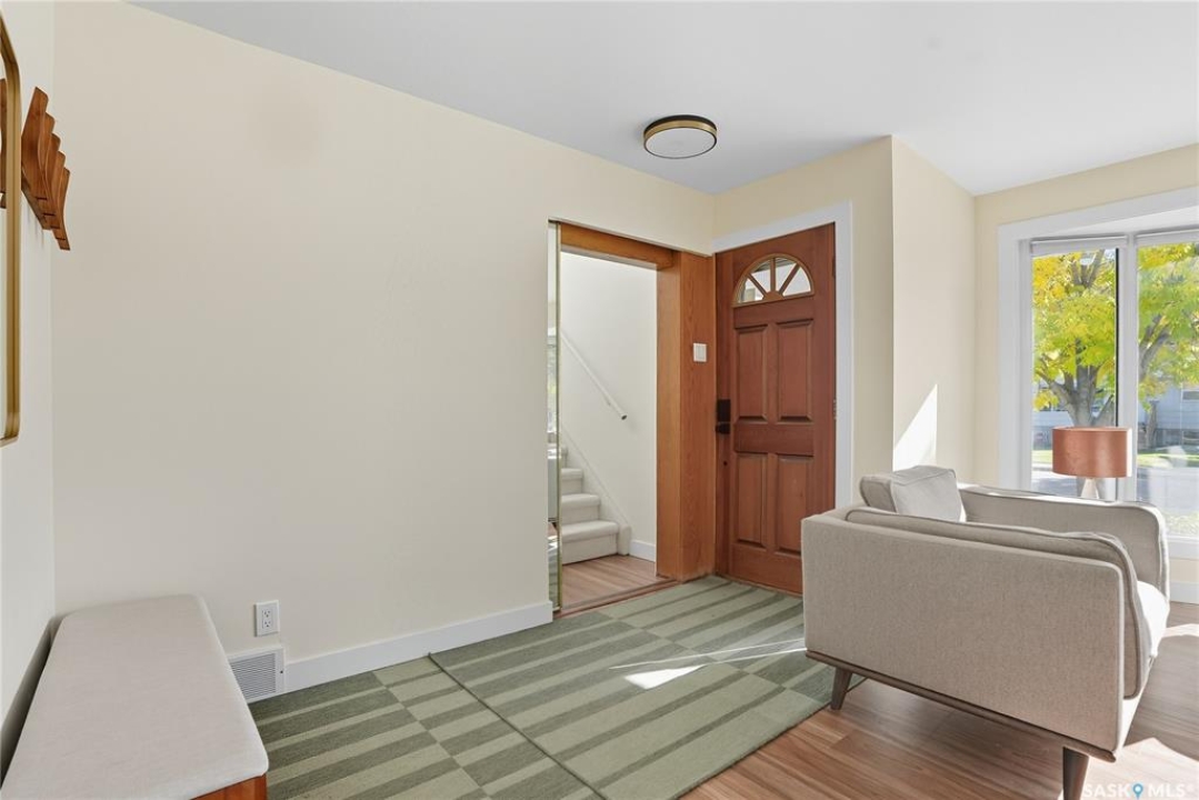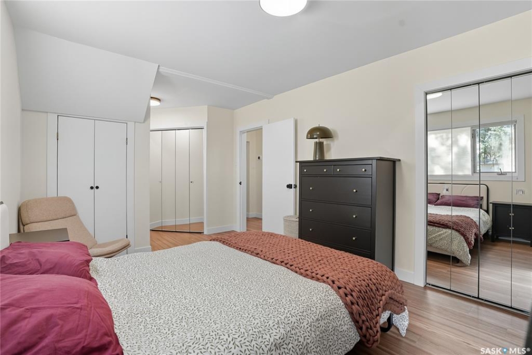 Welcome to 433 Elm Street, a 1,772 sq ft two storey home in the heart of Queen Elizabeth. Built in 1955 and thoughtfully updated, this 4 bedroom, 2 bathroom property combines classic charm with modern comfort. The main floor features bright vinyl plank flooring across the living room, dining area, and kitchen. The kitchen offers generous workspace and storage, and the 5 piece main bath adds a clean, contemporary touch. Two bedrooms on the main level provide flexibility for guests, family, or office use. The upper level is an open living area with incredible natural light and ample space for a studio, home office, or relaxing family room. The full basement includes a large family room, an additional bedroom, a 3 piece bath, a den, and a laundry area. Notable upgrades include new eaves on the house and garage, new basement windows, an upgraded electrical panel and service entry, new washer, dryer, furnace, and water heater in 2024, as well as new shingles on the lower portion of the home in 2025. Additional highlights include two gas fireplaces, central air conditioning, underground sprinklers, and a private fenced yard with mature trees. The triple detached garage features one partitioned stall that is partially heated and insulated, along with a single front drive and total parking for four vehicles. Set on a 55 by 110 foot lot, this property offers a perfect mix of space, updates, and location within one of Saskatoon's most established neighbourhoods.