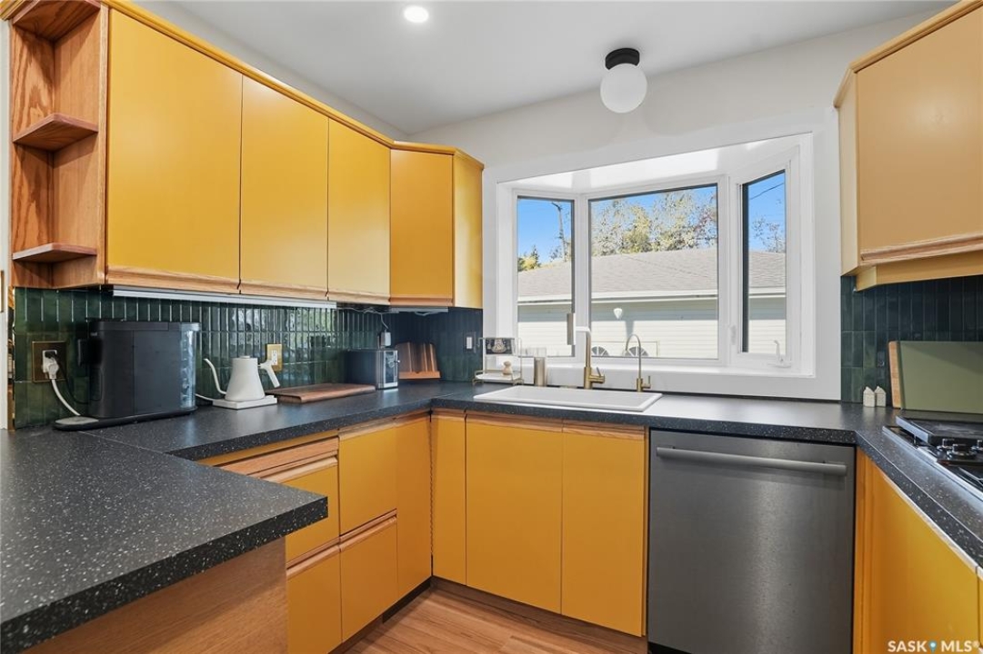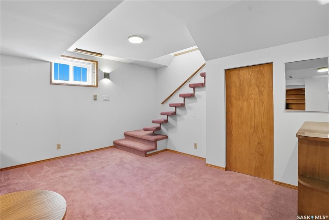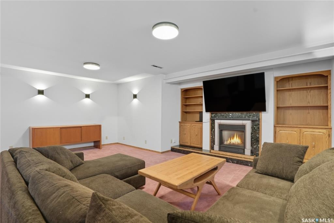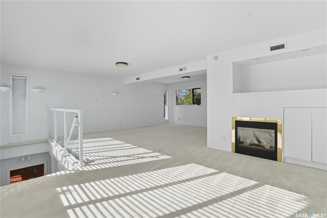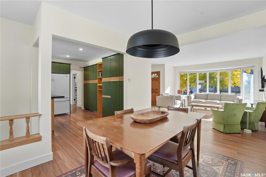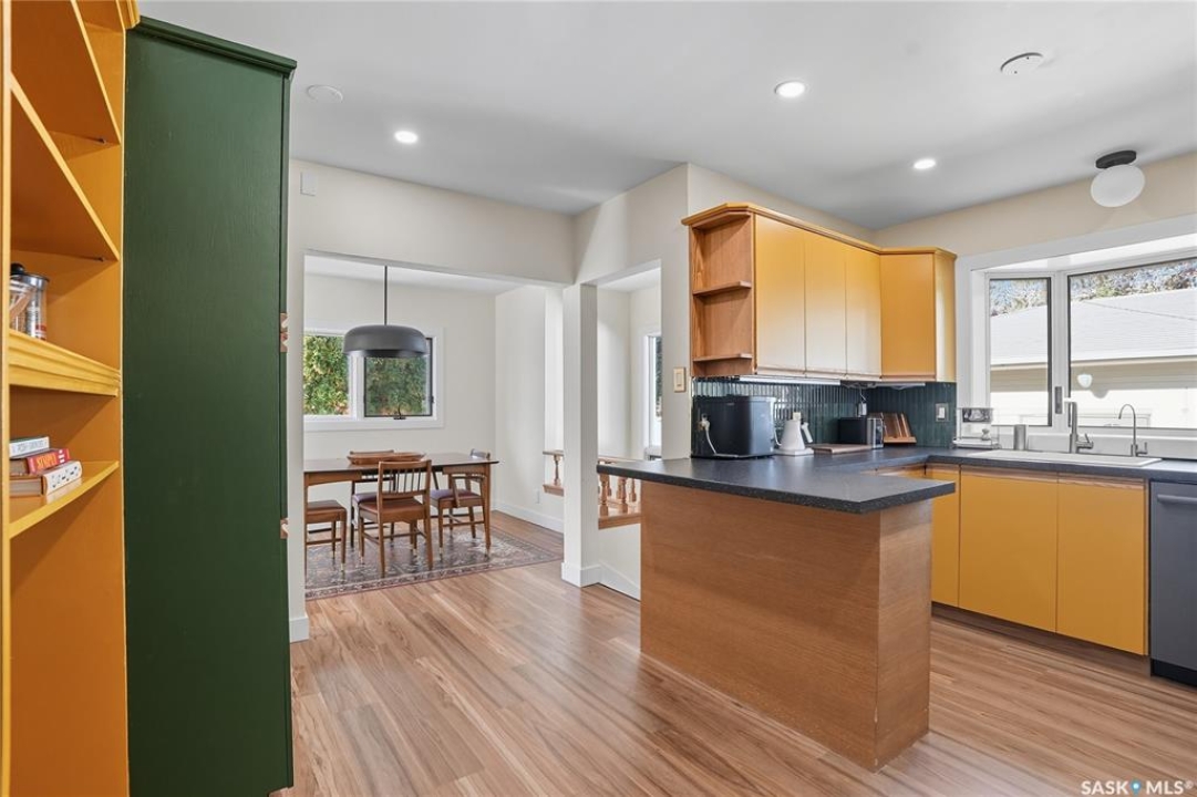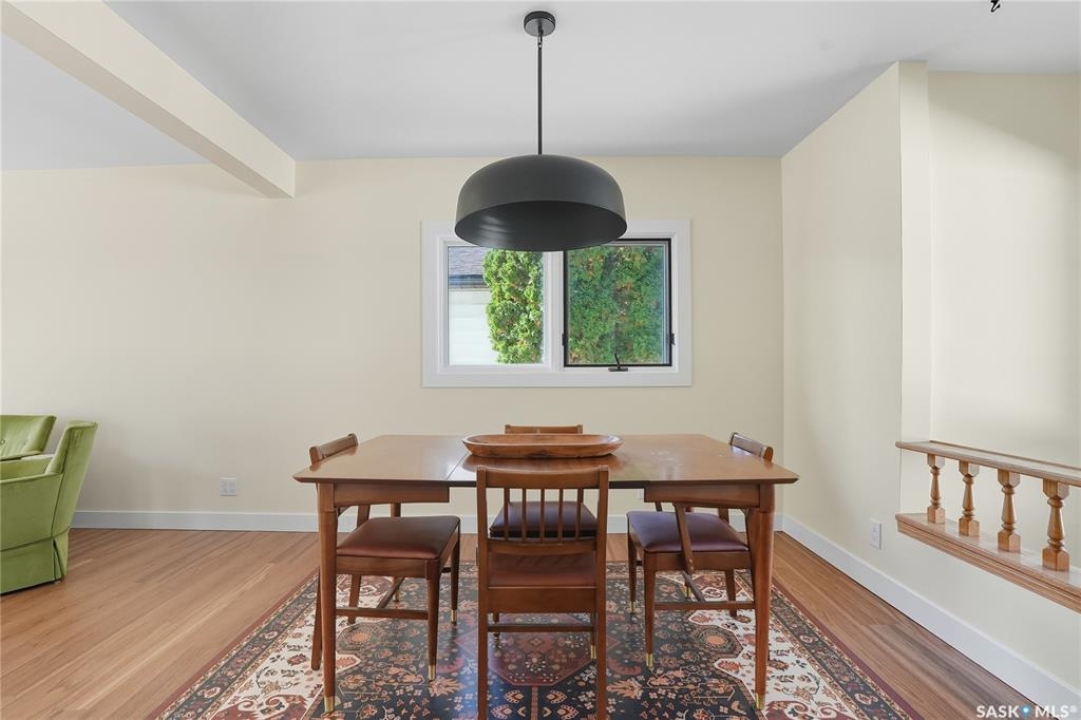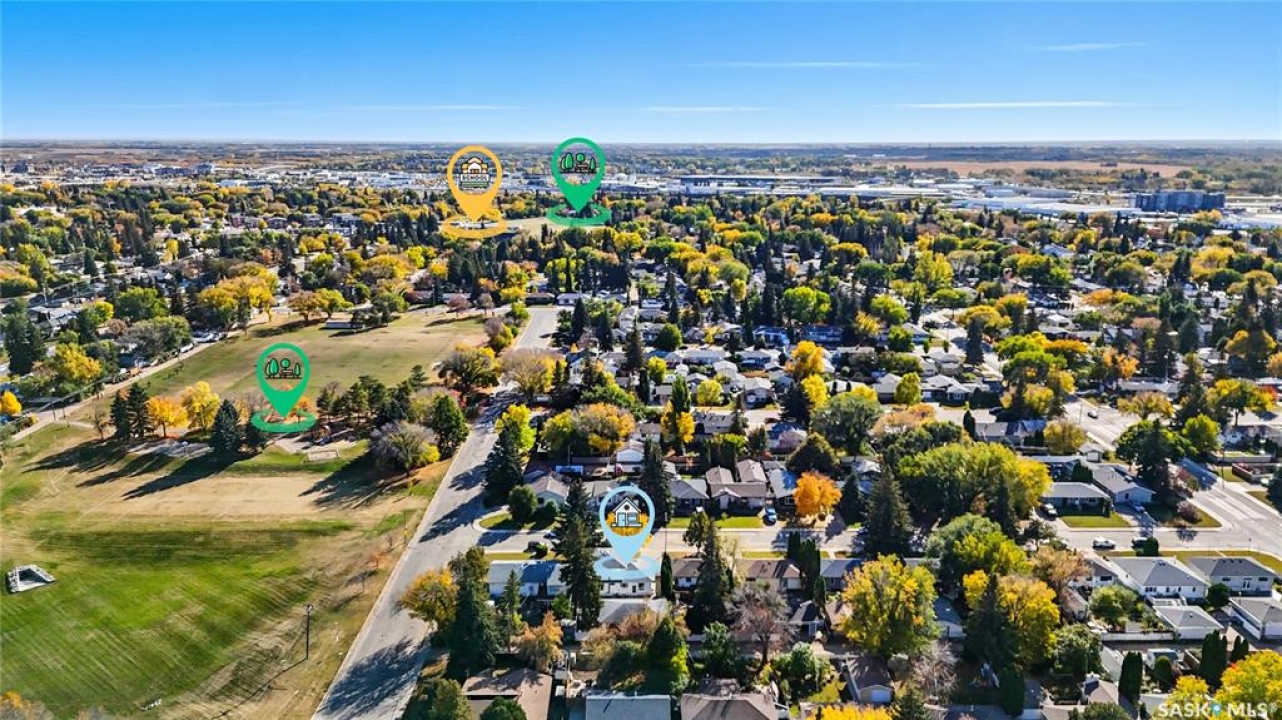 Welcome to 433 Elm Street, a 1,772 sq ft two storey home in the heart of Queen Elizabeth. Built in 1955 and thoughtfully updated, this 4 bedroom, 2 bathroom property combines classic charm with modern comfort. The main floor features bright vinyl plank flooring across the living room, dining area, and kitchen. The kitchen offers generous workspace and storage, and the 5 piece main bath adds a clean, contemporary touch. Two bedrooms on the main level provide flexibility for guests, family, or office use. The upper level is an open living area with incredible natural light and ample space for a studio, home office, or relaxing family room. The full basement includes a large family room, an additional bedroom, a 3 piece bath, a den, and a laundry area. Notable upgrades include new eaves on the house and garage, new basement windows, an upgraded electrical panel and service entry, new washer, dryer, furnace, and water heater in 2024, as well as new shingles on the lower portion of the home in 2025. Additional highlights include two gas fireplaces, central air conditioning, underground sprinklers, and a private fenced yard with mature trees. The triple detached garage features one partitioned stall that is partially heated and insulated, along with a single front drive and total parking for four vehicles. Set on a 55 by 110 foot lot, this property offers a perfect mix of space, updates, and location within one of Saskatoon's most established neighbourhoods.