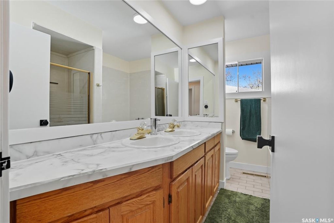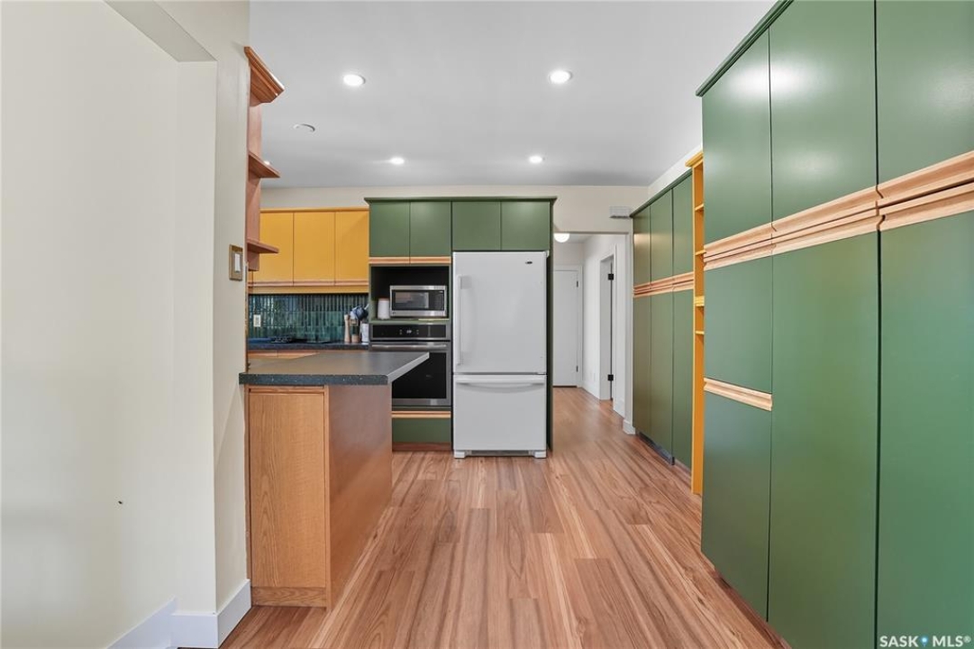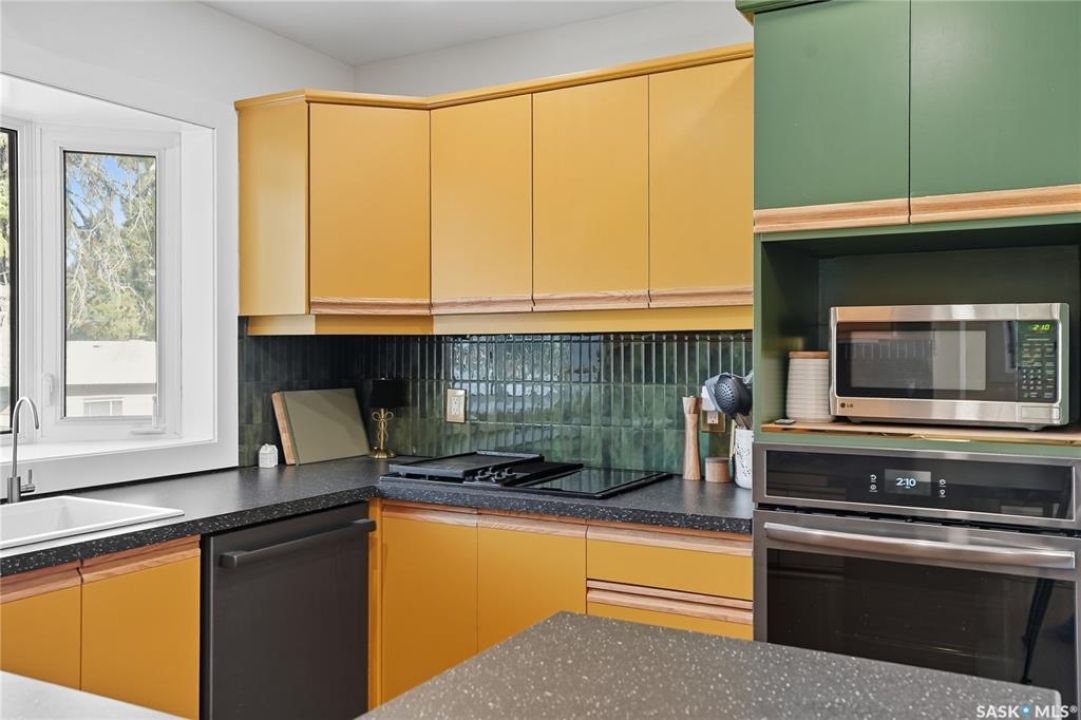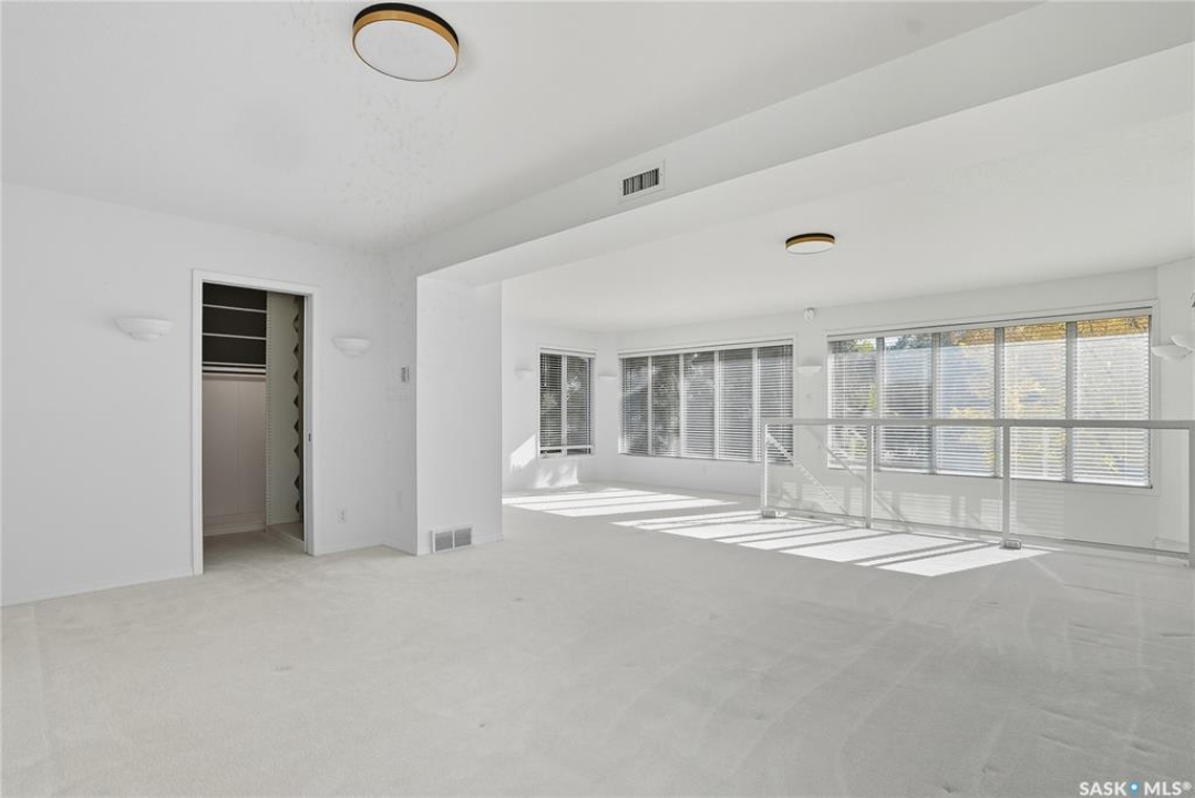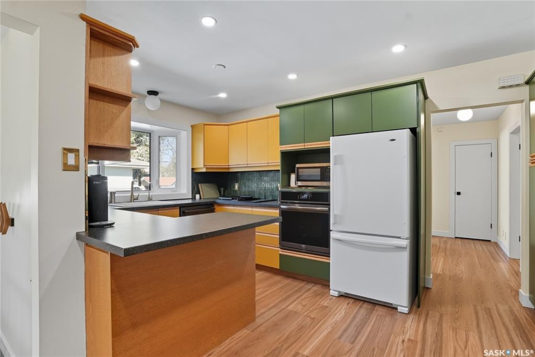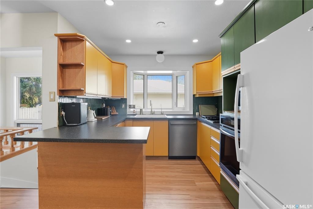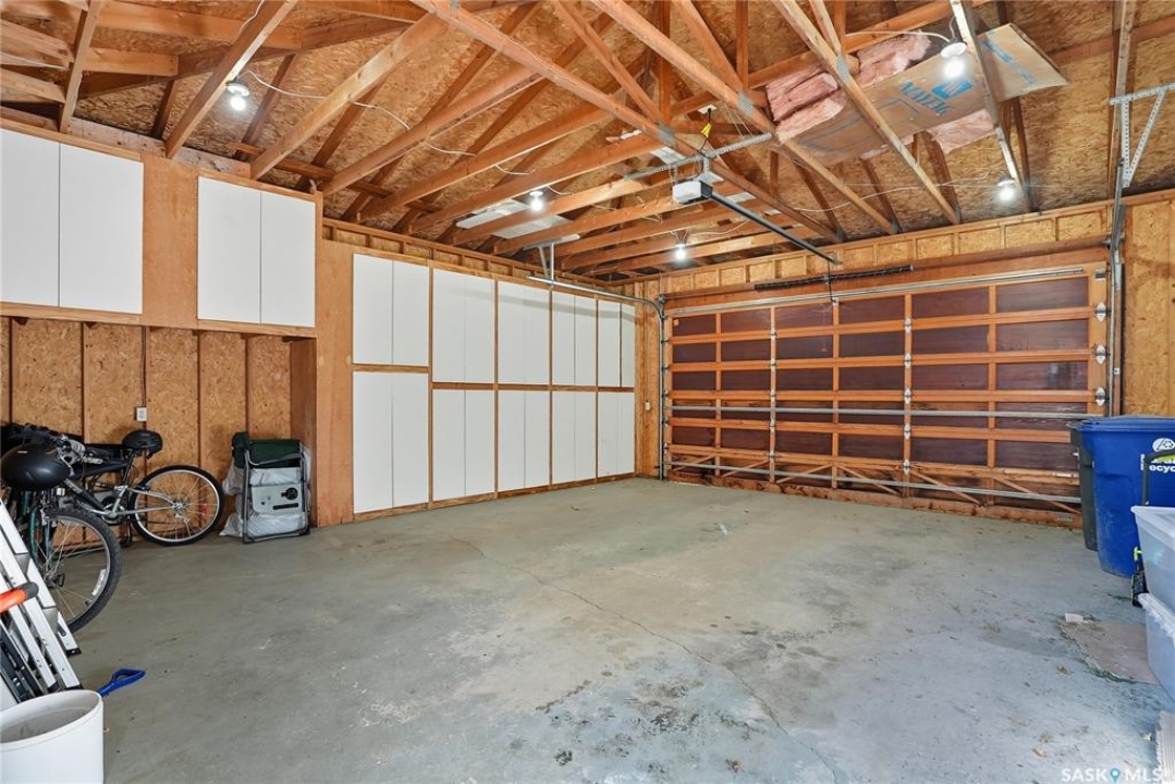Welcome to 433 Elm Street, a 1,772 sq ft two storey home in the heart of Queen Elizabeth. Built in 1955 and thoughtfully updated, this 4 bedroom, 2 bathroom property combines classic charm with modern comfort. The main floor features bright vinyl plank flooring across the living room, dining area, and kitchen. The kitchen offers generous workspace and storage, and the 5 piece main bath adds a clean, contemporary touch. Two bedrooms on the main level provide flexibility for guests, family, or office use. The upper level is an open living area with incredible natural light and ample space for a studio, home office, or relaxing family room. The full basement includes a large family room, an additional bedroom, a 3 piece bath, a den, and a laundry area. Notable upgrades include new eaves on the house and garage, new basement windows, an upgraded electrical panel and service entry, new washer, dryer, furnace, and water heater in 2024, as well as new shingles on the lower portion of the home in 2025. Additional highlights include two gas fireplaces, central air conditioning, underground sprinklers, and a private fenced yard with mature trees. The triple detached garage features one partitioned stall that is partially heated and insulated, along with a single front drive and total parking for four vehicles. Set on a 55 by 110 foot lot, this property offers a perfect mix of space, updates, and location within one of Saskatoon's most established neighbourhoods.