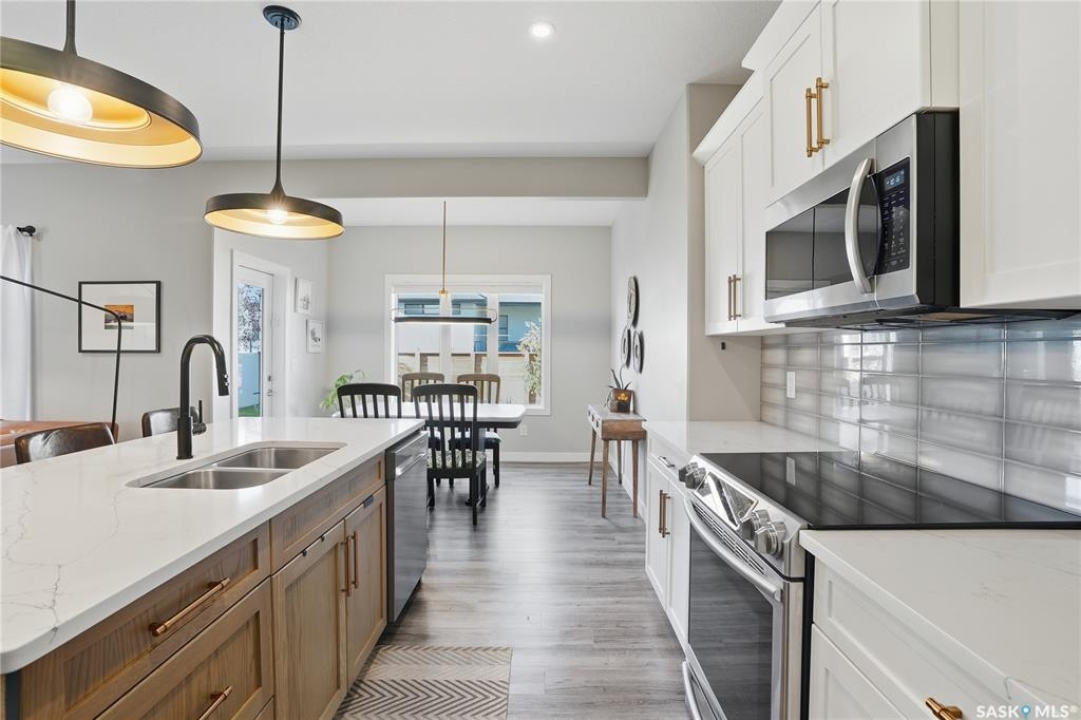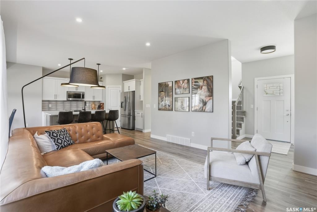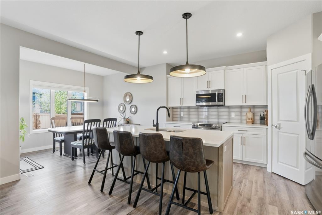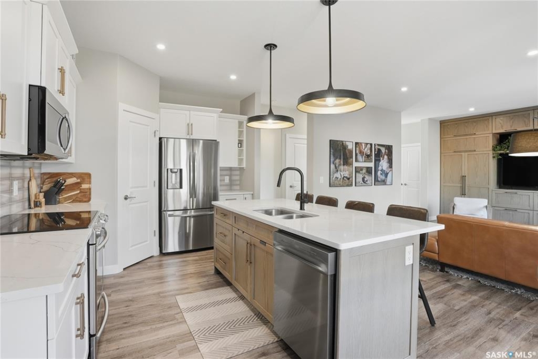 Welcome to 438 Flynn Lane in sought-after Rosewood — a beautifully finished home that perfectly blends comfort, style, and functionality. From its inviting street presence to its warm and modern interior, every detail has been thoughtfully designed for family living. The open-concept main floor is bright and spacious, featuring a stylish kitchen with quality appliances, ample cabinetry, and seamless flow into the dining and living areas — ideal for everyday life and entertaining alike. Large windows bring in natural light while offering views of the established, fully landscaped yard. Upstairs, a generous primary suite provides a relaxing retreat with a well-appointed ensuite and walk-in closet. The additional bedrooms are roomy and versatile, complemented by an oversized laundry room — a true everyday luxury. The fully developed basement extends your living space with a comfortable family room, two additional bedrooms, and full bath. Outside, enjoy a private yard with mature trees, a great deck for summer evenings, and the convenience of underground sprinklers. A heated attached garage with extra storage and a three-car driveway add both practicality and curb appeal. Located steps from the local school, parks, and Rosewood's walking paths, this home delivers the complete package — move-in ready, modern, and ideally situated for family life.