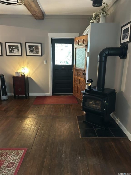 Step into timeless charm with this 1.5-story T. Eaton house, built in 1926 home blends historic character with modern upgrades, fully renovated 10 years ago. The main floor boasts 9' ceilings and original fir flooring, creating a warm, inviting ambiance. The living and dining room feature a cozy gas fireplace. Updated kitchen with S/S appliances, butcher block countertops, a country-style sink, and an Italian imported gas stove, a pantry with open S/S storage. The bath showcases an antique clawfoot tub, a 5' tiled walk-in shower, antique cabinetry accents. Main floor laundry, Upstairs, the primary bedroom offers original fir flooring, two dormer windows, and custom cabinetry crafted from repurposed barn wood lined with beech. The downstairs bedroom features open pine-clad beams, a copper-and-pine ladder to aloft. The unfinished basement provides ample storage, with a 230' deep well, 1400-gallon septic tank, and a 40-gallon electric hot water heater. The gas fireplace heats most of the home, with an electric recessed wall heater in the bathroom. The roof was completely re-shingled 2 years ago. The 20'x20' cedar deck with space for patio seating, lounging, and barbecuing, adjacent to a 4'x8' raised garden for fresh herbs or flowers. The expansive backyard, treed on all sides for privacy, is half-landscaped with rock gardens and a cozy firepit area, ideal for gatherings. A 20'x24' shed with a mezzanine, wired for 220v, is perfect for hobbies or a workshop. The front yard features rock gardens and a pond, driveway accommodates four vehicles, boats, or a visiting RV. Just 90 steps from lake access with a boat launch and room for your dock, world-class fishing for walleye and jack. The community offers a concession stand, a pickleball court, baseball diamond, beach volleyball court, kids' playground, mini-golf, and a band shell with a beer garden for summer events. A local farmers' market adds charm, while paved roads lead right to your door.