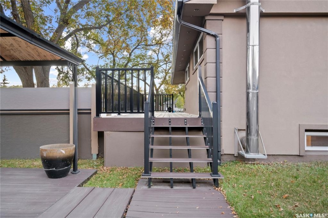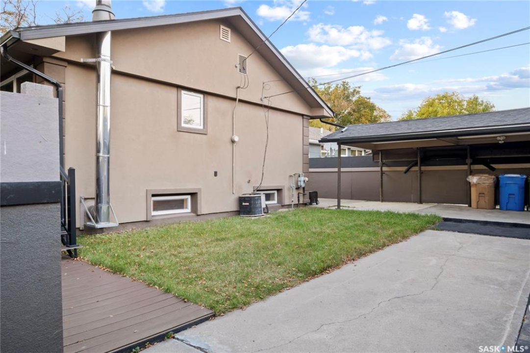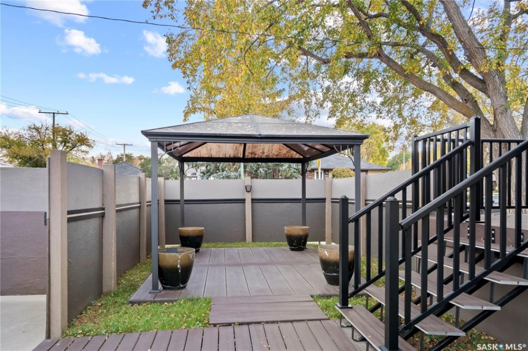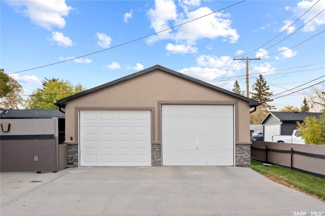 Welcome to 2673 Park Street, a beautifully upgraded and exceptionally maintained home that offers the perfect blend of comfort, energy efficiency, and style. Situated on a desirable corner lot with RV parking, the exterior features durable acrylic stucco with foam board insulation, 2017 shingles, and extensive energy-saving upgrades including spray foam insulation, an insulated basement floor, and 15–16” of blown-in cellulose in the attic. Enjoy outdoor living with a spacious Trex deck, gazebo base, and coated lumber walkway, all within a private fenced yard. Inside, the home boasts a stunning kitchen with commercial-grade flooring, quartz countertops, a large island, and black granite wall accents from India. The main floor features original hardwood, three bedrooms, and a beautifully updated bathroom with Iceberg and Cattera marble, vinyl tile flooring, and a relaxing jetted tub. Cozy up by the wood-burning fireplace upstairs or the wood stove in the fully developed basement, which includes a large rec room, an extra bedroom, and a second full bath. Additional highlights include an oversized insulated double garage perfect for a workshop, a storage shed, a high-efficiency furnace, HRV system, water softener, and a fully replaced plumbing stack to the city connection. Located just minutes from Wascana Park and Douglas Park, you'll enjoy easy access to scenic walking and biking trails, playgrounds, picnic areas, athletic fields, tennis courts, and the Wascana Pool making this home not only move-in ready, but a gateway to an active, nature-filled lifestyle in the heart of Regina.