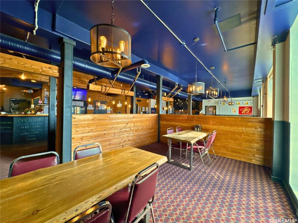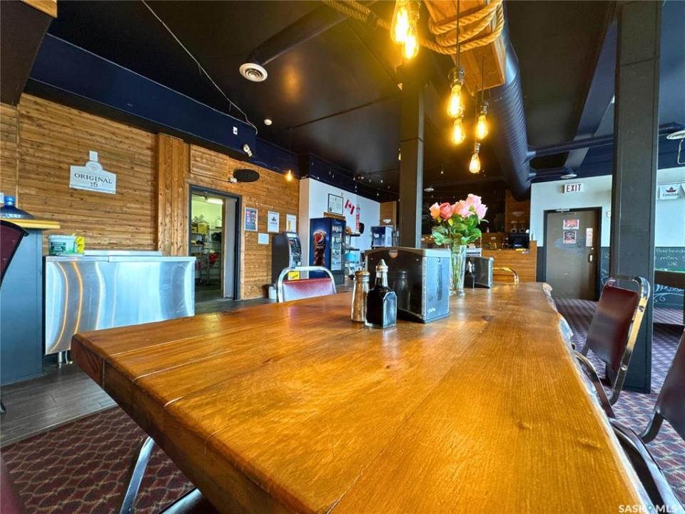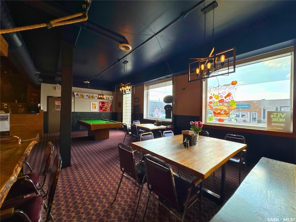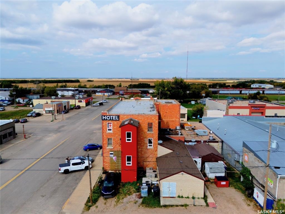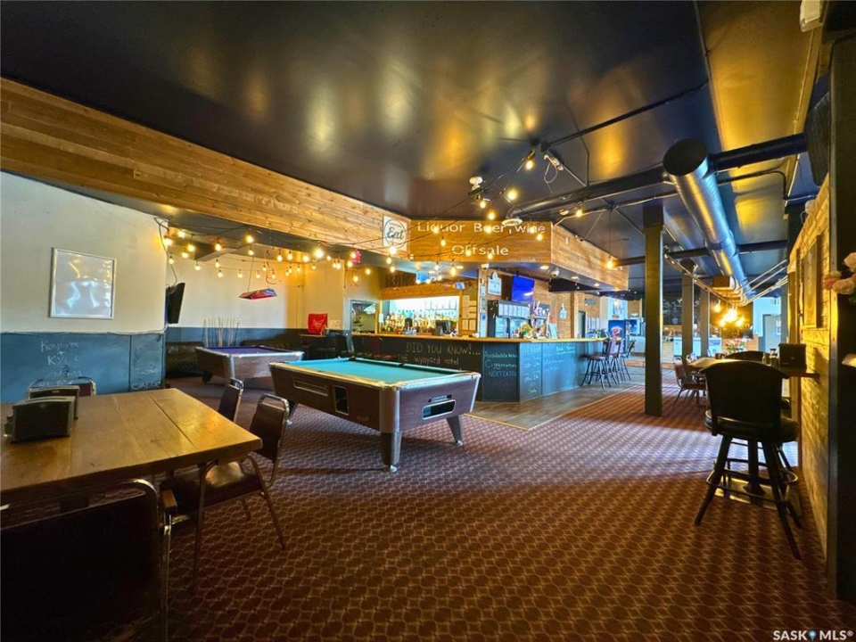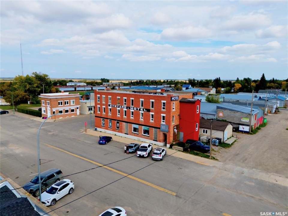 Excellent opportunity to own a landmark business and building in the thriving community of Wynyard, Saskatchewan - a full-service town with a high school, regional college, golf course, rink, hospital, banks, and automotive services. The property offers 11,252 sq.ft. of space on a concrete foundation with a durable brick exterior. The main floor features a fully licensed restaurant and bar, an ice cream/slush area (not in full operation, providing great potential for an additional revenue stream), 10 VLTs offering steady, low-maintenance income, ATM, and permits for restaurant liquor and tobacco sales. A smart home system controls security, lighting, heating, and cooling. The second floor includes a long-term tenant in a 2-bedroom suite with kitchen and 4-piece bath, while the remaining area could be developed into up to 12 guest rooms, 4 bathrooms, and 1 laundry room. The third floor offers an owner's suite with living, kitchen, dining, one bedroom, and 4-piece bath, plus a move-in-ready manager's bachelor suite with kitchen and 3-piece bath; seven additional rooms provide renovation potential. The main floor is heated with a floor unit and A/C, and the upper floors with hot-water heating. Upgrades completed around 2016 include washroom and kitchen renovations, walk-in cooler, reverse osmosis system, modern lighting, décor updates, and fresh finishes throughout. A rare chance to own a versatile, income-producing property with room to grow in the heart of Wynyard.