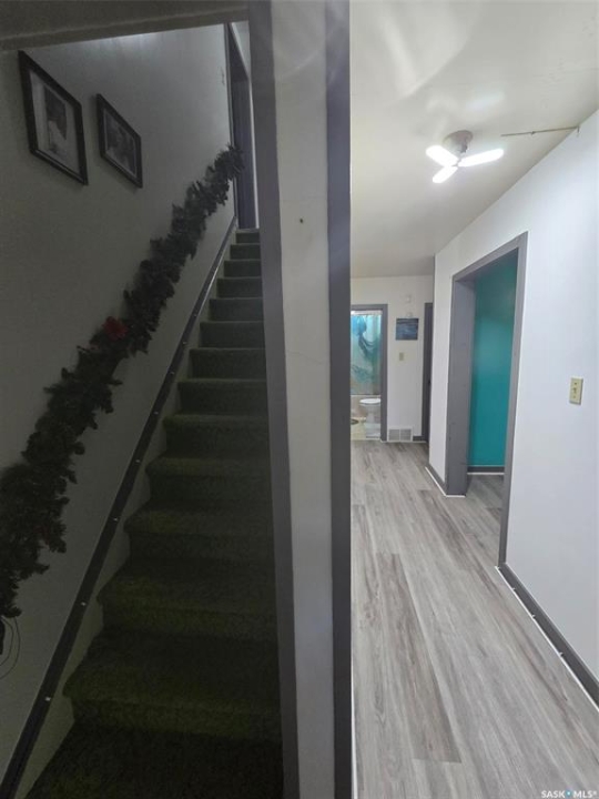 4 bedroom + 1 bath home situated in a great community of Grenfell, full of life just and off the Highway #1 , an hour from Regina and Yorkton. This 1945 home is located on a large corner lot (75'x 135') with a single detached garage (12' x 24' with remote door) Settle into this affordable home that is vacant and ready for a new family. Could it be yours? 1224 sq ft with a half storey that will provide 2 bedrooms on this level and a nook area for extra storage. Main floor has 2 bedrooms , a full bath (Bath fitters tub surround), living room , kitchen/ dining, a back porch. Some updates to include: Hot water heater 2024, vinyl flooring, interior paint, vinyl siding with extra insulation, triple pane windows, HE furnace (2009) with central air, exterior sump pump, and some pex plumbing. The basement hosts the washer and dryer and is good for storage. Make this property on your list to check out, great potential for a starter home with good space for your family.