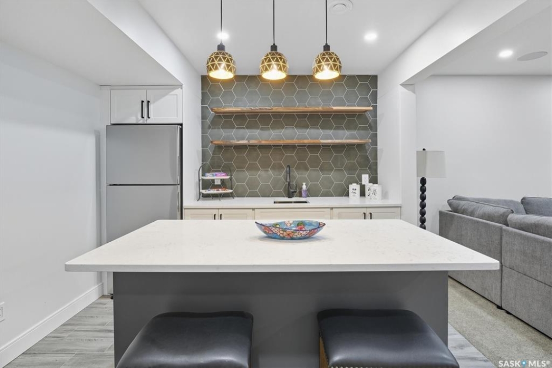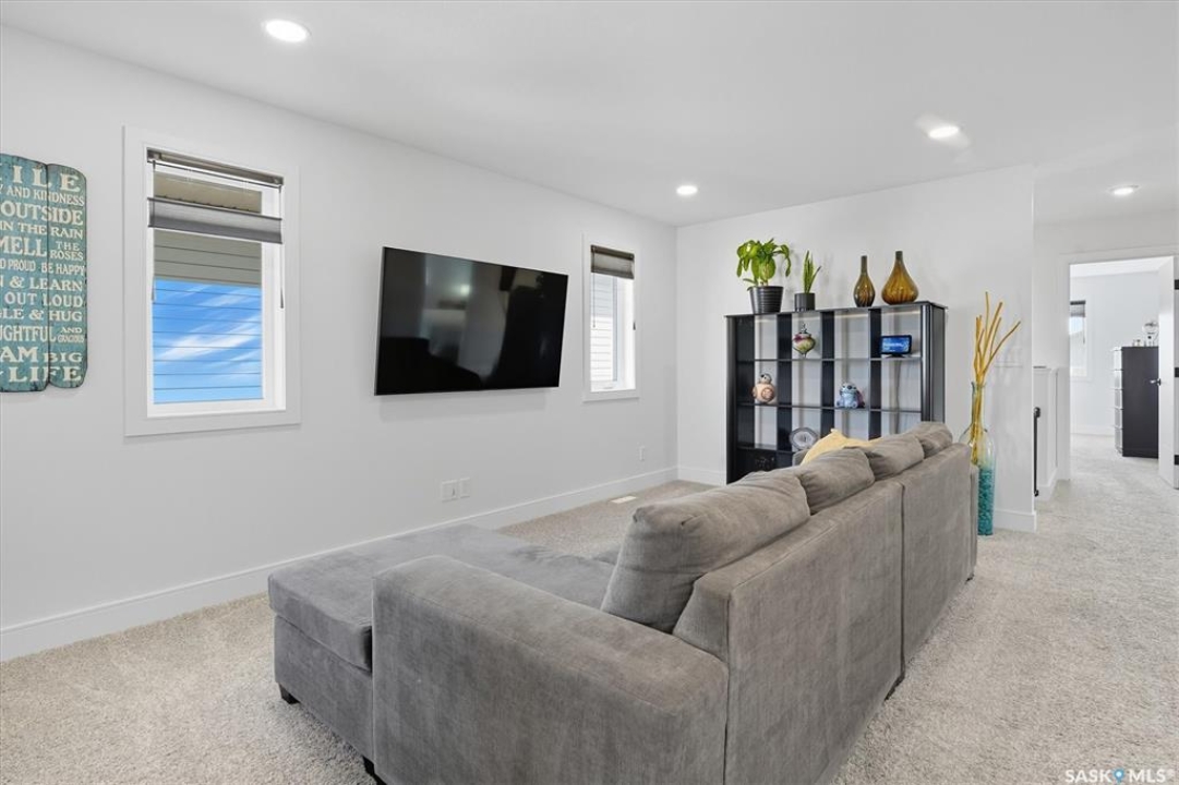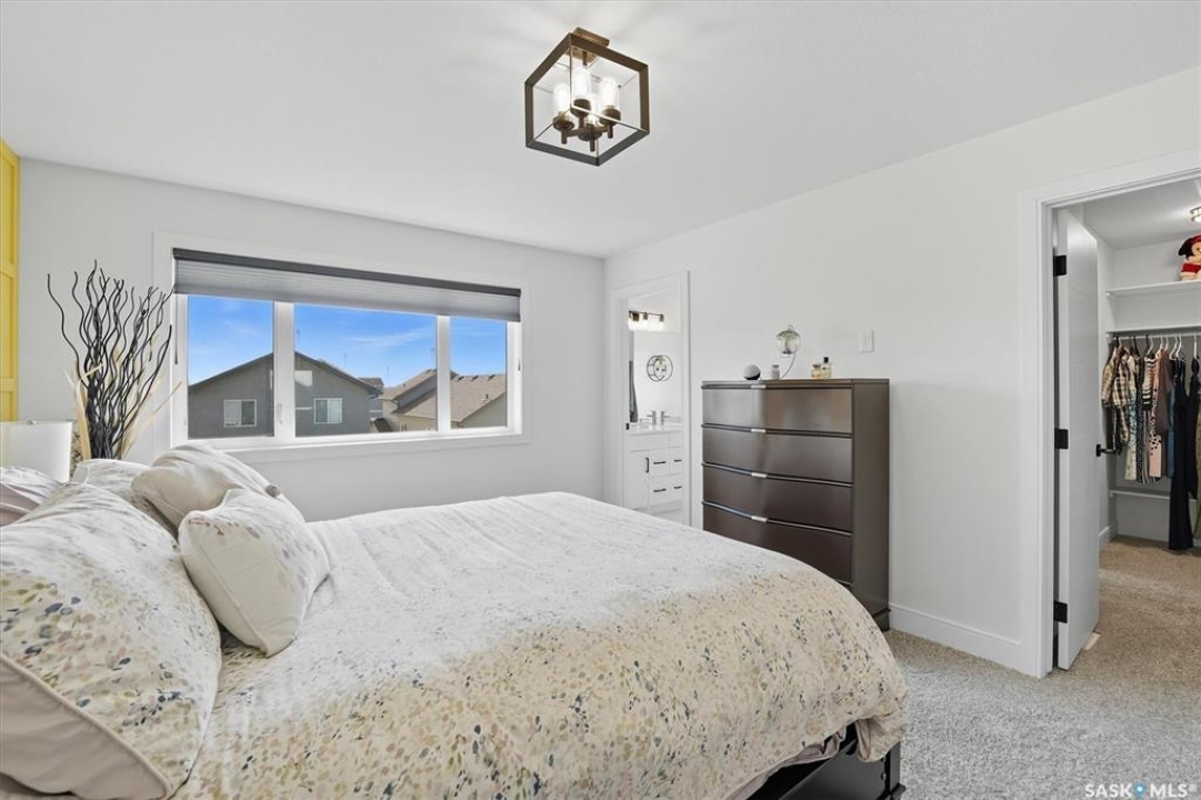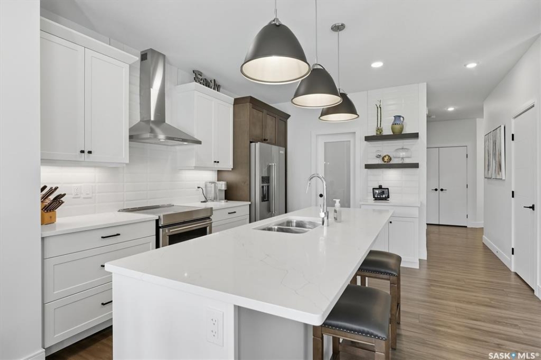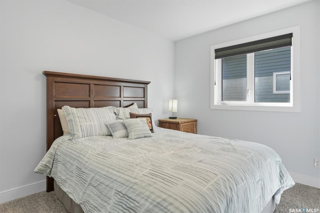 Welcome to this stunning home in the heart of Brighton, offering style, comfort, and thoughtful details throughout. Step inside to a spacious front entry with a large front closet, a handy two-piece bath, and direct access to the heated garage. From the entryway, you'll find a sliding door to the walk-through pantry with tons of storage and counterspace, leading to a beautiful yet highly functional kitchen with quartz countertops, shaker-style cabinetry with modern black hardware, stainless steel appliances including a convection oven with induction cooktop, and a large island with double undermount sink, seating and statement pendant lighting. The kitchen opens to a bright, cozy living room with a fireplace and mantle, and a spacious dining area with a stunning feature wall, large windows and direct access to the deck for easy outdoor entertaining. There is an office/flex space down the hall. Upstairs, you'll find 4 bedrooms, a large bonus room, a laundry room with extra storage, and a shared 4pc bath. The primary suite features a gorgeous feature wall, large windows, an impressive ensuite with dual sinks, corner tub, glass-door shower, toilet closet, and a generous walk-in closet. A second upstairs bedroom also includes a walk-in closet as well. The basement is made for entertaining with a striking wet bar featuring quartz counters, two-tone cabinetry, live-edge floating shelves with custom lighting, a hidden pull-out wine rack, and secret storage behind a bookcase. Enjoy movie nights in the family room with in-ceiling surround sound and a cozy fireplace. There is a 5th bedroom and another full bath down the hall. Outside, the yard is fully landscaped with fruit trees and shrubs, a patio with pergola, sandbox area, underground sprinklers with drip irrigation, and a custom pathway around the home. This home truly blends beauty, function, and location—walking distance to Brighton's many amenities and easy commutes in and out of the area.