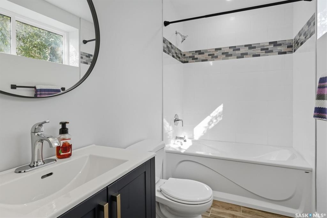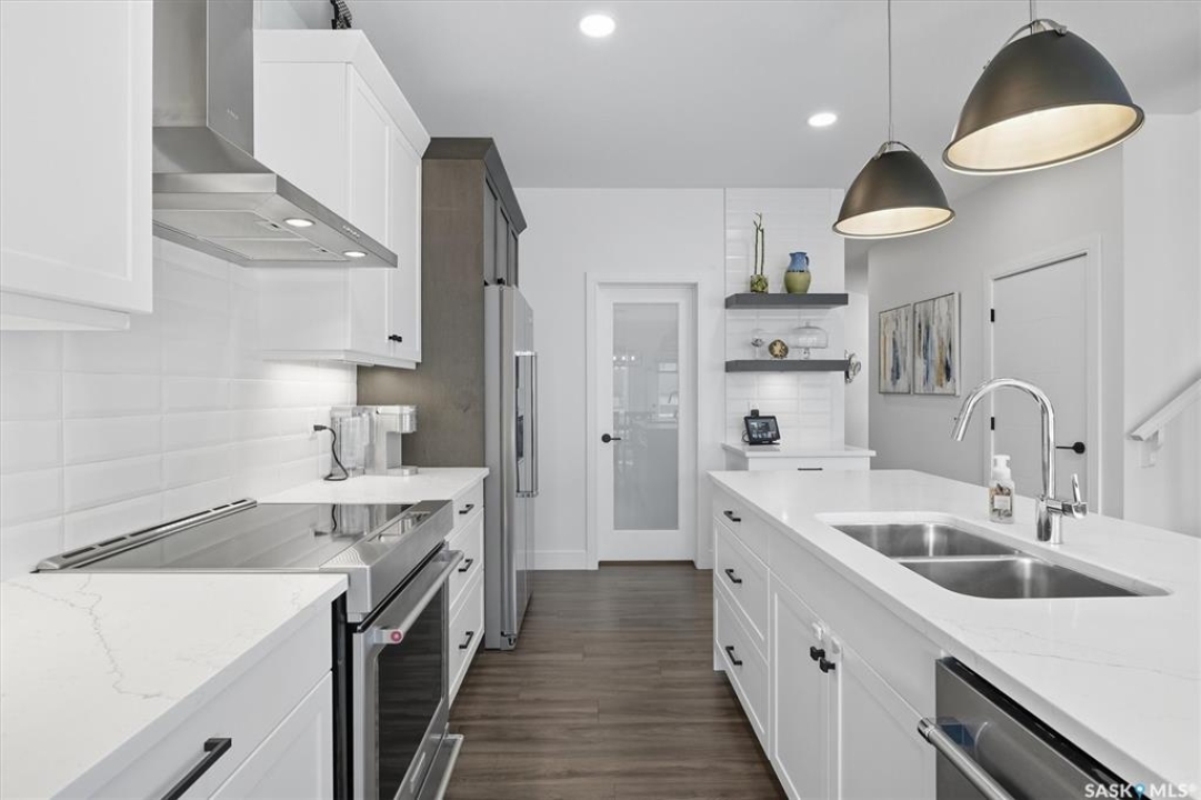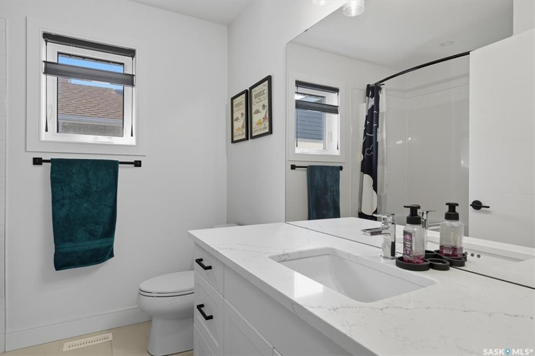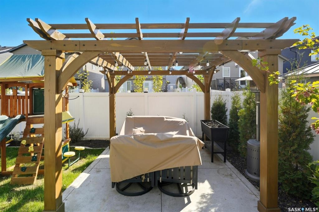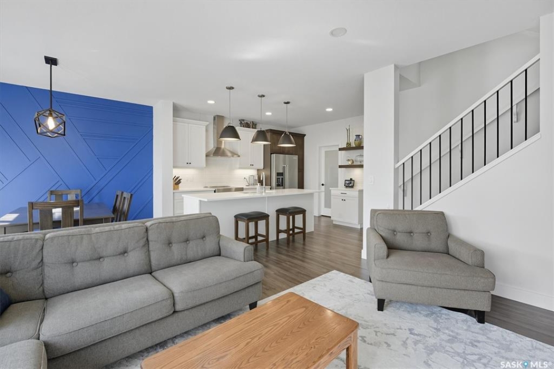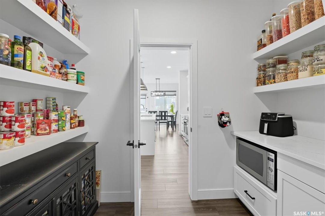 Welcome to this stunning home in the heart of Brighton, offering style, comfort, and thoughtful details throughout. Step inside to a spacious front entry with a large front closet, a handy two-piece bath, and direct access to the heated garage. From the entryway, you'll find a sliding door to the walk-through pantry with tons of storage and counterspace, leading to a beautiful yet highly functional kitchen with quartz countertops, shaker-style cabinetry with modern black hardware, stainless steel appliances including a convection oven with induction cooktop, and a large island with double undermount sink, seating and statement pendant lighting. The kitchen opens to a bright, cozy living room with a fireplace and mantle, and a spacious dining area with a stunning feature wall, large windows and direct access to the deck for easy outdoor entertaining. There is an office/flex space down the hall. Upstairs, you'll find 4 bedrooms, a large bonus room, a laundry room with extra storage, and a shared 4pc bath. The primary suite features a gorgeous feature wall, large windows, an impressive ensuite with dual sinks, corner tub, glass-door shower, toilet closet, and a generous walk-in closet. A second upstairs bedroom also includes a walk-in closet as well. The basement is made for entertaining with a striking wet bar featuring quartz counters, two-tone cabinetry, live-edge floating shelves with custom lighting, a hidden pull-out wine rack, and secret storage behind a bookcase. Enjoy movie nights in the family room with in-ceiling surround sound and a cozy fireplace. There is a 5th bedroom and another full bath down the hall. Outside, the yard is fully landscaped with fruit trees and shrubs, a patio with pergola, sandbox area, underground sprinklers with drip irrigation, and a custom pathway around the home. This home truly blends beauty, function, and location—walking distance to Brighton's many amenities and easy commutes in and out of the area.