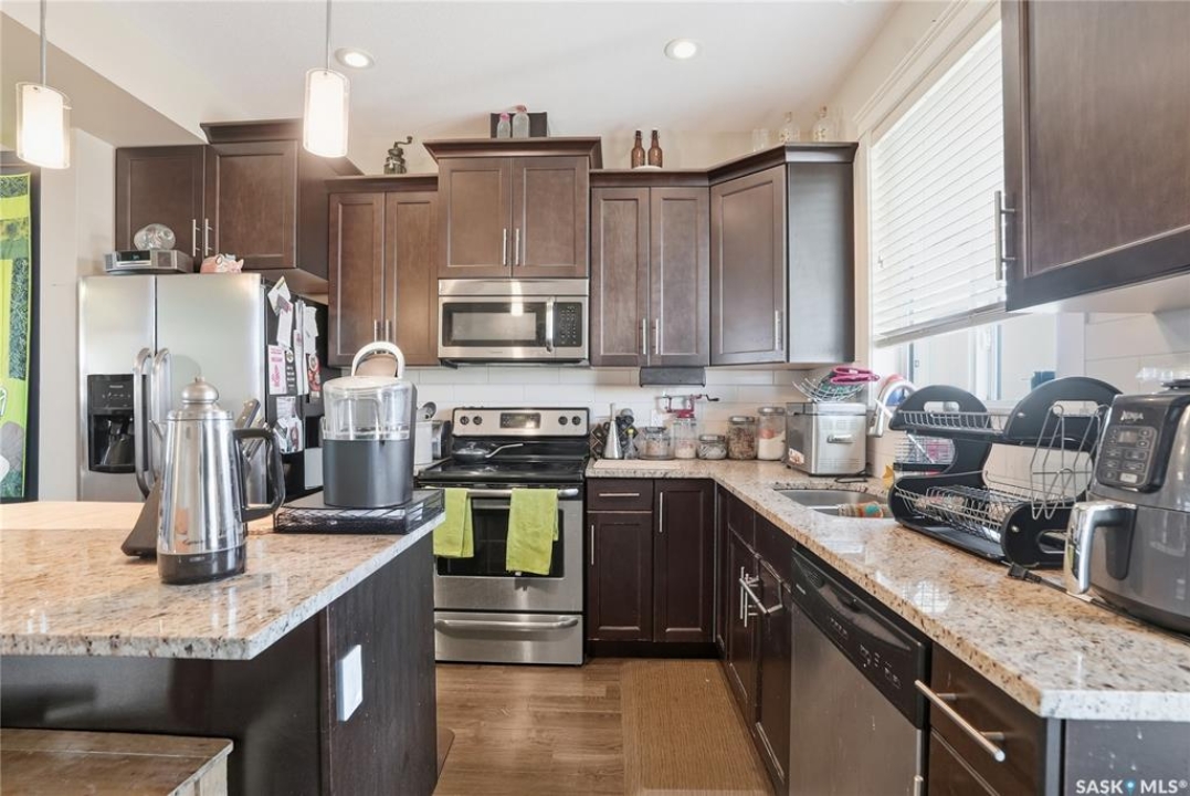Beautiful Corner unit Townhouse in Warman This well-kept end-unit townhome offers 1,665 sq. ft. of living space with 3 bedrooms, 3 bathrooms, a home office, and a heated bonus room. Situated on a quiet street, it's move-in ready and designed for comfort and convenience. Enjoy ample parking with a double front driveway and an insulated double attached garage with direct entry. On the main level, you'll find a heated bonus room off the garage – perfect as a TV room, gym, or hobby space – with rear access to your private patio and fully fenced backyard, complete with landscaping, underground sprinklers, and wiring for a hot tub. The second level welcomes you with a bright, open-concept living room, dining area, and kitchen, plus a spacious home office and 2-pc bathroom. The kitchen features a granite island and countertops, soft-close maple cabinets, stainless steel appliances, a walk-in pantry, and direct access to a covered balcony. The living room offers large windows for natural light and a cozy stone-accented gas fireplace. Upstairs, you'll find two generously sized bedrooms, a 4-pc hallway bathroom, laundry, and the primary suite. The master retreat includes a walk-in closet and a luxurious 4-pc ensuite with dual sinks, a walk-in glass shower with tile surround, newer vinyl flooring, and modern finishes. This home is just minutes from schools, parks, amenities, and The Legends Golf Course. ? Don't miss out on this beautiful townhome – contact your REALTOR � today to book a viewing!