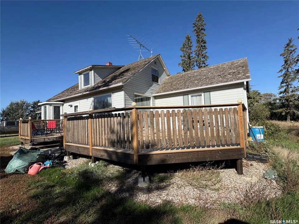 Enjoy peaceful rural living with this 3-bedroom acreage, featuring one bedroom on the main floor and two upstairs. The main level offers an open kitchen, a large mudroom with laundry. Step outside to inviting front decks where you can enjoy peaceful prairie views morning and evening. The property is well set up with a solid barn in great shape for horses, a chicken coop, and a beautiful yard complete with a garden area. A new well has been drilled, providing a reliable water source for your family, animals, and garden. If you've been dreaming of quiet country life with room to grow, this acreage is the perfect opportunity.