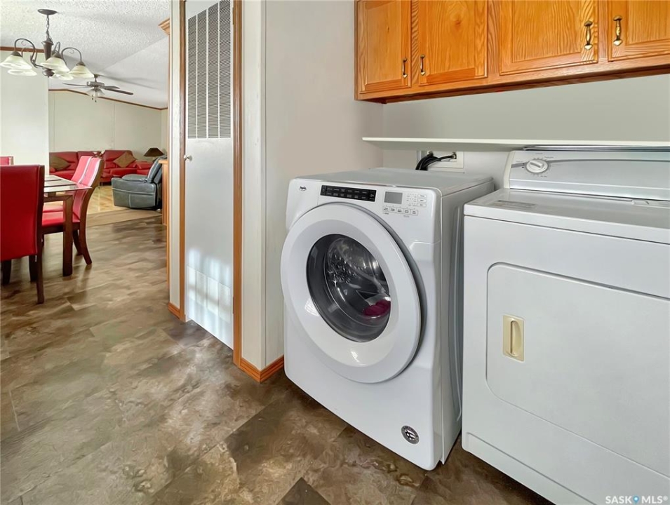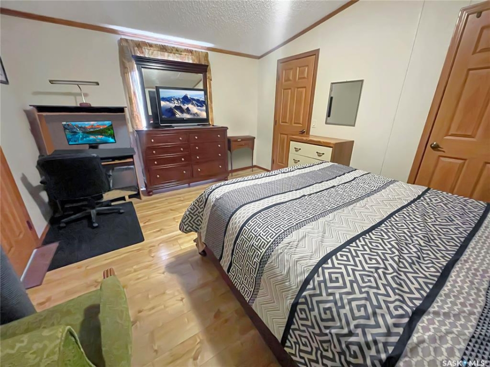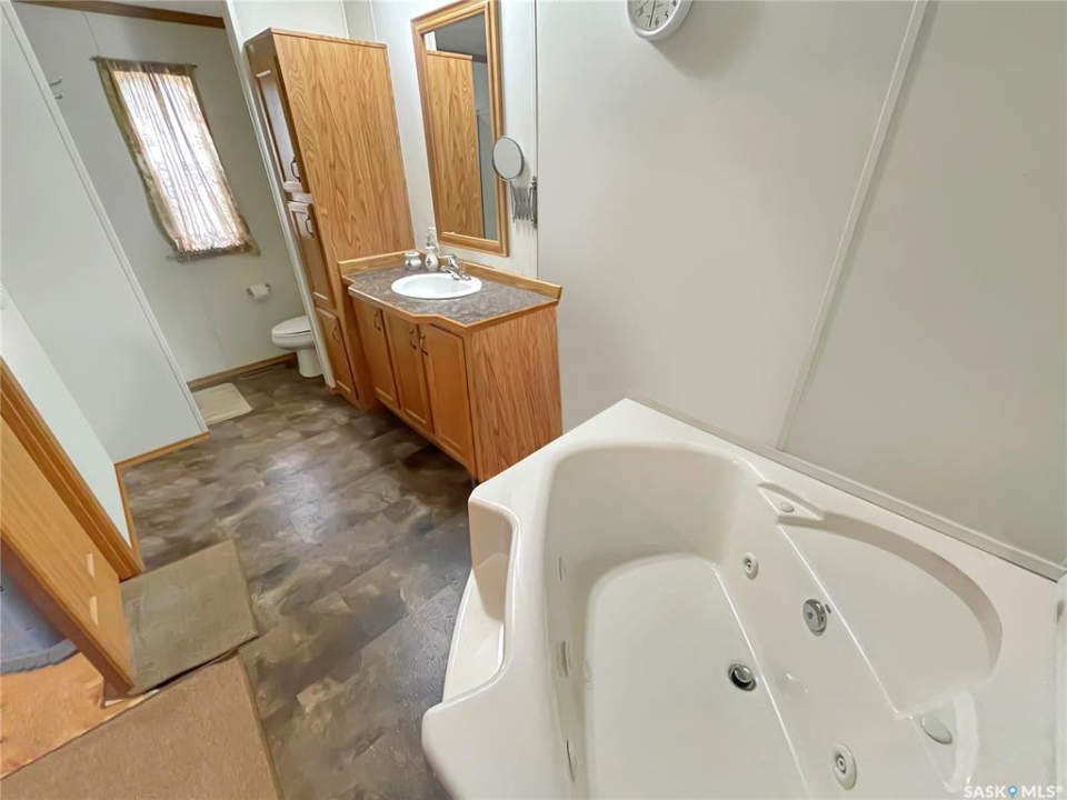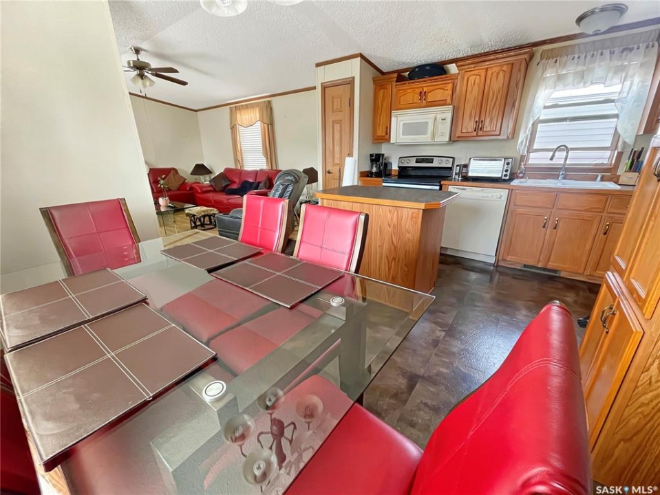 Introducing 128 Prairie Sun Court, a home that offers exceptional value without compromising on updates or quality. Prepare to be impressed by the thoughtful design and modern features of this stunning property. Step inside and be greeted by an open concept floor plan, flooded with natural light from the abundance of windows. The vaulted ceilings create a sense of spaciousness, while the large kitchen is a chef's dream. You'll find plenty of tasteful cabinetry, including a pantry with full outs, double sinks, an island, and a cozy eat-in kitchen space. On one end of the home, you'll discover the oversized master bedroom, complete with a generous 5'2x6'2 walk-in closet. Adjacent to the bedroom is a convenient laundry area and a built-in office space, ensuring functionality and convenience. The master wing is completed by a sizeable ensuite bath, featuring a jacuzzi tub, shower, and ample storage. The other side of the home houses two additional bedrooms and a well-appointed 4-piece guest washroom, providing comfortable living spaces for family and guests. This 1200 square foot home has been tastefully updated with new flooring throughout, adding a touch of modern elegance. The PVC windows not only enhance the aesthetic appeal but also contribute to energy efficiency. Step outside and enjoy the spacious deck, perfect for entertaining or simply relaxing. With no maintenance handrails and a fully fenced yard, you can enjoy outdoor living without the hassle. Additionally, the park fees include water, and the property taxes are incredibly affordable at just $35 per month. Don't miss the opportunity to own a modern home without the modern price. Experience the exceptional value and quality offered at 128 Prairie Sun Court.