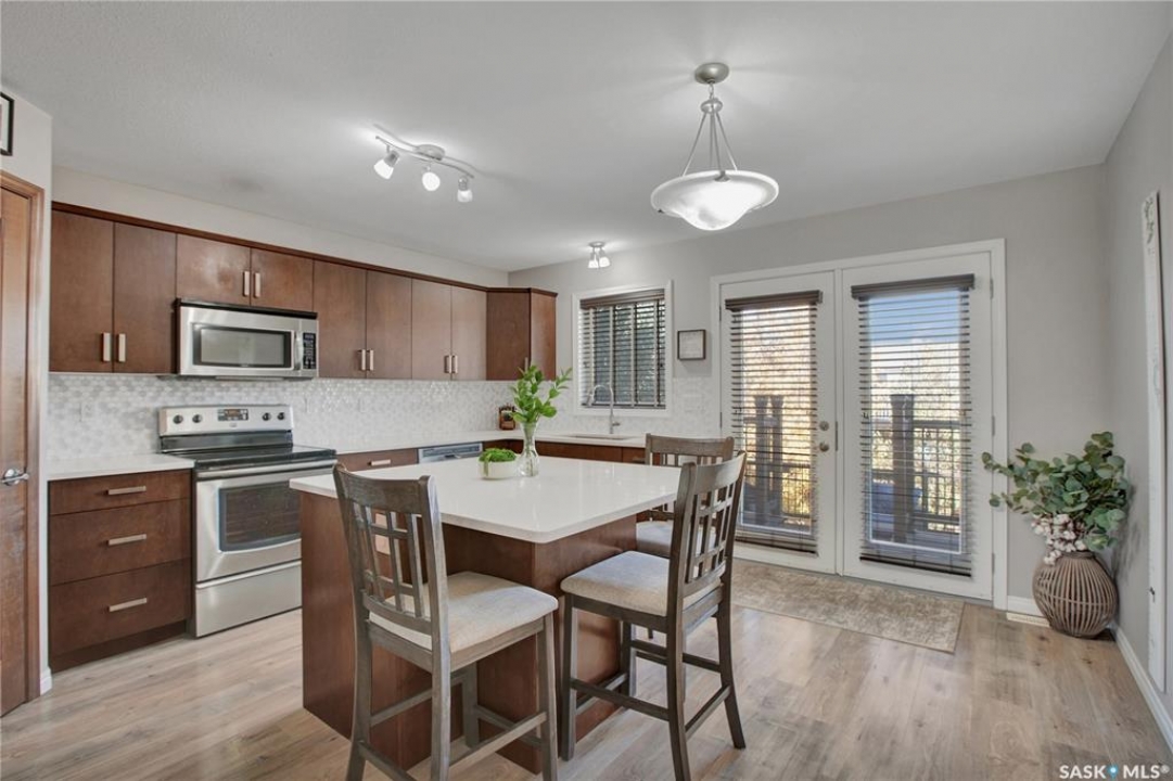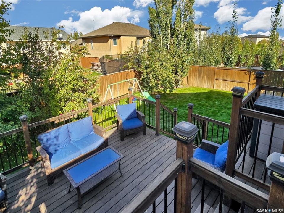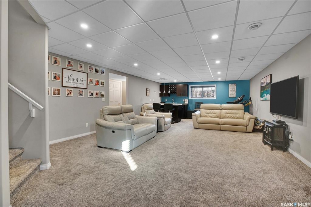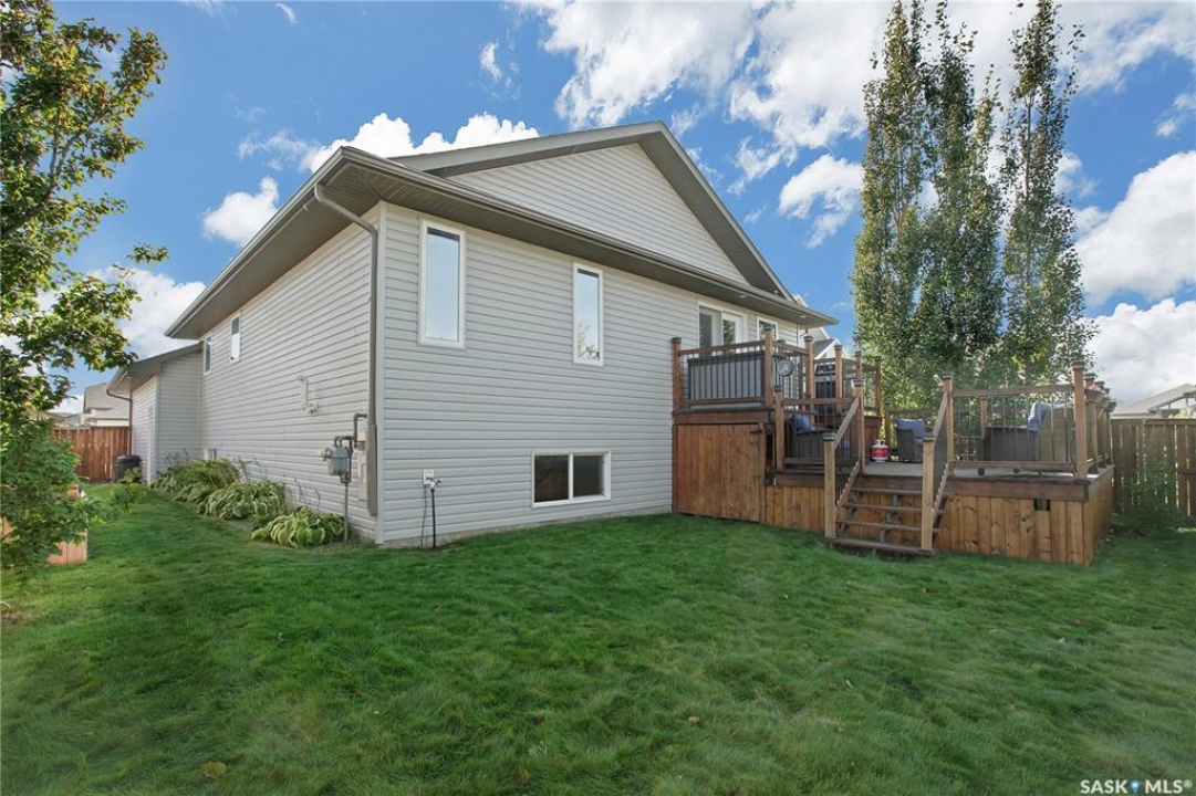 Modern, bright, and beautifully maintained bi level— this four-bedroom, three-bathroom home has space for everyone and style to spare. Step inside to an inviting main floor with large windows that flood the space with natural light. The kitchen features modern finishes, a custom backsplash, and views of your private backyard oasis. The lawn is so lush it's hard to tell where the grass ends and the carpet begins! Enjoy summer evenings on the two-tier deck surrounded by mature trees and raised garden boxes — it's a backyard you'll never want to leave. Downstairs, the fully finished basement is a fantastic hangout zone complete with a wet bar that could easily double as a kitchenette — perfect for movie nights, guests, or a potential in-law setup. (Note: the fourth bedroom does not have a closet.) there is plenty of room for a 5th bedroom if desired. With three full bathrooms, thoughtful storage, and stylish updates throughout, this home is move-in ready and checks all the boxes. Located in family-friendly Martensville, you'll love the nearby walking paths, schools (including French Immersion), and the brand-new Rec Centre — everything you need for an active, connected lifestyle.