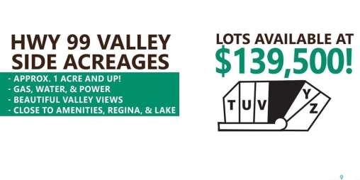 Your chance to own a piece of paradise 2KM east of the cozy village of Craven, SK. Offering spectacular views of the Qu'Appelle valley, there are 5 lots available that are all approximately 1 acre, and they are serviced with gas, power, and a community water system - convenient living 20 minutes from Regina with only 2KM of gravel! There was a geotech done for the entire development when it was established showing good building sites on all of the lots but a new one will likely need to be completed when you build. Plan of Survey from development also available showing specific lot dimensions. Call the listing agent for more details or to walk the properties in person!