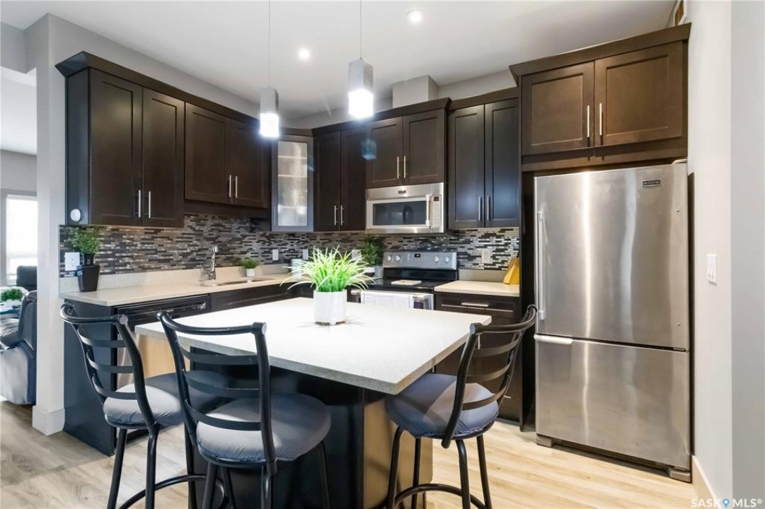 Stylish 3-Bedroom Townhome in Prime Evergreen Location. Just steps from Evergreen Square, this beautifully finished townhome features luxury vinyl plank and tile flooring, quartz countertops, maple cabinetry, and stainless steel appliances. The open-concept main floor includes a large dining area and oversized walk-in pantry. Upstairs offers a spacious primary bedroom with ensuite and walk-in closet. There are two more good sized bedrooms, a full bath and convenient second-floor laundry. The unfinished basement is ready for your personal touch with two large windows. Enjoy a private fenced yard, covered deck, stone patio, single detached garage, and an extra parking stall. Bonus features include central A/C, natural gas BBQ hookup, and blinds throughout.