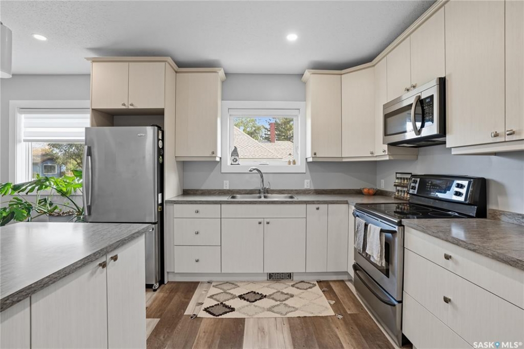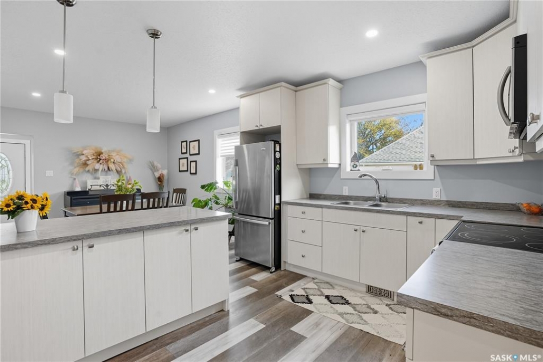 Looking for a nicely updated home in the south of Moose Jaw and close to the new school? This updated property offers a great location and plenty of updates throughout. Recent updates include a water heater (2025), air conditioner (2022), and PVC vinyl fencing (2022) enclosing a double wide lot, perfect for dog lovers. Inside, you will find updated kitchen cabinets and countertops, luxury vinyl plank flooring, nice carpet in the living room, bedrooms, family room, and den. The home also features PVC windows and doors, with a newer electrical panel and 100 amp service. Exterior updates include refreshed shingles and vinyl siding on the house, garage, and shed. The main floor offers a bright kitchen and dining area, a south-facing living room that fills with natural light, and two bedrooms. Downstairs, the developed basement includes a spacious family room, den, laundry area, and a 2-piece bath. Outside, enjoy the 20x24 garage and large 16x12 shed, great for storage or projects. If you have been looking for an updated home in South Hill near the new school, this is the one! Contact your REALTOR � to book a showing today!