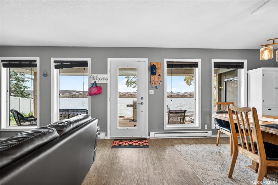 Experience the beauty of lakefront living in this charming 3-bedroom, 1-bath four-season home nestled along the shores of Buffalo Pound Lake. Thoughtfully maintained and designed for comfort, this inviting property offers breathtaking views and the perfect blend of indoor and outdoor living. Step inside to an open-concept living room and kitchen, where natural light and stunning lake views create a warm and welcoming atmosphere. The kitchen provides convenient access to the covered front deck, ideal for morning coffee or evening gatherings as you take in the peaceful lake scenery. A large screened deck extends your living space outdoors, offering a perfect spot to relax bug-free on summer nights, while the private back deck out back provides a quiet retreat surrounded by nature. Whether you're hosting family and friends or simply enjoying the tranquility, this property captures the essence of lake life. Enjoy the serenity of the water, the beauty of the surrounding landscape, and the comfort of a home that's ready for all seasons — a true retreat where every day feels like a getaway.