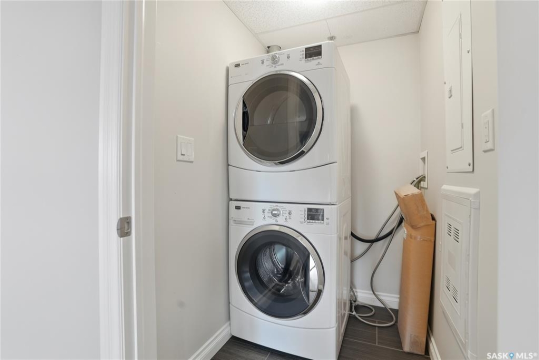 Welcome to this stunning top-floor corner condo in the highly desirable neighbourhood of Willowgrove. Formerly a show suite, this 2-bedroom, 2-bath residence combines refined finishes with an exceptional location. The spacious floor plan showcases granite countertops, stainless steel appliances, and a blend of tile and laminate flooring designed for both elegance and easy care. A large private balcony offers the perfect place to relax, while window coverings throughout, a heated underground parking stall with private storage locker, and an additional surface stall provide comfort and convenience. Ideally situated just steps from schools, grocery stores, cafés, restaurants, banks, and medical offices, this home offers the perfect balance of luxury and lifestyle. With a bus stop right outside, it's ideal for professionals, small families, or university students seeking upscale living in one of Saskatoon's most sought-after communities. Schedule your private showing today and experience the best of Willowgrove living.