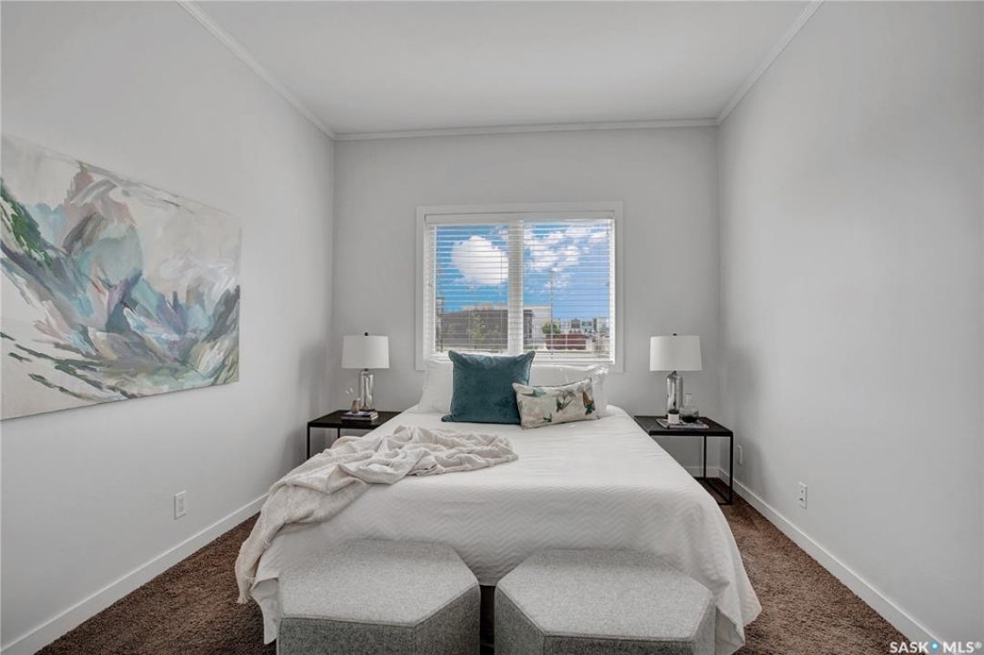 This Kensington Flats condo features 2 bedrooms, 1.5 bathrooms & 2 parking stalls (1 underground, 1 surface stall). The beautiful finishings throughout feature espresso maple cabinetry in the kitchen and bathrooms (soft close doors and drawers), glass tile backsplash, stainless steel appliances, quartz countertops, moveable island and a great sized living room with a door that leads out onto the balcony. The in-suite laundry features a stackable full size washer and dryer. Great layout with the bedrooms being separated from the main living space and 9' ceilings throughout. Additional perks include central air conditioning, heated underground parking, amenity spaces in the building, & you'll be in walking distance to all the amenities of Kensington & Blairmore. Convenient condo living!