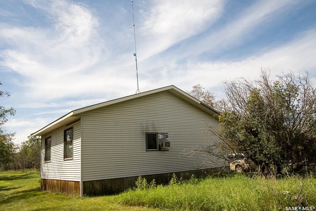 A rare opportunity to own10 acres just 15 minutes from Saskatoon, make this acreage your own personal sanctuary. Heavily covered by poplars, it's not uncommon to see deer, moose, fox, and a vast array of bird species. This 720 square foot bungalow is 1984 built, with an attached heated 26 X 36 shop for wood work, art studio or hobby space. Primary heat is two Osburn wood stoves and electric baseboards, natural gas to the property line & well water source. Features handmade oak & ash cabinets, custom stained glass door, 4 piece bathroom, front & back deck, and more!