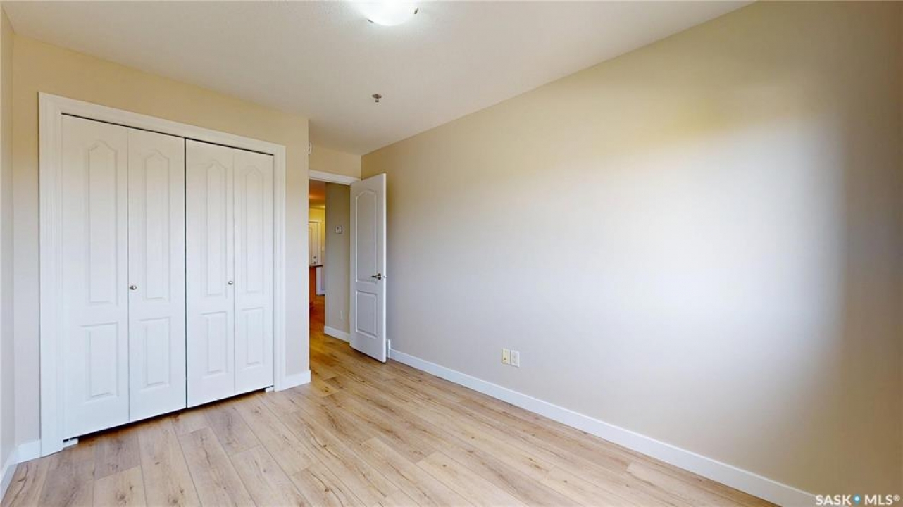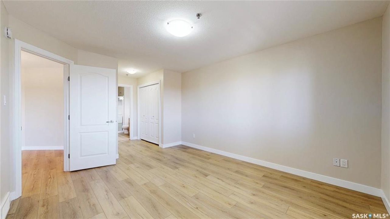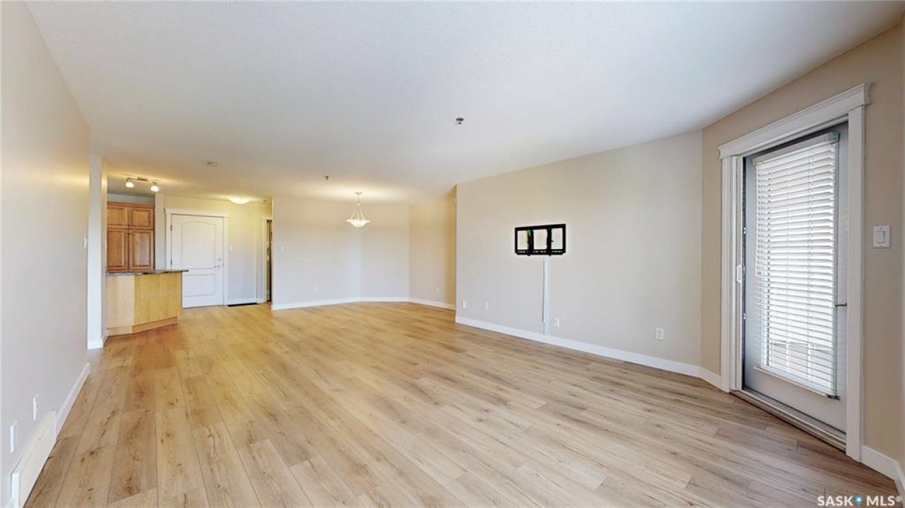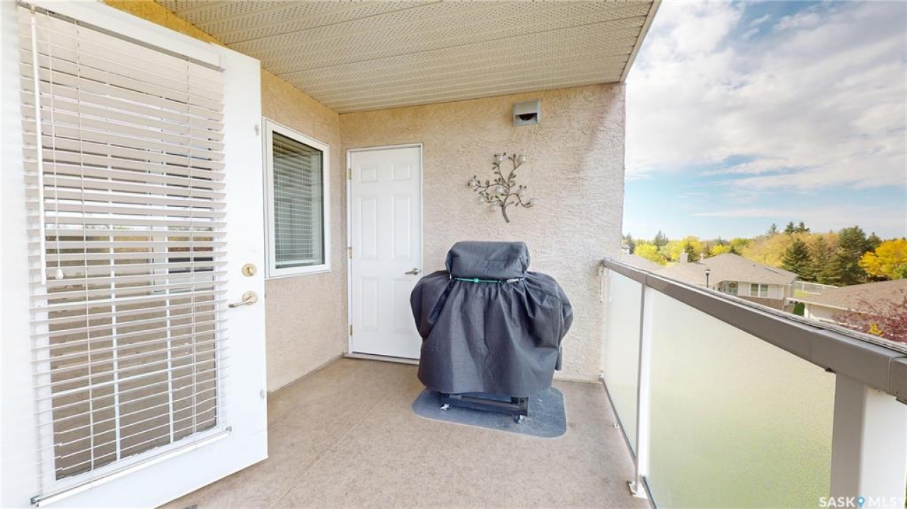 Welcome to �Unit 308 at 2885 Arens Road E, a meticulously maintained and spacious residence situated in the desirable �Wood Meadows �neighborhood,offering unparalleled access to all East End amenities. This �third-floor unit �boasts a desirable �open-concept layout,perfect for modern living and entertaining. The well-appointed kitchen features ample storage and counter space, complemented by a convenient �eat-up breakfast bar. Recent updates include new �countertops(2021) and a full suite of �stainless steel Whirlpool appliances. The entire unit features durable, recently updated �vinyl plank flooring(2025) and baseboards, �along with a bright interior finished with a �neutral paint palette �(2021). The dining area flows seamlessly into the large living room, which provides direct access to a good-sized �west-facing balcony—ideal for relaxing and enjoying stunning �sunset views. The smart floor plan offers privacy,separating the sleeping quarters. The �primary bedroom �features double closets and a private �three-piece ensuite bathroom. The secondary bedroom and the main four-piece bathroom are situated on the opposite side of the living space. This unit comes equipped with modern conveniences,including �in-suite laundry,central air conditioning, natural gas connection with Colman Revolution BBQ included, all custom blinds and a �built-in central vacuum system. Ownership includes �one exclusive parking stall �and a secure �storage unit cabinet �within the heated parkade which is uniquely built at ground level for ease of access. The building is exceptionally well-maintained and offers an impressive array of �amenities �for residents to enjoy, including:Hospitality Room, Exercise Room,Craft/Games Room,Workshop,Guest Suite, Internal shared storage room, Wash Bay in the Parkade, Elevator and Visitor Parking. �Condo fees include � water, sewer, centralized water heater and water softener, snow removal, lawn care, garbage and recycling, common area maintenance, building insurance and reserve fund.