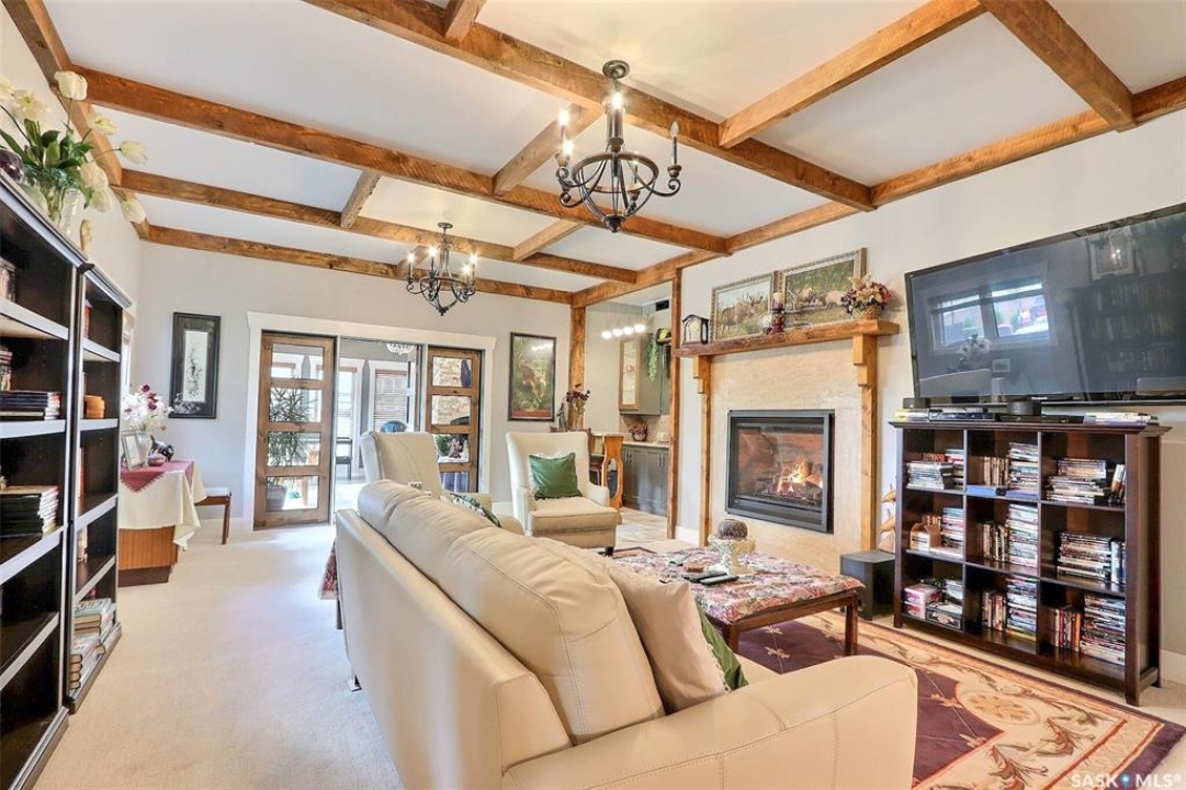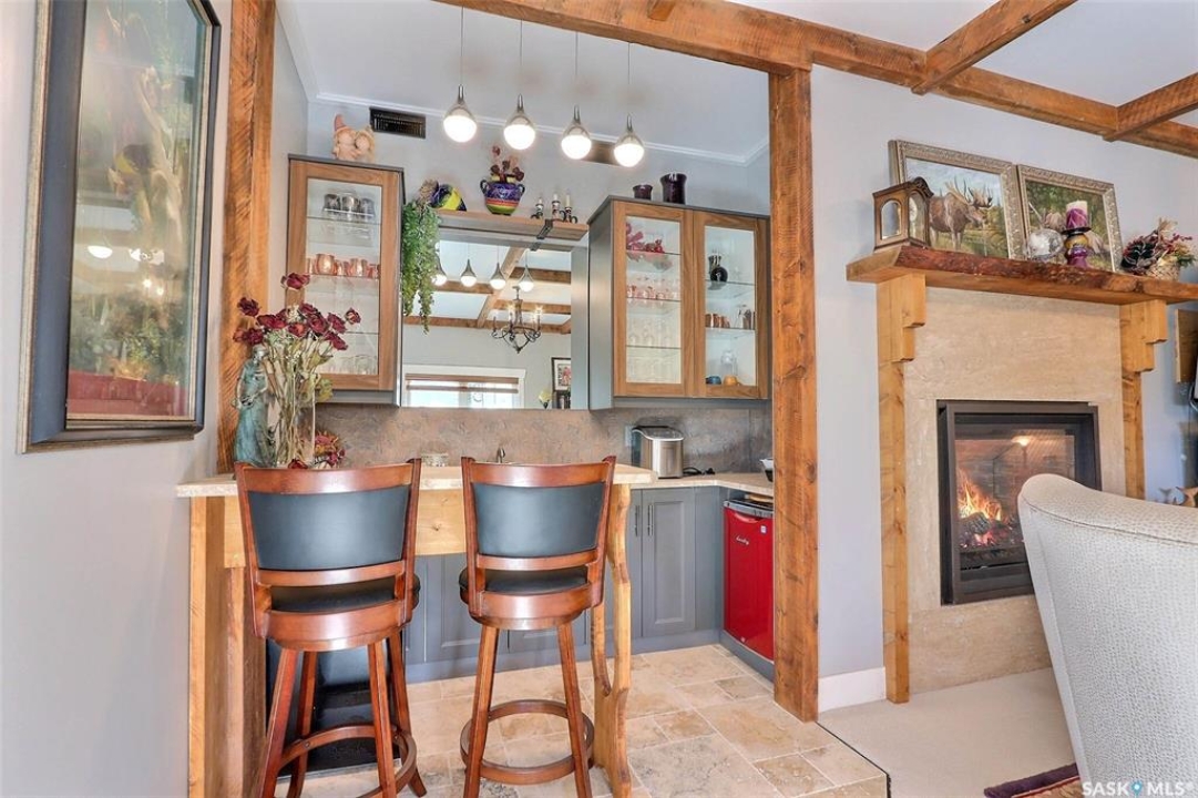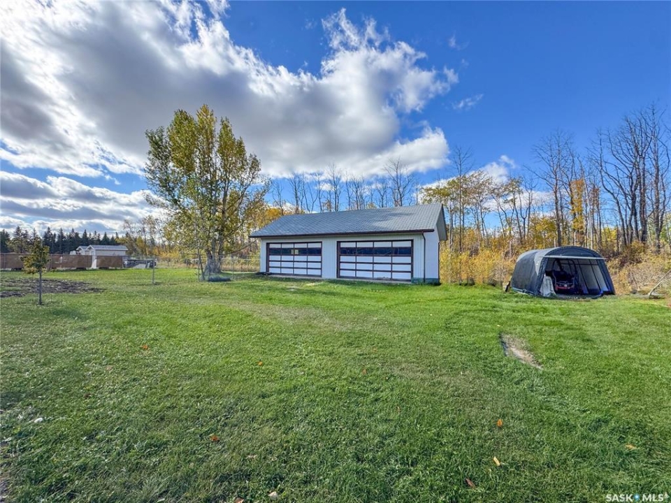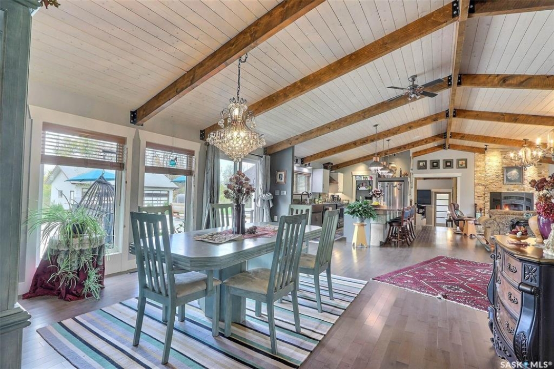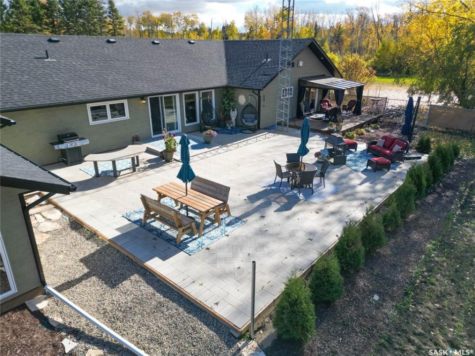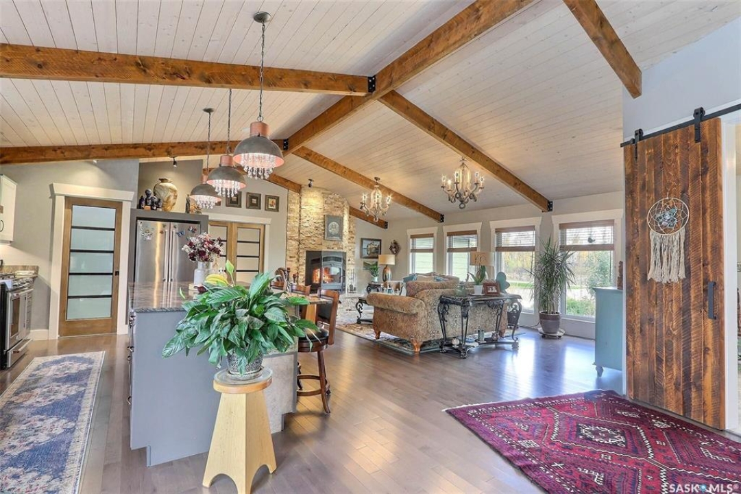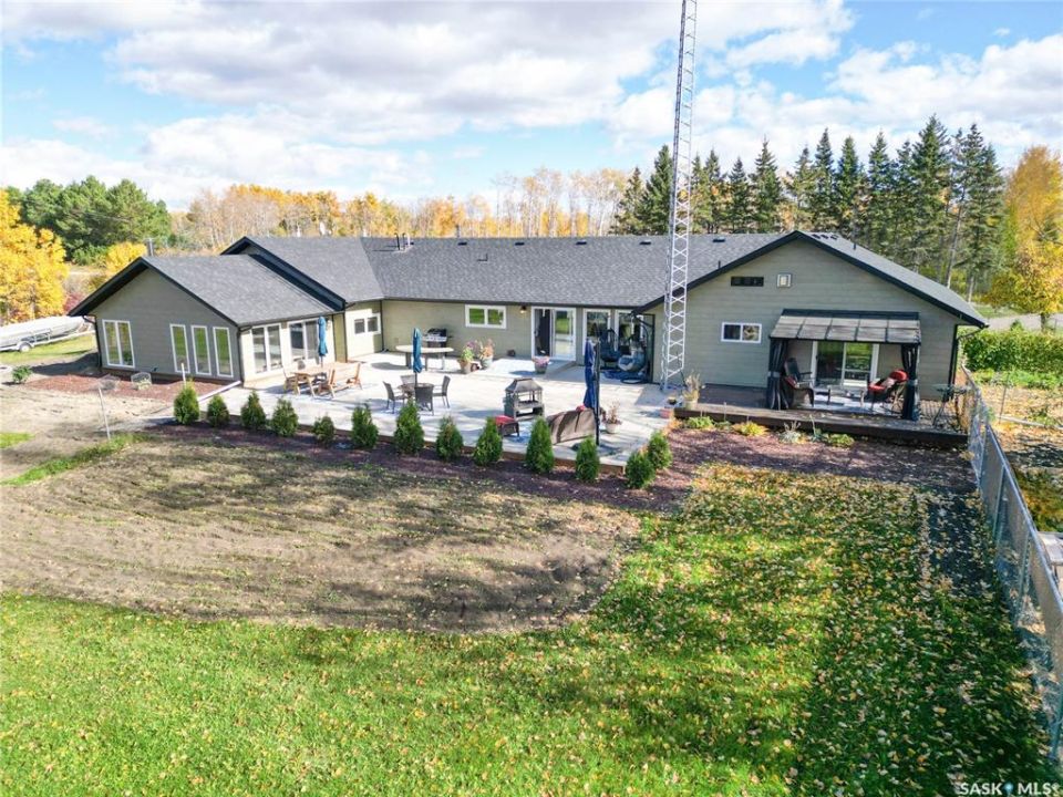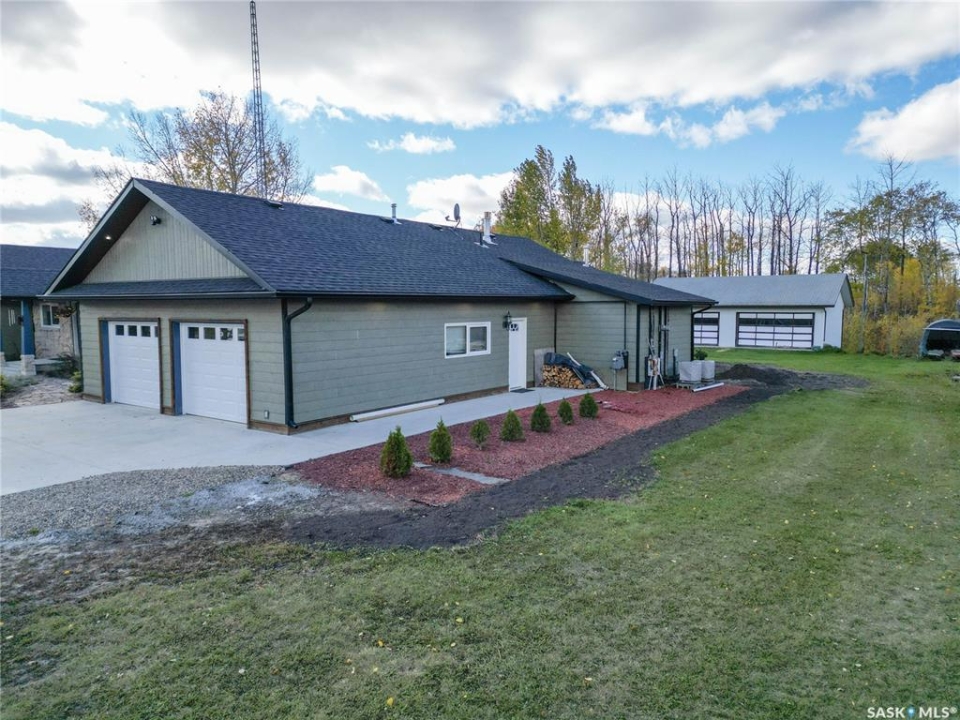 Once in a lifetime 10 acre estate in prestigious Madden Place neighborhood of Green Acres – fully updated & turn key! This extraordinary 3,466 sq/ft ranch-style bungalow offers unmatched luxury, privacy, and convenience just minutes from Prince Albert. Set on 10 beautifully landscaped acres with an additional 75 trees planted, this sprawling estate is truly one of a kind. Impeccably maintained and move-in ready, the home features 4 bedrooms plus a den, 4 bathrooms, and over 3,400 sq/ft of refined living space. The stunning great room showcases vaulted ceilings with exposed wood beams, wood burning fireplace, hardwood floors, and expansive windows that flood the space with natural light. The open-concept kitchen boasts two-tone cabinetry, granite countertops, a massive island, stainless steel appliances, and a butler's pantry. A second family room with cozy N/G fireplace and wet bar leads to an incredible sunroom with vaulted wood-beamed ceilings, wood burning fireplace, and wall-to-wall windows overlooking the grounds. The spacious primary suite offers a N/G fireplace, deck access with a gazebo, and luxurious 5-piece ensuite with full Travertine slabs in the shower and Travertine dual sinks. The home also includes a large laundry room with abundant storage and an inviting foyer with custom barn doors. Outdoor living is unmatched — enjoy an expansive patio done with paving stones, meticulous landscaping, fenced areas, and unmatched curb appeal. The property includes both an attached heated 26' x 28' double garage and a detached garage with two double doors and concrete floors. Additional highlights: city water, two natural gas fireplaces, two air conditioning units, newer vinyl windows, new 200-amp panel, central vac, electric hot water heater, weeping tile, fire-kill granite front step, and four fireplaces in total. A rare opportunity to own a truly perfection level estate — offering luxurious one-level living in one of Prince Albert's most sought-after locations.
