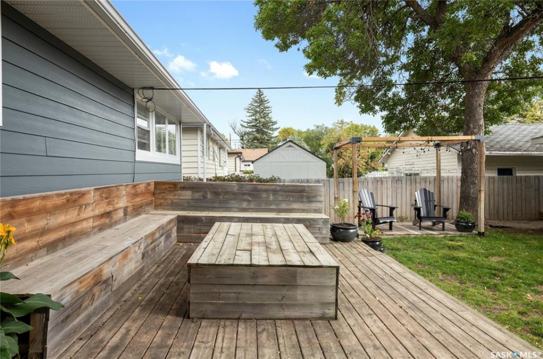 This home is nestled in the highly sought-after Lakeview neighborhood, where comfort meets style in this stunning 3-bedroom residence. As you step inside, the warmth of original hardwood floors greets you in the spacious living room, which seamlessly flows into the dining area. Bathed in natural light from the large picture windows front and back, this space is ideal for family gatherings and entertaining friends. The updated kitchen is designed for both functionality and style. With modern finishes, ample counter space, and easy access to the dining area. You'll find three generously sized bedrooms (one with the option of main floor laundry) and a renovated 4 pc bath that completes the main floor. Descend to the updated basement, where a spacious family room awaits. Whether you envision a play area for children, a workout zone, or a cozy movie night retreat, this area accommodates all your leisure needs. The expansive mechanical and laundry area ensures plenty of additional storage or potential for further development. Step outside to discover a sprawling backyard that is an entertainer's dream! With a large deck for summer barbecues, a quaint patio area, a charming pergola, and a dedicated garden space, this outdoor oasis is perfect for family fun and relaxation. Plus, the new con 24x24 garage (built in 2023) offers ample space for vehicles and hobbies alike. Recent enhancements include new basement flooring (2019), fence (2020), sewer line (2021), and Hardy Board siding (2025). Don't miss out on the opportunity to call this beautiful home your own.