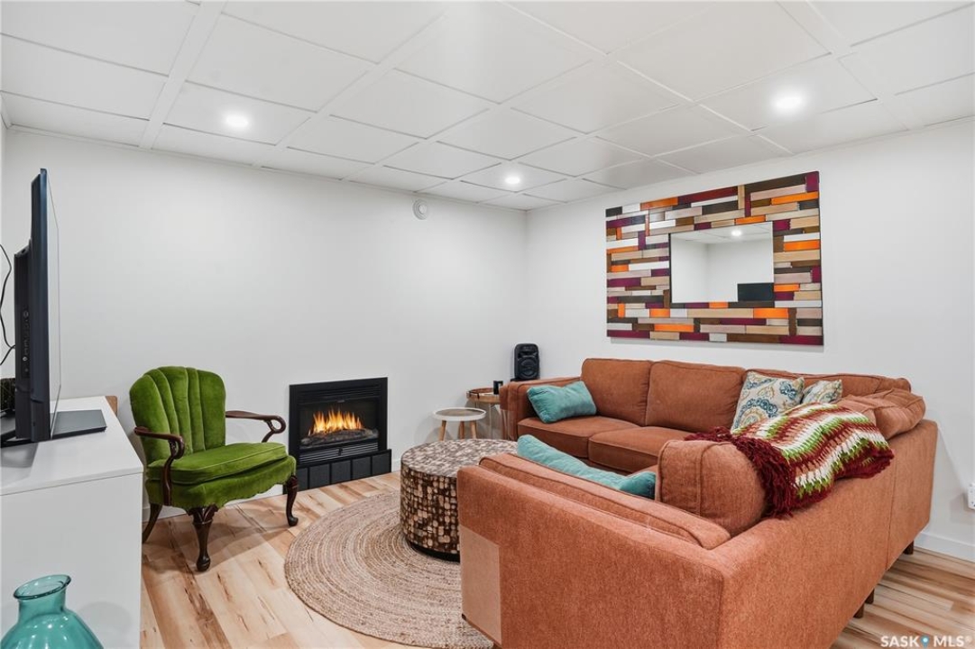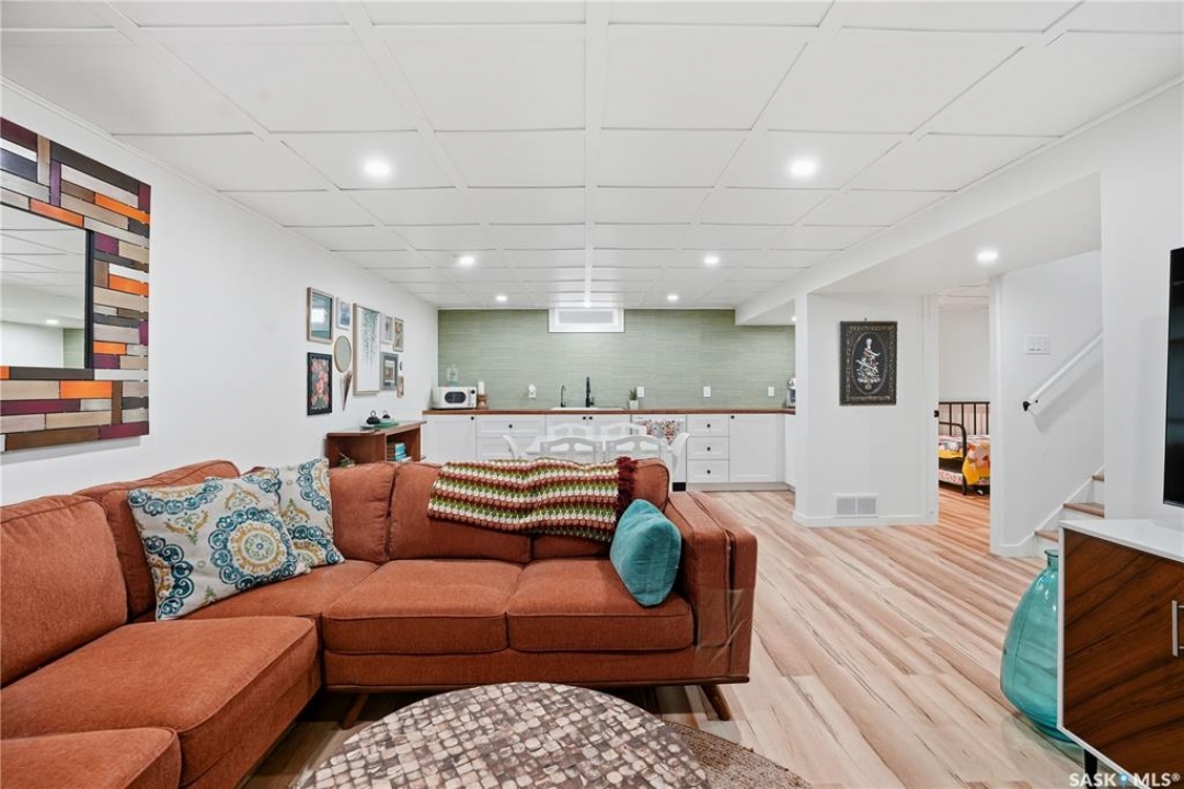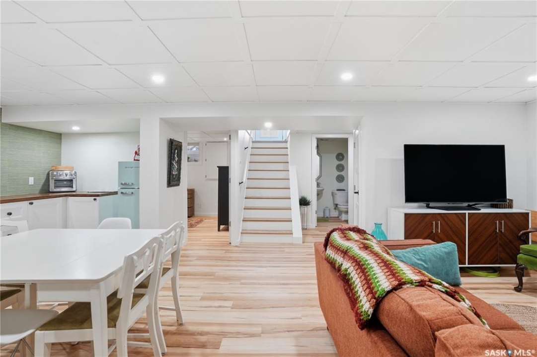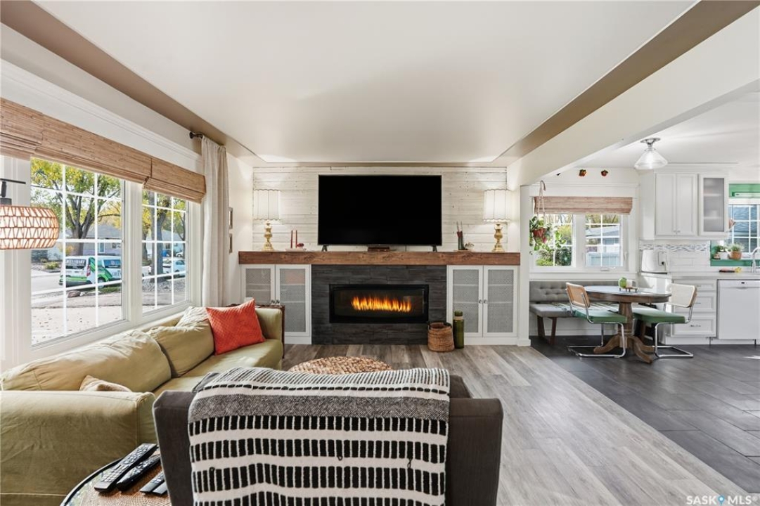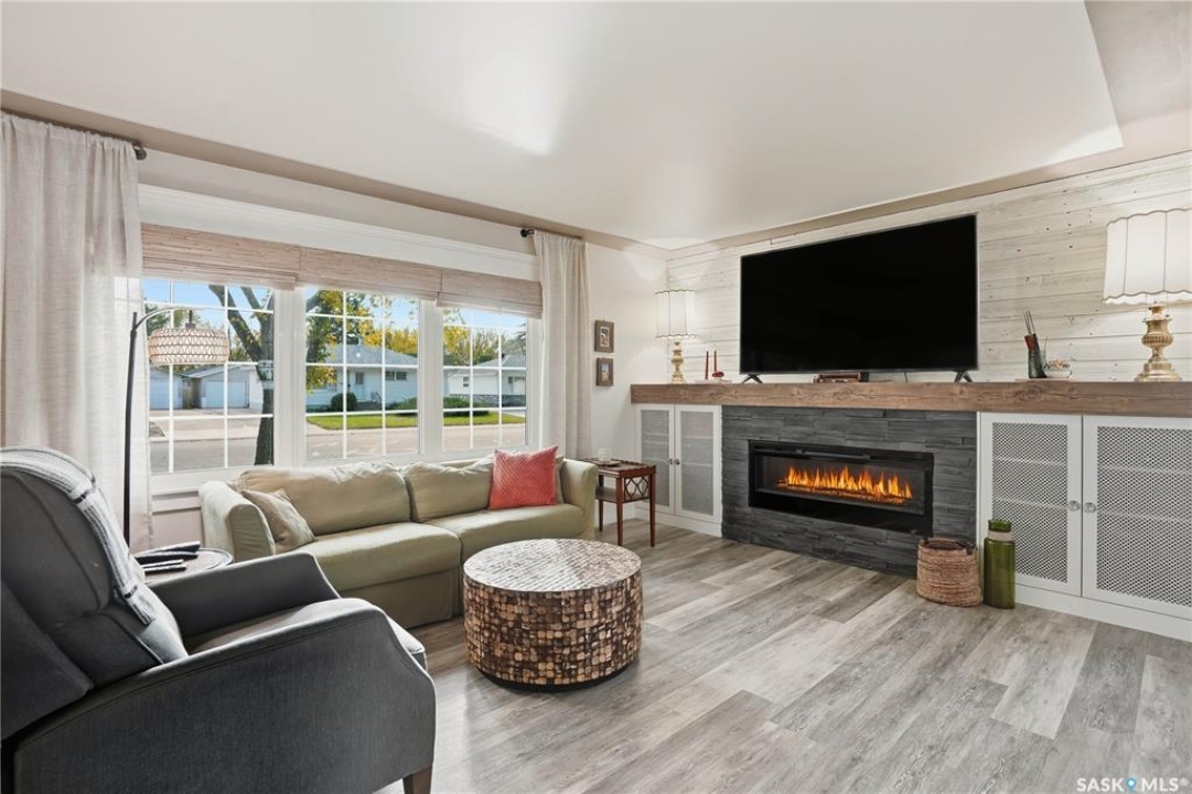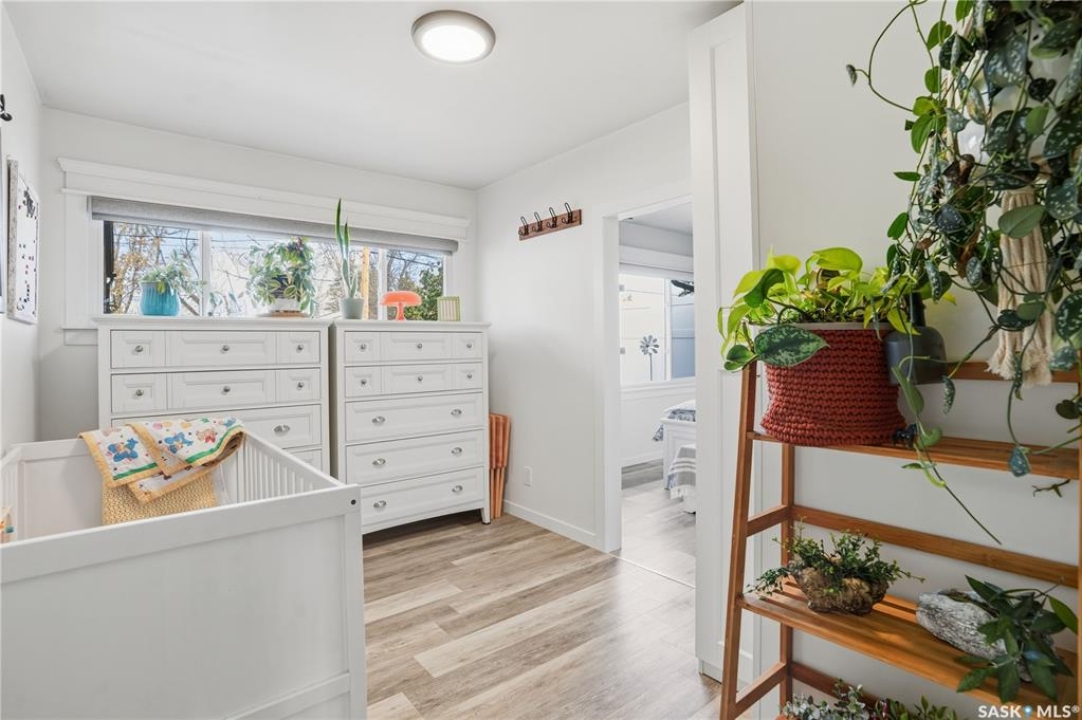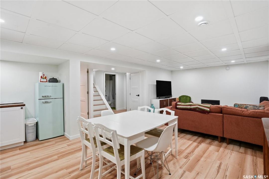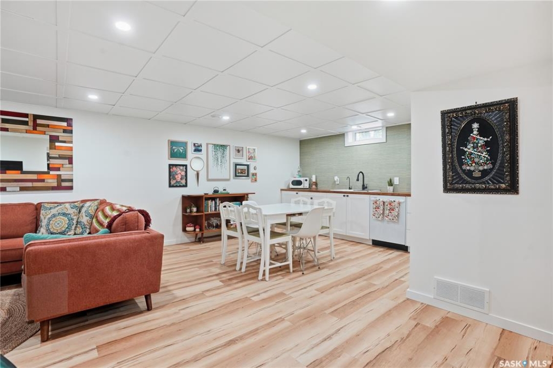 Welcome 3318 4th Avenue N! This beautifully renovated 1,054 sq ft bungalow blends modern updates with timeless charm. Offering four bedrooms and two bathrooms, the home's thoughtful layout provides flexibility — one bedroom is attached to the primary suite, ideal for a nursery or dressing room, while another has been converted into a home office. The main bathroom features a heated tile floor and a charming clawfoot tub for a touch of luxury. The farmhouse-style kitchen brings warmth and character to the heart of the home. The lower level offers incredible versatility — it can serve as a non-regulation suite or as a fantastic entertainment space complete with a wet bar and room for a full-size fridge, electric fireplace and tons of storage. Outside, you'll find a xeriscaped backyard designed for easy maintenance and year-round enjoyment. The shop-quality garage is a dream — 32x32 in size with an oversized door, steel I-beam, radiant heat, air conditioning, and a built-in radial arm saw (to stay). Recent updates/upgrades include newer siding and windows (2022), newer shingles, new LVP flooring, upgraded lighting, and motorized blinds. Seller states the north wall has been blue-skinned with weeping tile installed and run out to the street. Situated on a mature, quiet street in Coronation Park, this home is move-in ready and packed with upgrades — perfect for anyone seeking comfort, functionality, and craftsmanship. This home absolutely must be seen to be appreciated!