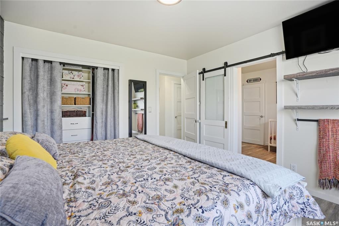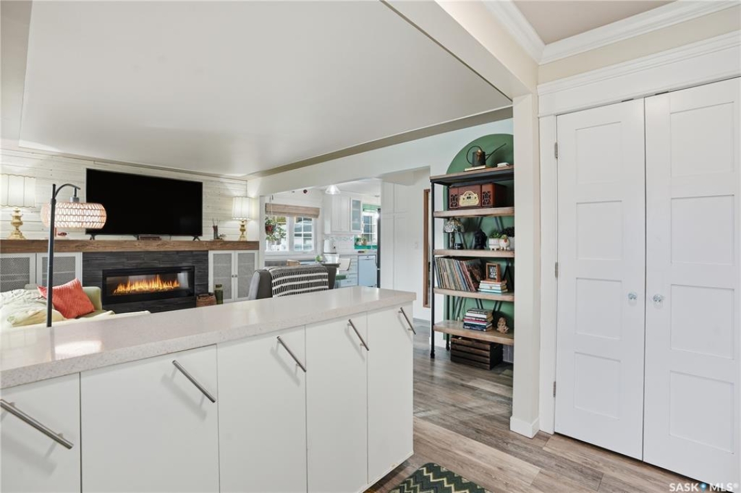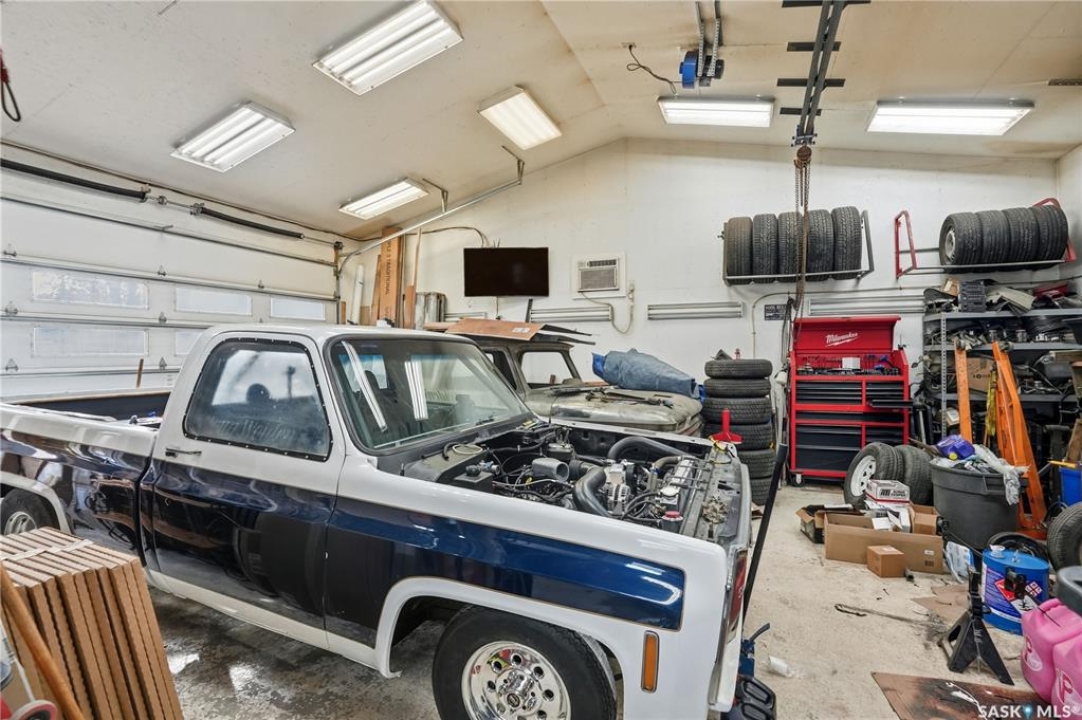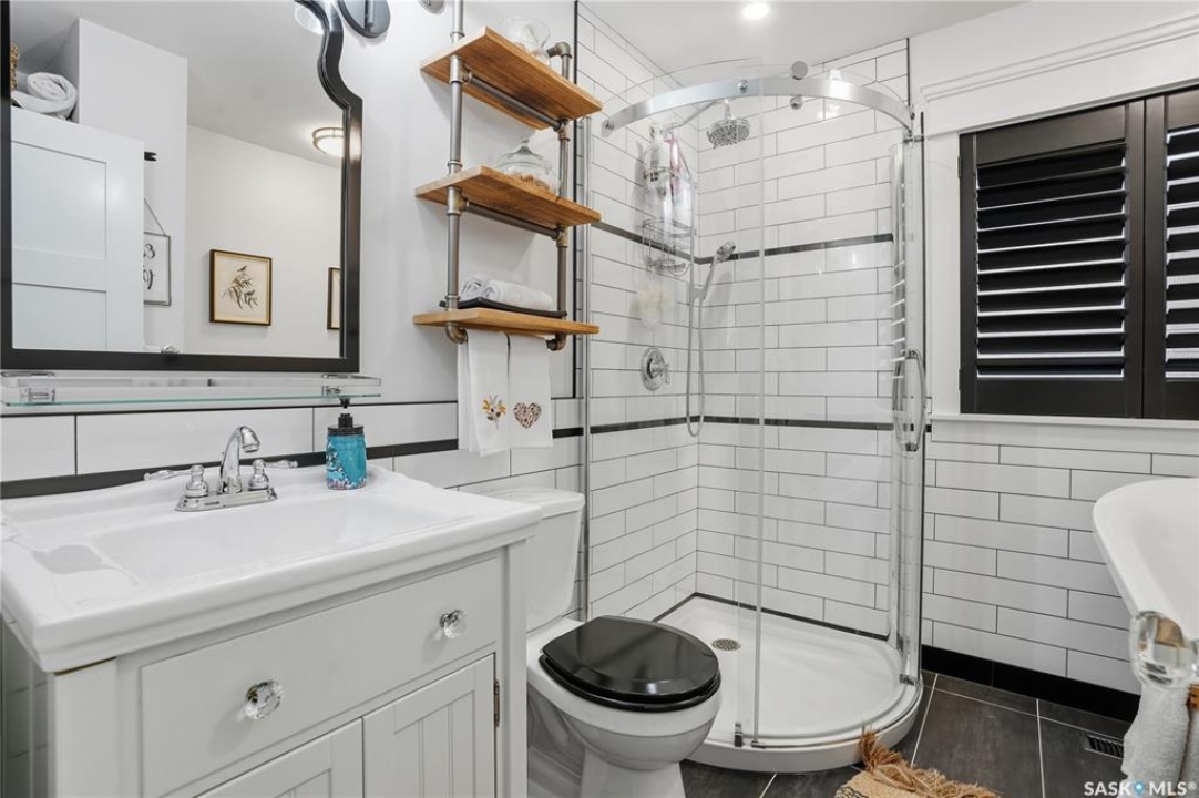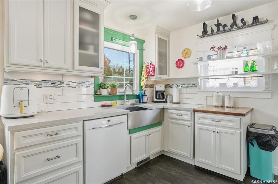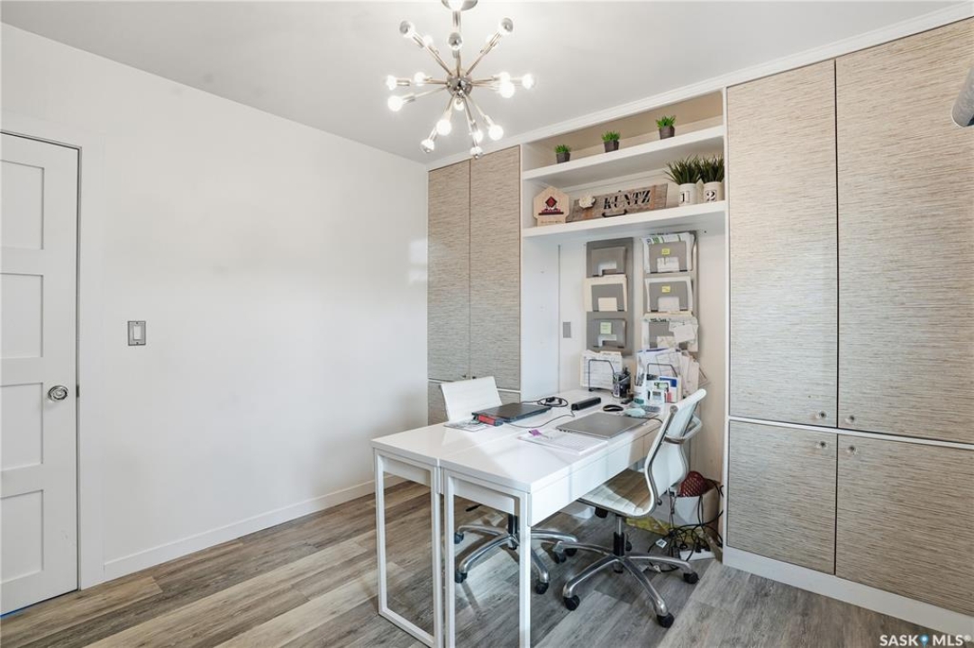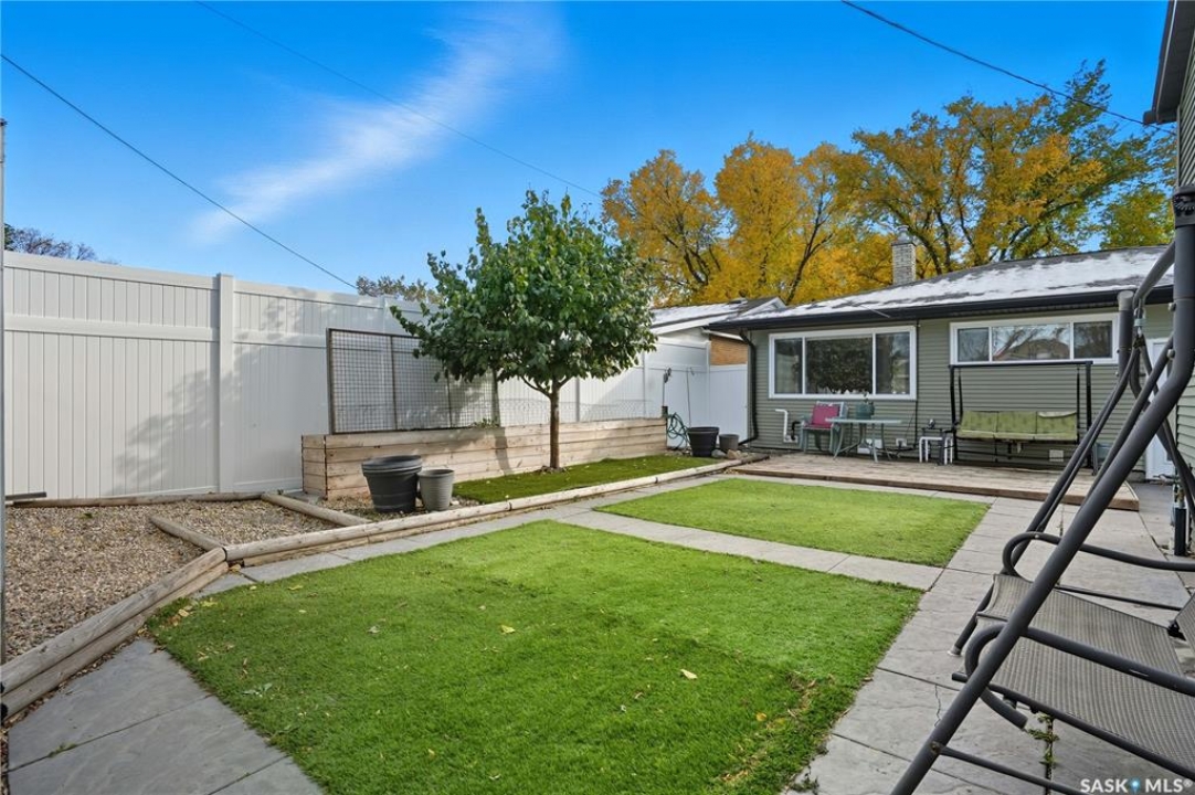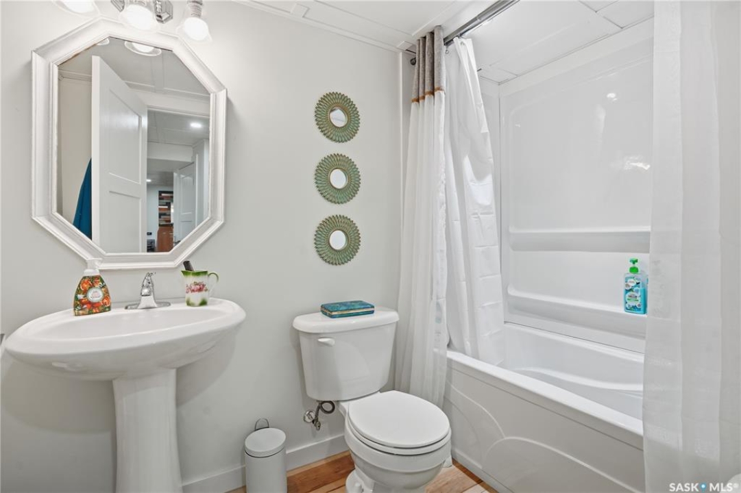 Welcome 3318 4th Avenue N! This beautifully renovated 1,054 sq ft bungalow blends modern updates with timeless charm. Offering four bedrooms and two bathrooms, the home's thoughtful layout provides flexibility — one bedroom is attached to the primary suite, ideal for a nursery or dressing room, while another has been converted into a home office. The main bathroom features a heated tile floor and a charming clawfoot tub for a touch of luxury. The farmhouse-style kitchen brings warmth and character to the heart of the home. The lower level offers incredible versatility — it can serve as a non-regulation suite or as a fantastic entertainment space complete with a wet bar and room for a full-size fridge, electric fireplace and tons of storage. Outside, you'll find a xeriscaped backyard designed for easy maintenance and year-round enjoyment. The shop-quality garage is a dream — 32x32 in size with an oversized door, steel I-beam, radiant heat, air conditioning, and a built-in radial arm saw (to stay). Recent updates/upgrades include newer siding and windows (2022), newer shingles, new LVP flooring, upgraded lighting, and motorized blinds. Seller states the north wall has been blue-skinned with weeping tile installed and run out to the street. Situated on a mature, quiet street in Coronation Park, this home is move-in ready and packed with upgrades — perfect for anyone seeking comfort, functionality, and craftsmanship. This home absolutely must be seen to be appreciated!