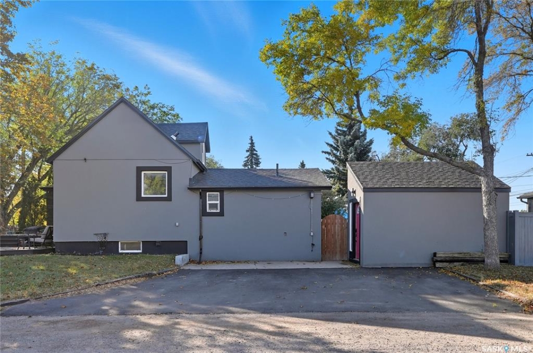 Welcome to 1041 Ave L N in Hudson Bay Park! This well-cared-for home offers just over 800 sq. ft. of living space on a corner lot that backs onto a park and dog park, with barely any neighbours. Inside, you'll find a cozy layout with a loft-style bedroom upstairs and a beautifully updated main level. The property also features a she shed currently used as a salon with a small deck and heat! Enjoy the heated double heated car garage and an impressive list of updates that make it truly move-in ready. Recent improvements include: 2” foam acrylic stucco (2018), new air conditioner (2019), new roof shingles (2021), a brand new garage (2022), a full kitchen renovation with Superior Cabinets (2022), all new electrical, insulation, drywall, plumbing and flooring on the kitchen level (2022), a new bathroom with Superior Cabinets (2022), vinyl fencing (2022), a new driveway (2023), Brandy's She Shed (2023), and a composite back deck (2024). The home also had all new doors and windows installed in 2017 (except the bay window at the front). Located close to parks, schools, and amenities, this home perfectly combines modern upgrades, character, and an excellent location.