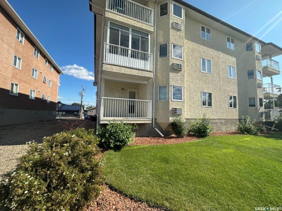 Great downtown location on this 1200 sqft 2 bedroom, 2 bath condo. Located on the main floor of the building. Entrance to the condo opens to a spacious foyer with entrance to the laundry room with extra storage. The kitchen has plenty of cupboards and counterspace and leads to a bright living room and dining room with garden doors that open to the balcony. The master bedroom has plenty of closet space and a 3-piece ensuite. A 2nd bedroom and a 4 piece main bath complete the floor plan. This condominium has an elevator, underground parking and a common area. Each unit has one underground parking stall. Condo fees are $500/month and include, water, heat, lawn maintenance, snow removal, building insurance, and exterior building maintenance and common area maintenacne. Call to book your showing today!