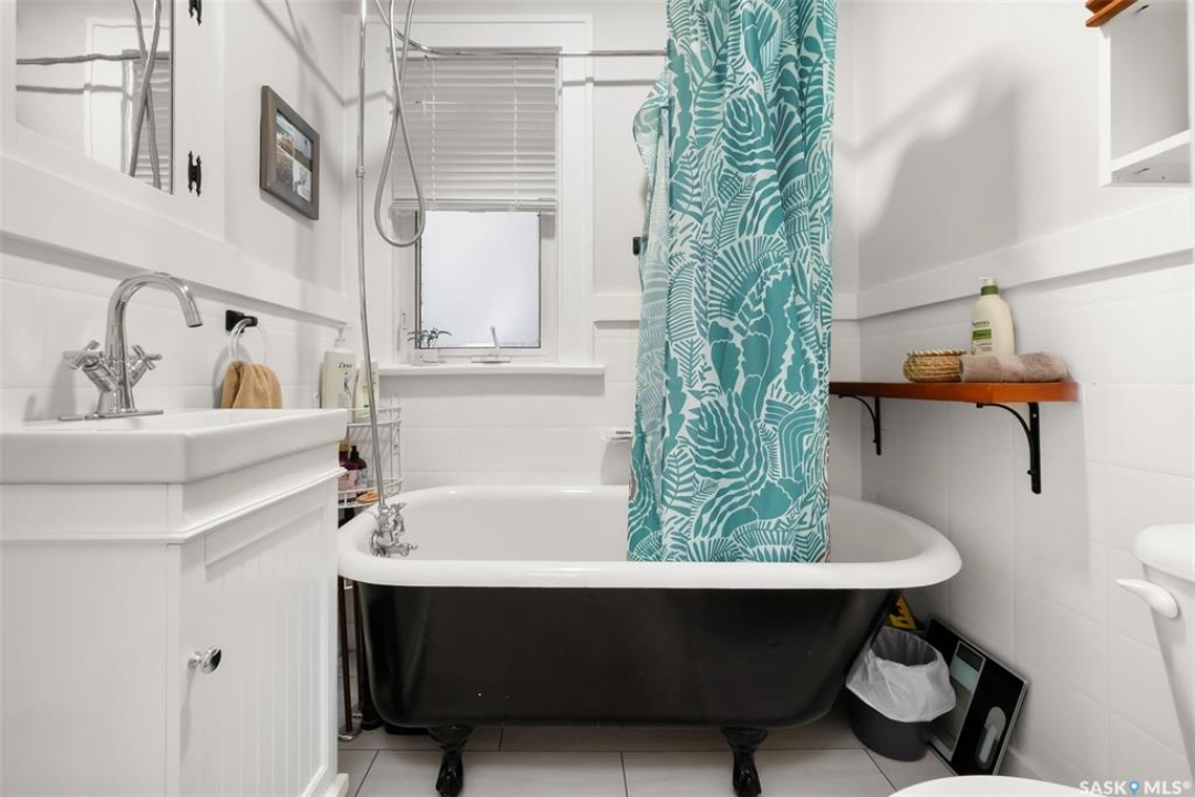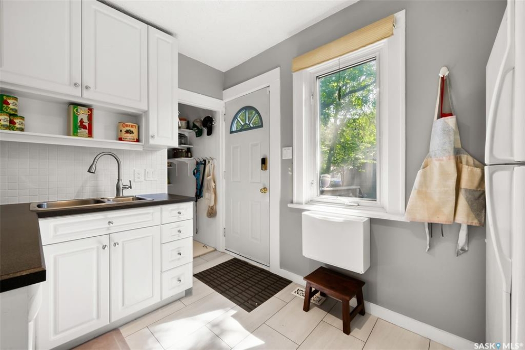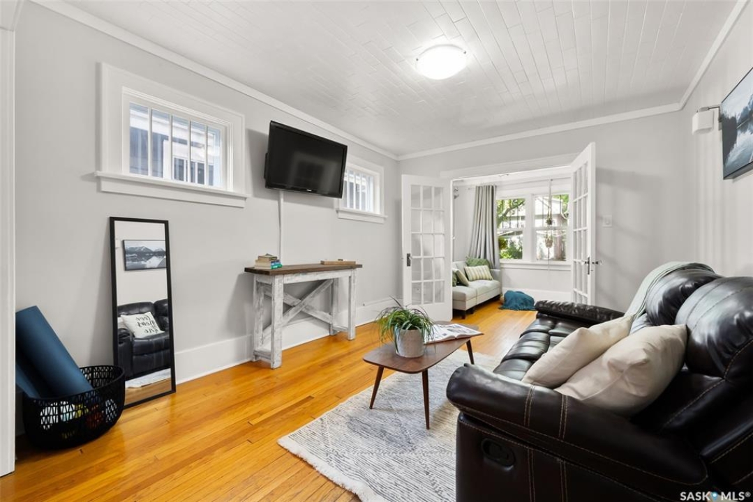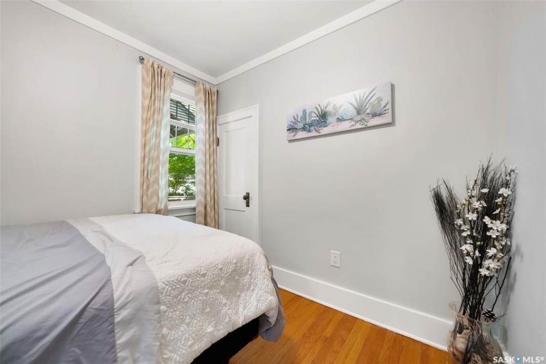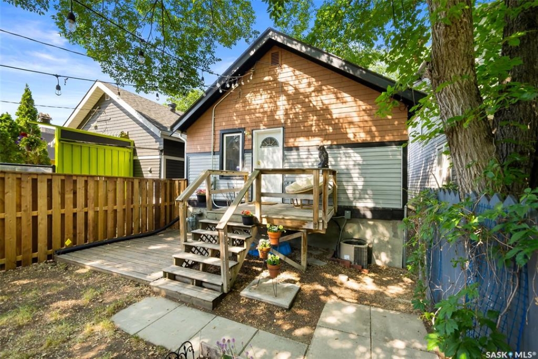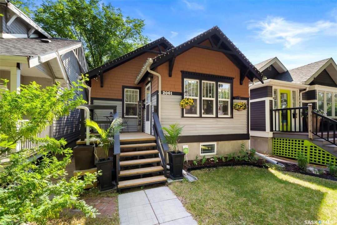 Welcome to 2061 Elphinstone Street—perfectly situated in the heart of Regina's sought-after Cathedral neighborhood. Just steps from 13th Avenue's trendy coffee shops, restaurants, and boutiques, and within walking distance to Mosaic Stadium, Brandt Centre, and Evraz Place, this home offers unbeatable access to local events and amenities. Inside, this inviting bungalow features a bright, sunlit sitting room, spacious living and dining areas, and original hardwood flooring that adds timeless character. Classic details like tall baseboards, crown molding, and plaster accents enhance the cozy atmosphere. The white kitchen offers a full appliance package and a unique foldaway pantry hatch—blending charm with functionality. The main floor includes two generously sized bedrooms and a beautifully updated 4-piece bathroom complete with vinyl plank flooring, a clawfoot tub, and modern vanity. Additional features include central A/C, a security system, and basement laundry. Enjoy the fully fenced and landscaped backyard with garden beds, patio space, single detached garage, and extra parking via the rear alley. Seller states upgrades include a full electrical replacement and new panel (2021), and half the windows replaced in 2023. Live the Cathedral lifestyle—walk to the farmers market, catch a concert, or relax with a book from a local Little Free Library. Don't miss your chance to own this charming home in one of Regina's most vibrant communities. Book your showing today!