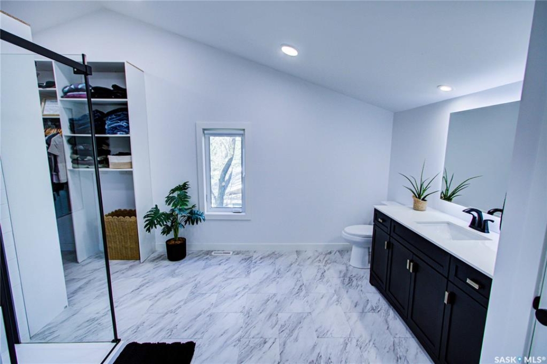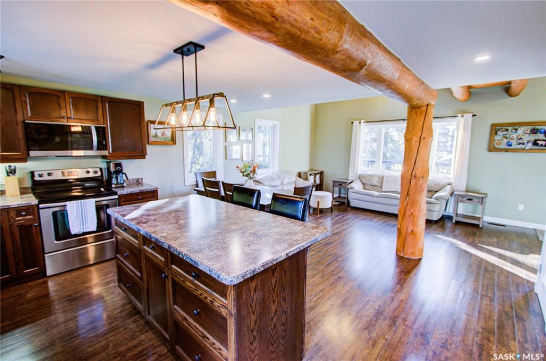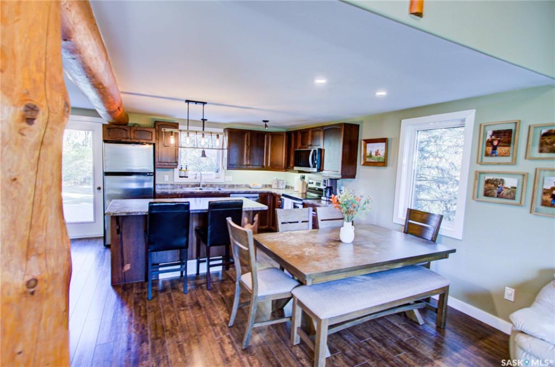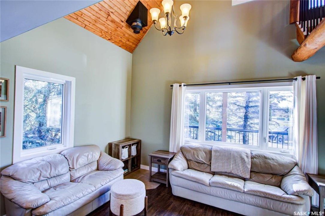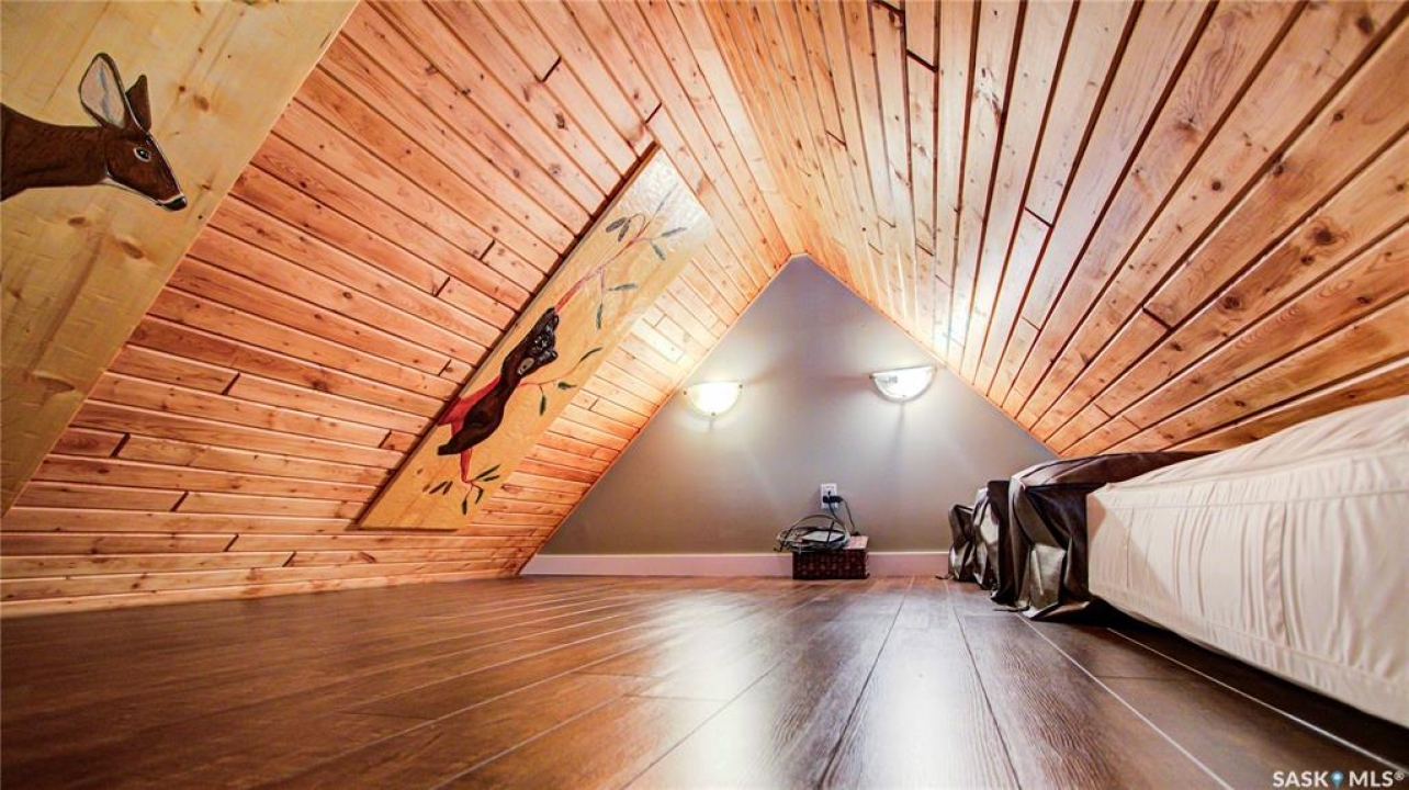 Check out this 5 Beds | 3 Baths + Roughed-in 4th Bath | 1,850+ Sq Ft | Oversized Heated Garage Welcome home to the quaint village of Beatty, a friendly farming community nestled along Hwy 3, just minutes from the city of Melfort and its schools, services, and amenities. This beautiful property offers the perfect blend of small-town charm and modern comfort, boasting over 1,850 sq ft of living space plus a fully finished basement. Originally built in 2012, this home was moved onto a new ICF basement in 2017 and extensively updated, with another major addition in 2022. The addition features an oversized primary bedroom with ensuite, a large laundry/craft room, an additional spacious bedroom, and a massive 2-car heated garage with 9' overhead door and plenty of extra storage. Step inside and be welcomed by stunning log beams and pillars, a vaulted open-concept layout, and a suspended walkway leading to a south-facing balcony. Enjoy family BBQs on the 300 sq ft deck off the kitchen overlooking a private backyard framed by mature trees and bush. The fully developed basement adds approximately 700 sq ft of extra living space and includes a roughed-in 4th bathroom. Additional highlights include: In-floor heat in basement and main bath -- South-facing balcony for natural light -- Quiet dead-end street with minimal traffic -- Village water, sewer & garbage service -- Great highway access to Melfort, Kinistino & St. Brieux -- Option to purchase adjacent .4-acre lot from the Village of Beatty This is a one-of-a-kind home with rustic character and modern upgrades—ideal for families looking for more space and tranquility without giving up convenience.