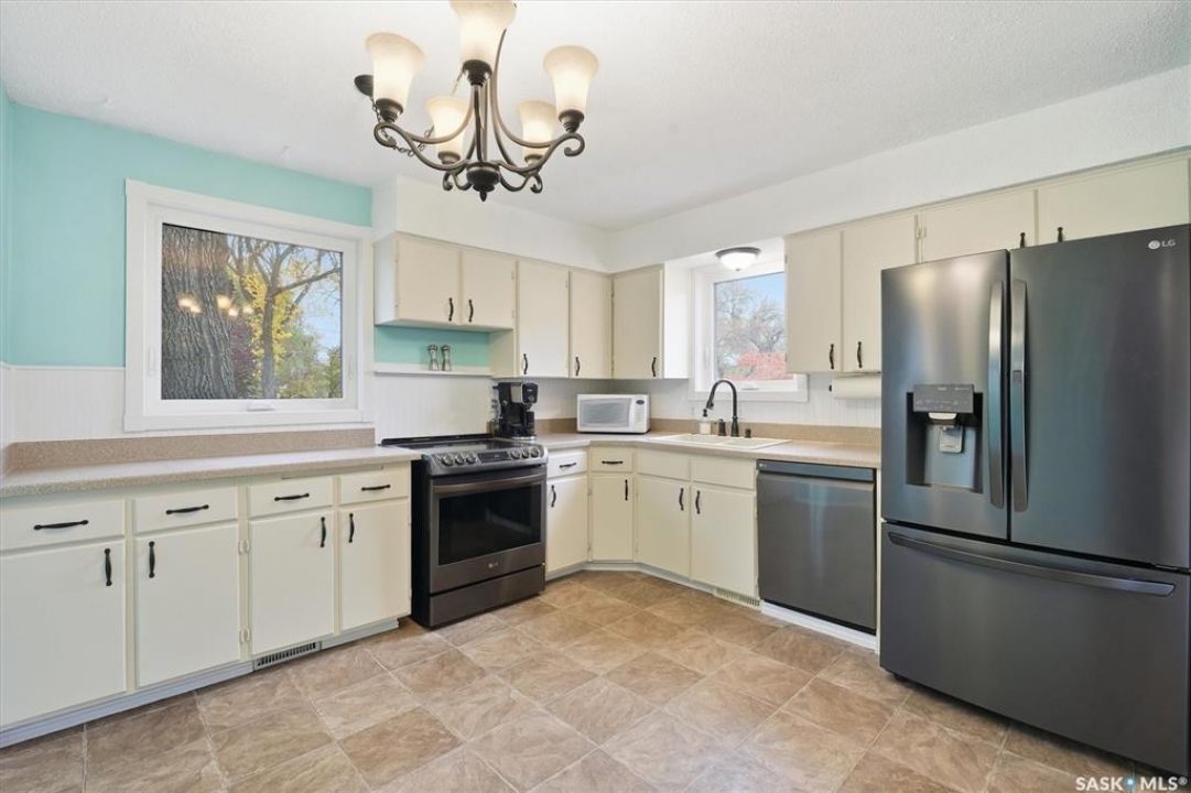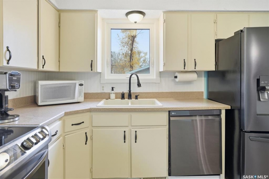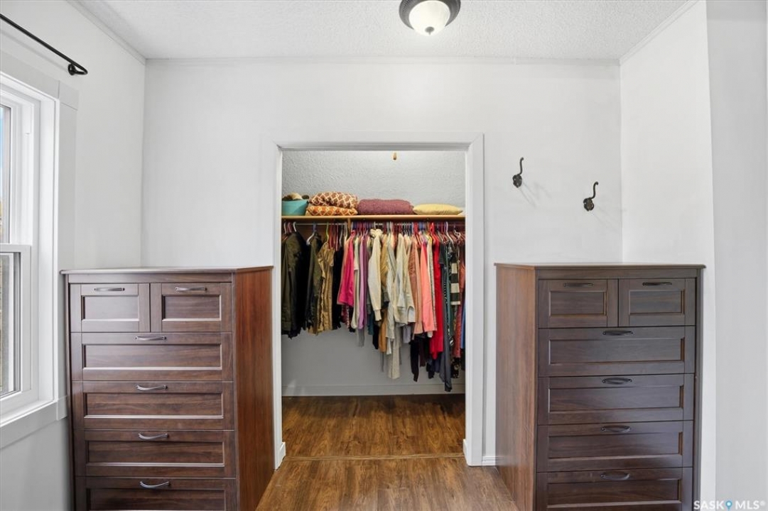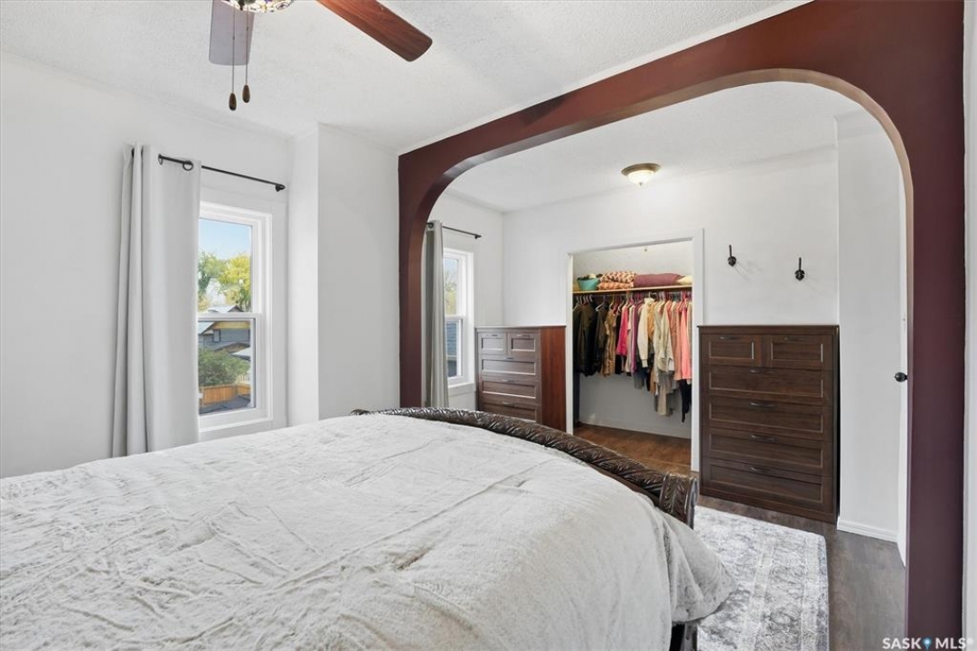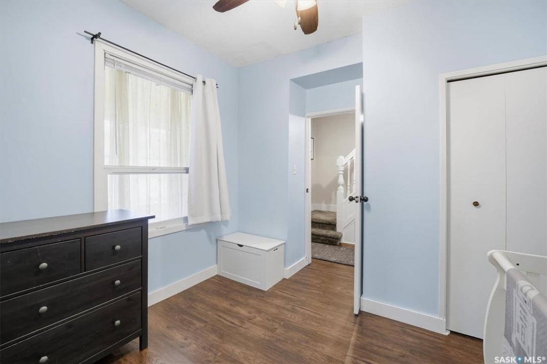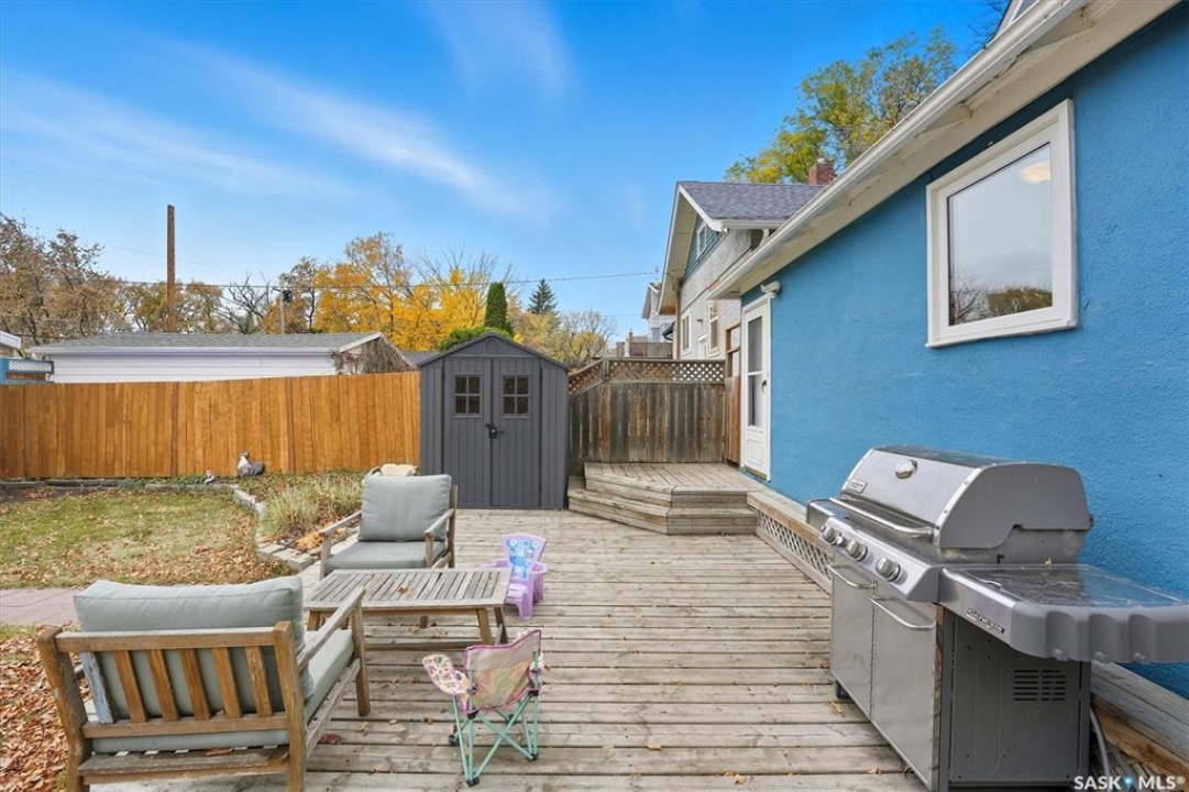 Welcome home to 201 28th Street West. If you're looking for that perfect balance of character and charm combined with modern updates, look no further. The street appeal of this beautiful home is 10/10 as you take the front walk up to the sunny enclosed front porch. Inside the main door you'll immediately be struck by the charm of the original stair rail and foyer area converted to a little library! There's one bedroom on the main floor which could also make a perfect home office. The living, dining and kitchen areas are open to one which is perfect when entertaining guests. The kitchen has lots of natural light and faces out to the backyard and deck area. Upstairs you'll find an updated bathroom with a luxurious air tub. The primary bedroom has a large closet and there's another bedroom just across the hall which also features a large closet. The basement has an additional family room space, an ample laundry/ storage room and the utility room. The backyard features a newer fence, in ground sprinklers, a single detached garage and a large deck that's perfect for relaxing on warm summer days. The yard has apple and plum trees as well as raspberries and strawberries. The windows in the home were replaced in 2024 and 2025. The sewer line and water mains were replaced in 2021. Don't miss this one. Call to book your showing today!
