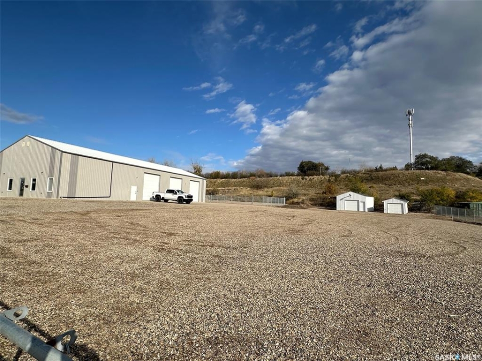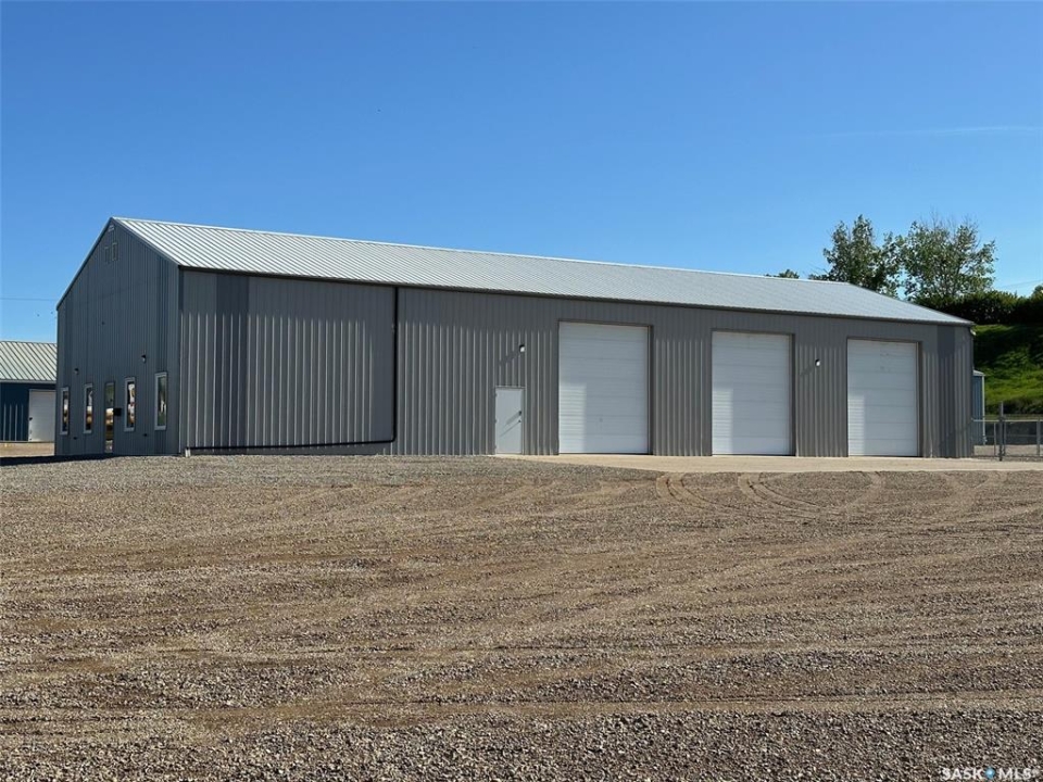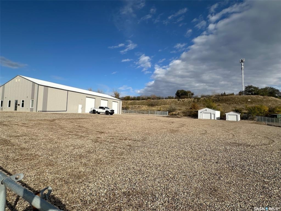 Exceptional opportunity to own or lease a well-maintained 4,200 sq. ft. commercial building situated on a 200' lot. This versatile property offers a blend of functional shop space, comfortable office areas, and cold storage facilities — ideal for a wide range of industrial, construction, or service-based businesses. 4,200 sq. ft. main building has plus mezzanine (Additional storage or workspace area overlooking the shop), enclosed offices suitable for administrative or management use, a boardroom, coffee room/kitchen as well as 2 washrooms; Large open-span shop space with high ceilings and 3 overhead doors for easy access. The yard space has a secured fenced compound as well as being heavily graveled and leveled in 2024. There are also 2 cold storage garages on the property