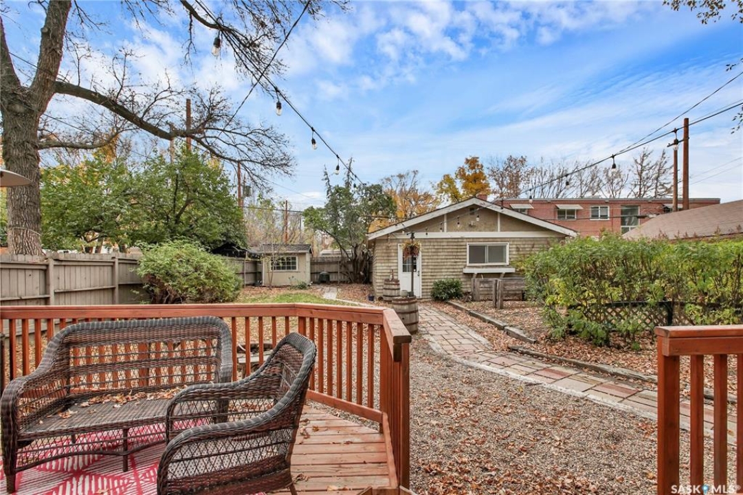 Welcome to 110 29th Street W — a charming character bungalow tucked away in the heart of Caswell Hill. This is one of those homes that immediately feels welcoming, with original hardwood floors, plenty of natural light, and just the right mix of vintage character and modern touches. Caswell Hill is loved for its tree-lined streets and central location — you'll have quick access to downtown, the Sask Polytech campus, and some of Saskatoon's best local shops and restaurants. Inside, you'll find a bright kitchen with stainless steel appliances and a cozy dining space that's perfect for casual dinners. Both bedrooms are a comfortable size, and the basement offers a large living area — ideal for movie nights or a home office — plus tons of extra storage. Outside, the large yard has mature trees, a spacious deck for entertaining, and a great firepit area for relaxing evenings. The 23' x 23' detached double garage with two single doors gives you plenty of room for vehicles and storage, and there's even an extra parking pad out front. If you've been looking for a character home in a great central location, this might be the one.
