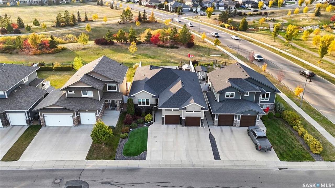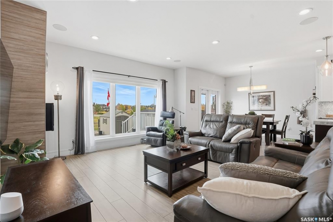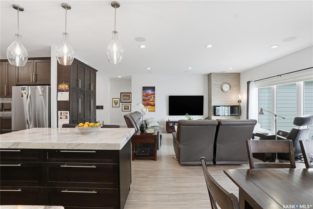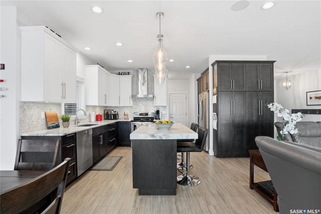 Wow! This home is truly a gem. This immaculate custom-built Fraser Homes bungalow (2014) offers 1730 ft. of fully developed living space, designed with functionality and luxury in mind. Featuring 6 bedrooms + a den, this home boasts high-end finishes, 9' ceilings, a sound system throughout, and multi-zone heating and cooling. The chef's kitchen includes a large island, custom maple cabinetry, stainless steel appliances, marble backsplash, and quartzite granite countertops. The primary suite features a spacious walk-in closet and ensuite with dual sinks and glass shower. All three bathrooms offer heated tile floors and Kohler fixtures. Enjoy maintenance-free landscaping with zero-scape turf, flagstone pathways, composite fencing, and a two-tier deck backing the park. Exterior upgrades include Trimlight LED event lighting (phone-controlled), polyaspartic-coated garage floors, and Hardie Board siding. With southwest exposure, three natural gas outlets, and a triple concrete drive, this home blends quality, comfort, and design in every detail.