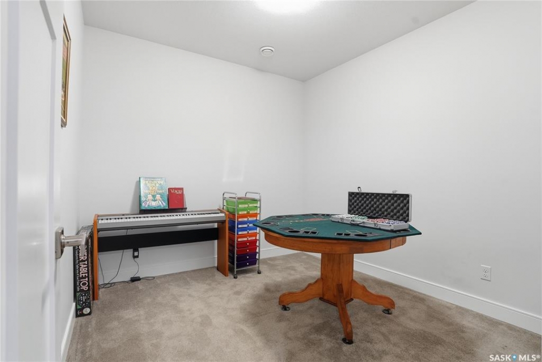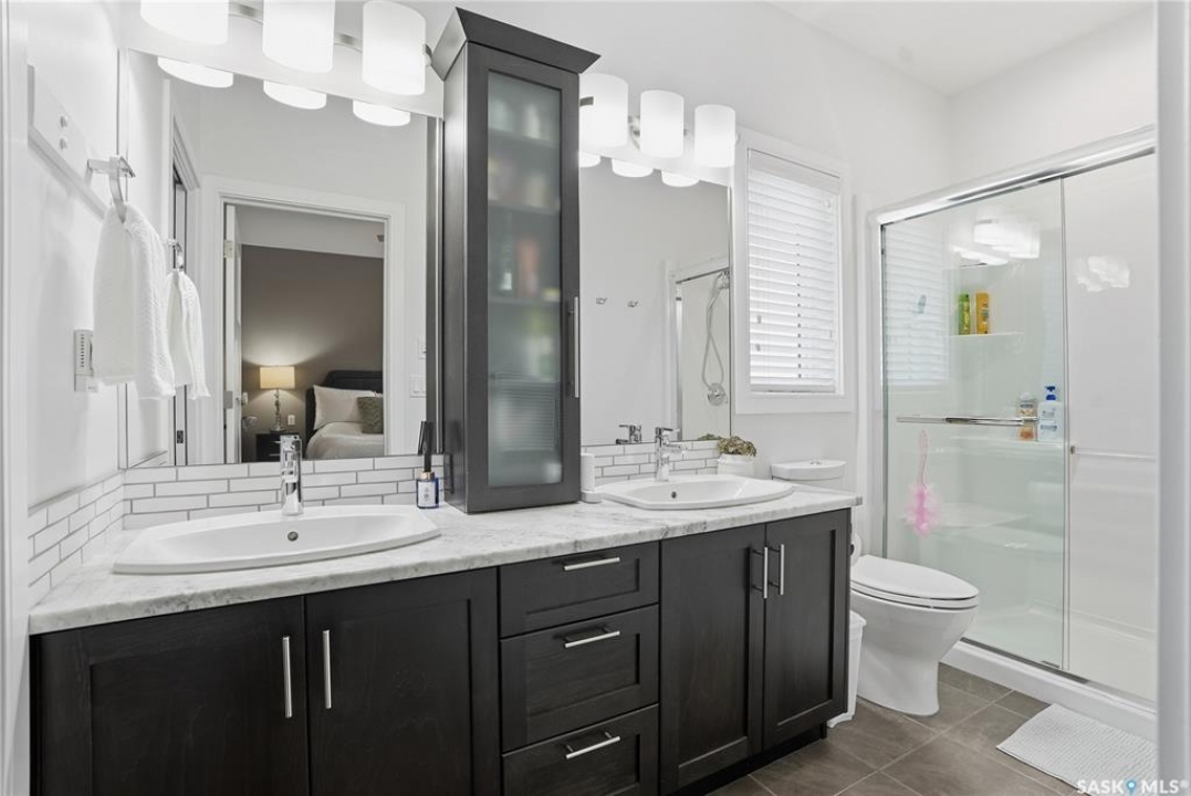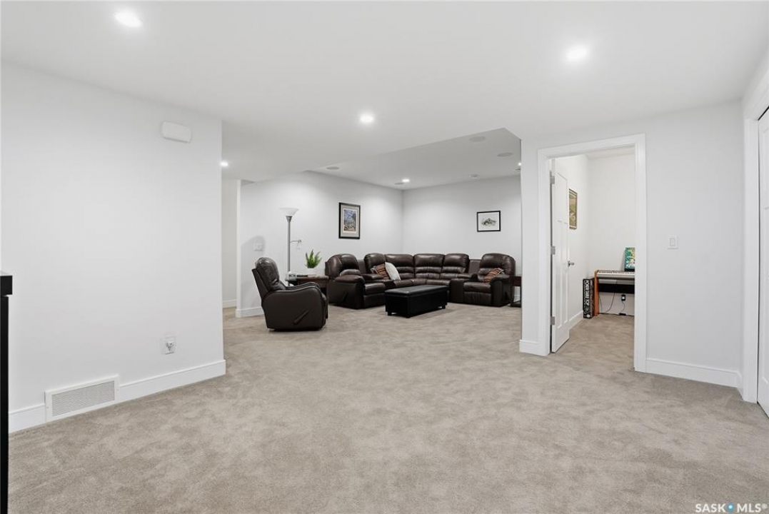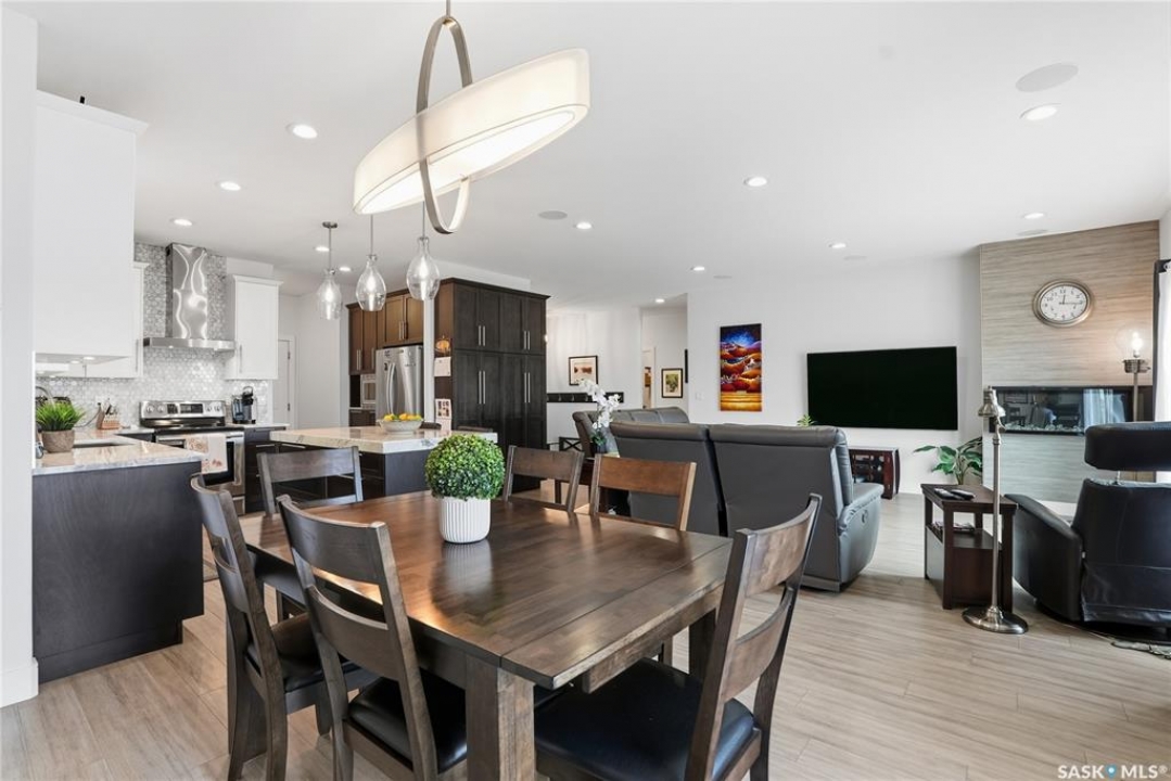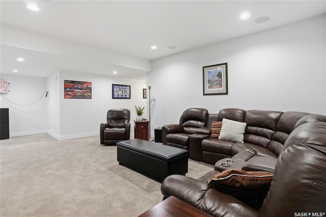 Wow! This home is truly a gem. This immaculate custom-built Fraser Homes bungalow (2014) offers 1730 ft. of fully developed living space, designed with functionality and luxury in mind. Featuring 6 bedrooms + a den, this home boasts high-end finishes, 9' ceilings, a sound system throughout, and multi-zone heating and cooling. The chef's kitchen includes a large island, custom maple cabinetry, stainless steel appliances, marble backsplash, and quartzite granite countertops. The primary suite features a spacious walk-in closet and ensuite with dual sinks and glass shower. All three bathrooms offer heated tile floors and Kohler fixtures. Enjoy maintenance-free landscaping with zero-scape turf, flagstone pathways, composite fencing, and a two-tier deck backing the park. Exterior upgrades include Trimlight LED event lighting (phone-controlled), polyaspartic-coated garage floors, and Hardie Board siding. With southwest exposure, three natural gas outlets, and a triple concrete drive, this home blends quality, comfort, and design in every detail.