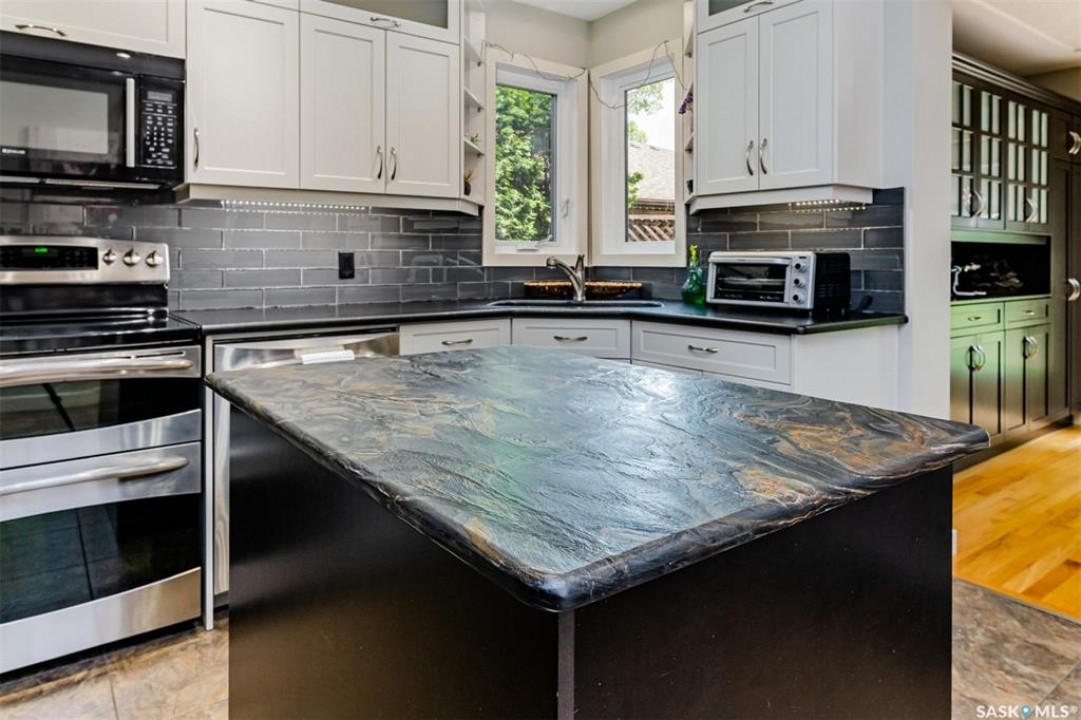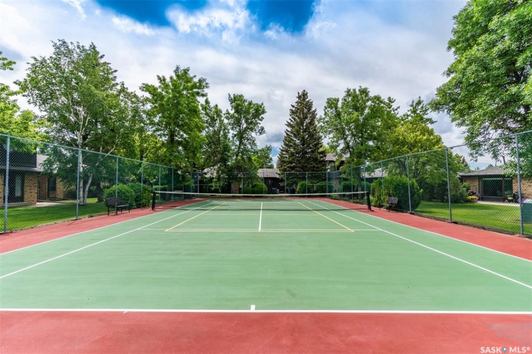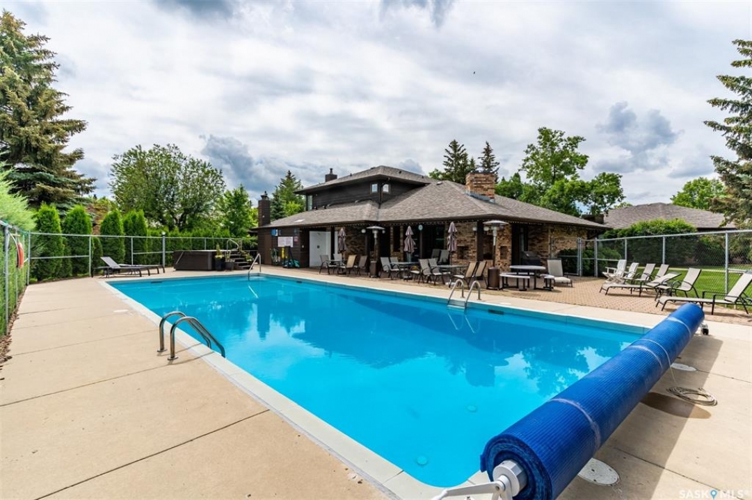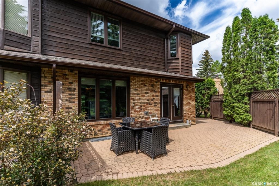 Welcome to one of Saskatoons finest condominium developments- Heritage Estates. This 1795 sq.ft, two story townhouse has had numerous upgrades including a stunning kitchen complete with leather looking countertops and island with gorgeous countertop. During the renovations they also added in a built in hutch in dining nook area. There is a gas FP in living room that compliments both dining and living room area. Garden doors off nook to rear interlocking brick patio and grassed area with the pool and clubhouse access nearby. The home offers 2 bedrooms plus a den that overlooks the main floor front entry (potentially could be a 3rd bedroom)on the 2nd floor. The Master bedroom offers 3 closets as well as a 4 piece ensuite consisting of double sinks in vanity, toilet plus a large soaker tub. The 2nd bedrooms is also a good size with double closet. The main floor also offers a 2 piece bath/laundry combination room. This home has had numerous upgrades including the triple pane LowE argon PVC windows and a upgraded water heater. The double attached garage is finished and offers direct entry (inside dimensions are 23' deep by 20' wide). The lower level has approx 9' high ceilings and is open for your own personal development. Condo fees are set at $578/month (Professionally managed) which includes common insurance & maintenance, snow removal for driveway and sidewalk and roadway within complex, lawn care, garbage & reserve fund. This development has recently had all roofs within the redone. Not only will you appreciate the luxury living space, you can immerse yourself into the community offered within this long standing condo complex. They have a variety of weekly events with a Thursday Happy hour, pickle ball, coffee gatherings and plenty of card games. You will be able to enjoy the outdoor pool, and recreation center and tennis courts that also serve as pickle ball courts. Taxes for 2025 $4111. For more information on this outstanding home contact your agent to view.