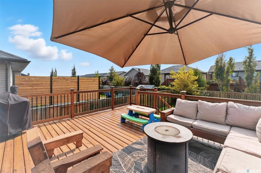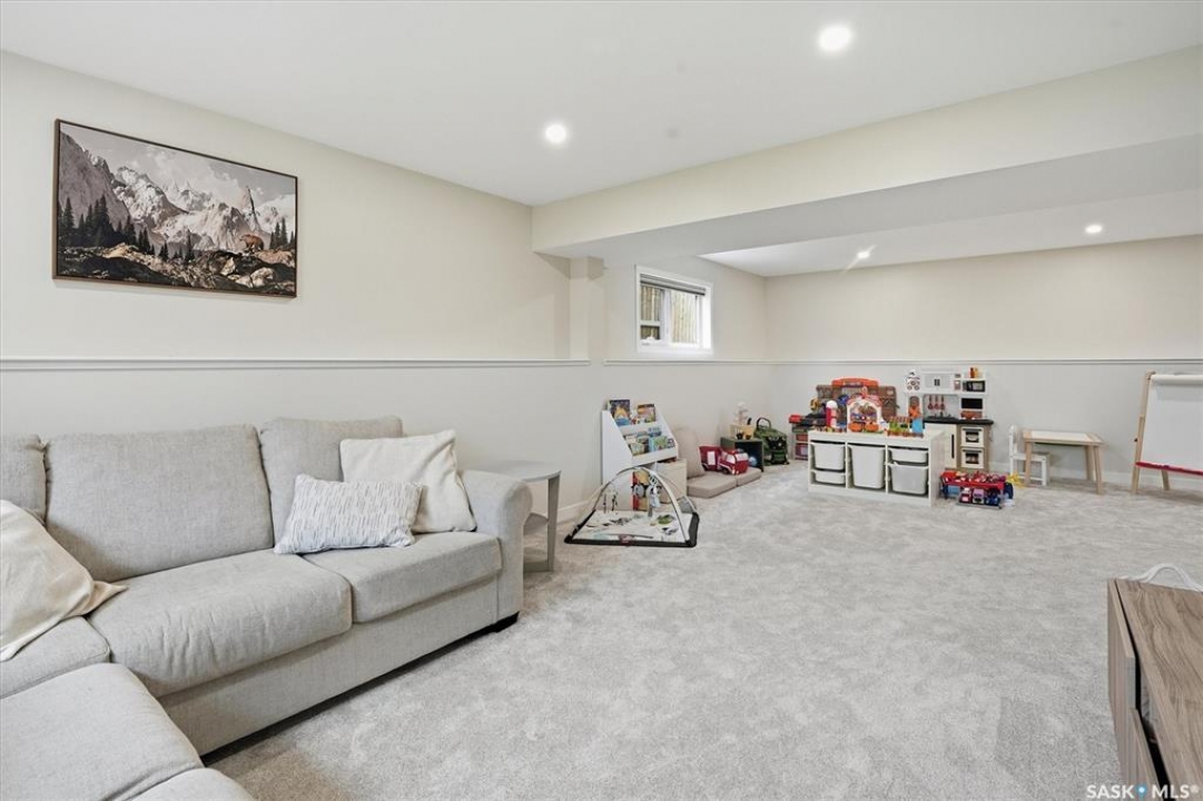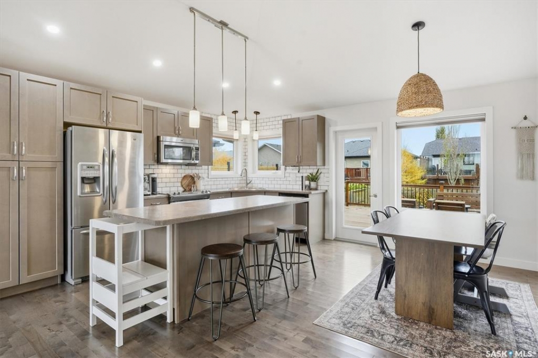 This beautifully designed bi-level home combines modern comfort with functional family living. The open-concept main floor features engineered hardwood flooring throughout the living room, kitchen, and dining areas. Vaulted ceilings and large windows fill the space with natural light, showcasing a custom feature wall in the living room. The kitchen is a chef's delight, offering a large island, abundant storage and counter space, a timeless subway tile backsplash, and a corner sink with views of the backyard. Garden doors off the dining area lead to a spacious deck, perfect for effortless indoor-outdoor entertaining. The main level includes a 4pc main bathroom and three bedrooms down the hall, including a lovely primary suite with a walk-in closet and 4-piece ensuite. The fully finished basement expands your living space with a bright family room, a games area, large windows, plush carpeting, a fourth bedroom, a stunning 3-piece bathroom, and a large laundry area with plenty of storage. The heated double attached garage impresses with epoxy flooring, and 10' ceilings. Enjoy the expansive backyard with plenty of room for kids and pets to play. Great location with easy access for your daily commute, walking distance to schools and parks. Call your favorite Realtor � today and come see it for yourself!