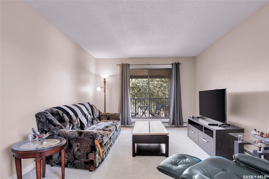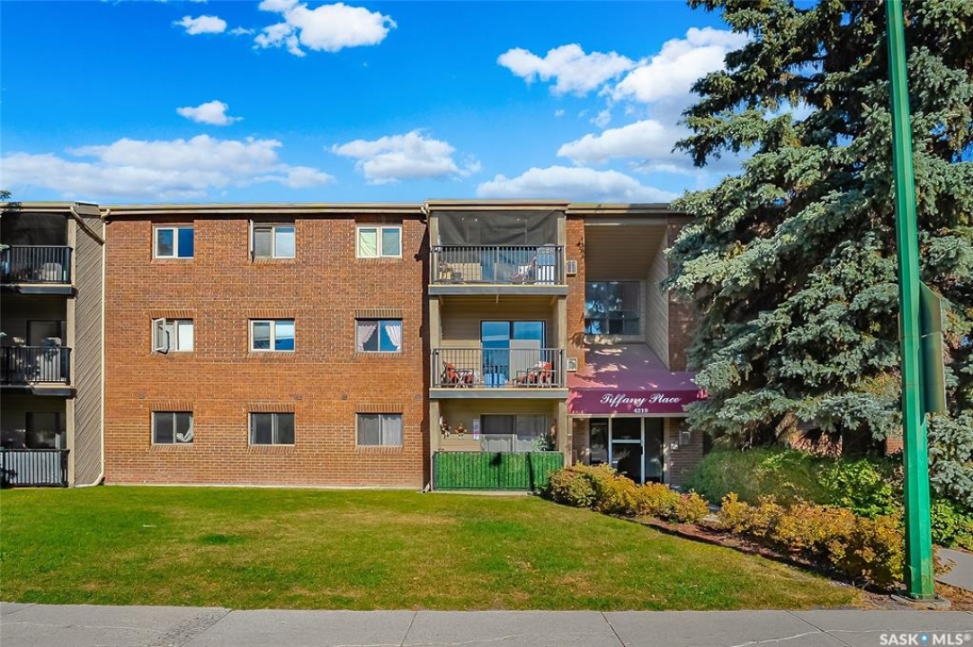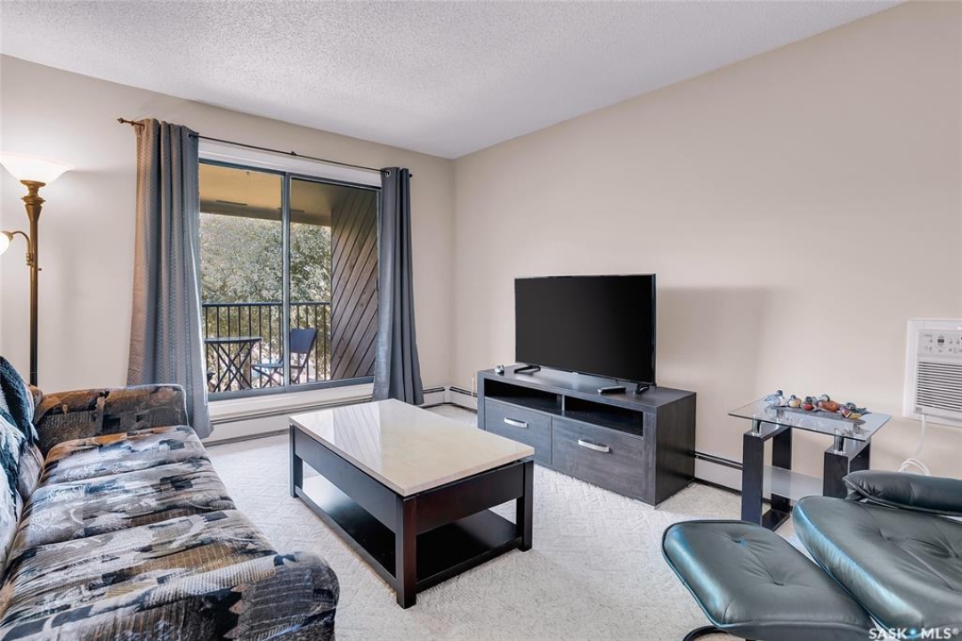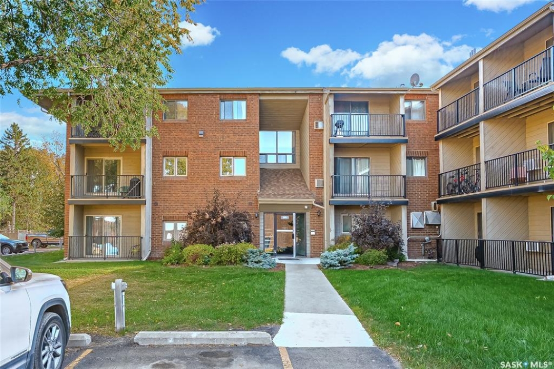 Are you looking for top-floor, corner-unit living, aka no noisy neighbours above you and way better natural light for your houseplants (or your gaming setup)? This bright and well-kept 2-bedroom, 1-bath condo in Tiffany Place offers 760 square feet of easy living with quick possession available, so you can be unpacking before your next rent payment is due. The updated kitchen has refreshed cabinetry and plenty of room for takeout containers and actual cooking. The open living area is filled with sunshine from the west-facing balcony. It's the perfect spot for sunsets, study breaks, or convincing your friends you're thriving at adulthood. Wall-mounted A/C keeps things cool all summer, and the in-suite storage room handles everything from camping gear to your “someday” treadmill. You'll have your own electrified parking stall, so no more winter extension-cord acrobatics or endless street-parking searches. The building is quiet, clean, and ideal for anyone who wants low-maintenance living with zero drama. East College Park is one of Saskatoon's most underrated areas. It's family-friendly, close to the U of S, and just minutes from 8th Street's shopping, groceries, and coffee options. Plus, Circle Drive is right nearby for quick access anywhere in the city. If you've been looking for your first place, your freedom pad, or just an escape from landlord life, this one hits all the right notes. Affordable, comfortable, and completely move-in ready, it's basically the adulting upgrade you've been waiting for. Book your private showing and see what all the fuss is about!