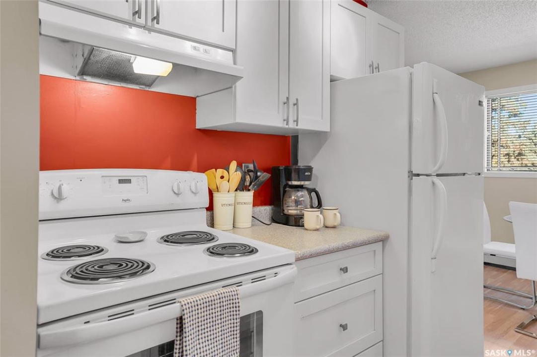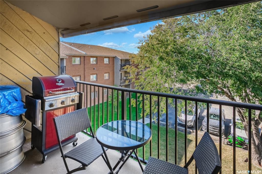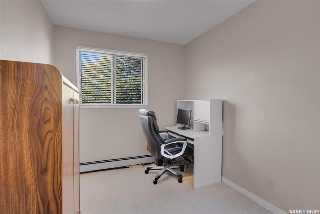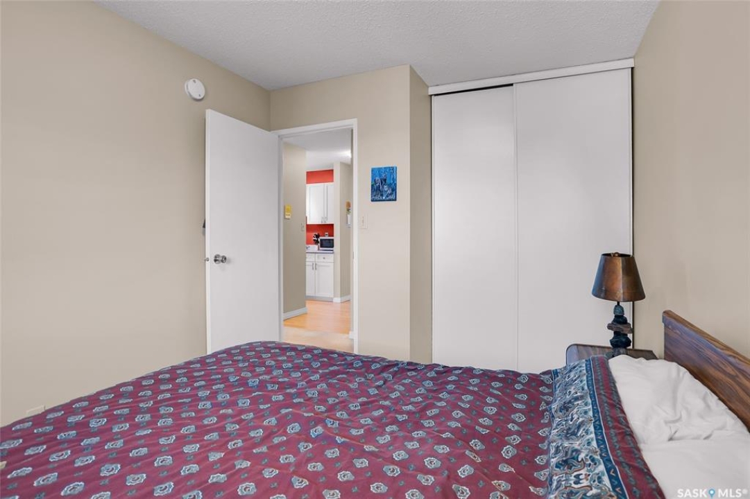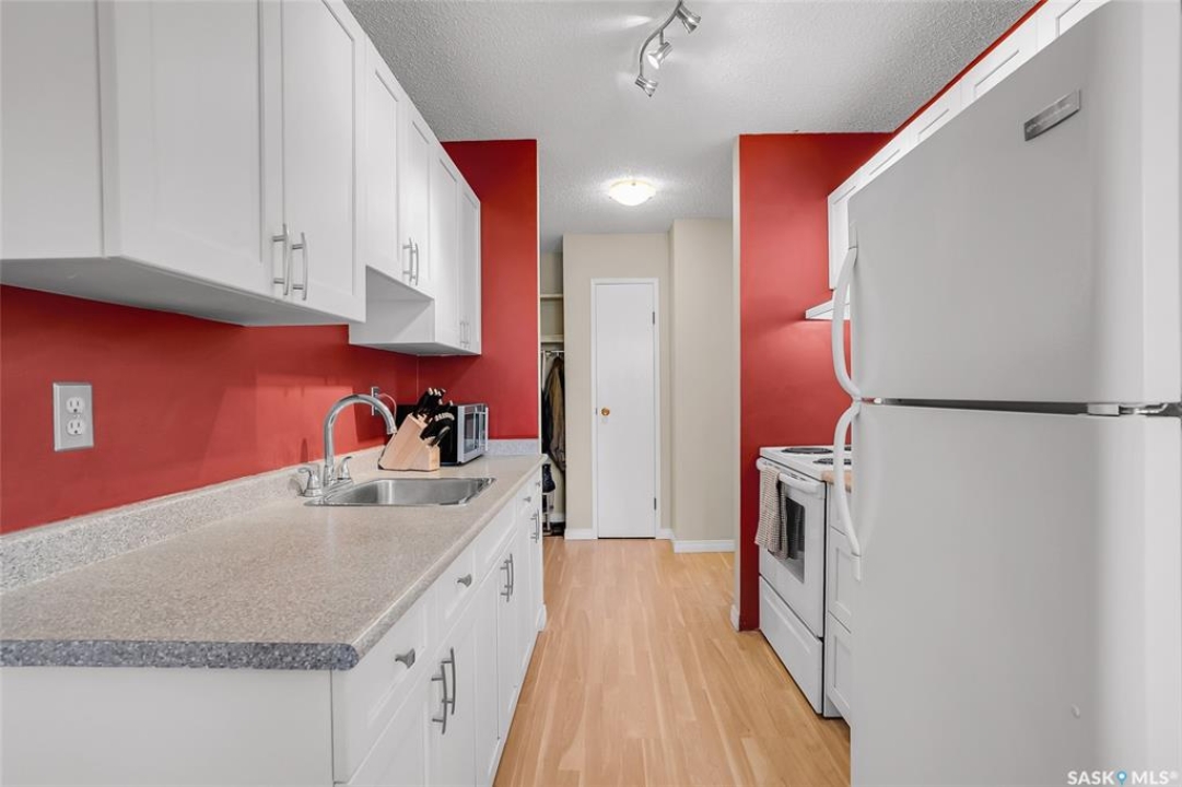 Are you looking for top-floor, corner-unit living, aka no noisy neighbours above you and way better natural light for your houseplants (or your gaming setup)? This bright and well-kept 2-bedroom, 1-bath condo in Tiffany Place offers 760 square feet of easy living with quick possession available, so you can be unpacking before your next rent payment is due. The updated kitchen has refreshed cabinetry and plenty of room for takeout containers and actual cooking. The open living area is filled with sunshine from the west-facing balcony. It's the perfect spot for sunsets, study breaks, or convincing your friends you're thriving at adulthood. Wall-mounted A/C keeps things cool all summer, and the in-suite storage room handles everything from camping gear to your “someday” treadmill. You'll have your own electrified parking stall, so no more winter extension-cord acrobatics or endless street-parking searches. The building is quiet, clean, and ideal for anyone who wants low-maintenance living with zero drama. East College Park is one of Saskatoon's most underrated areas. It's family-friendly, close to the U of S, and just minutes from 8th Street's shopping, groceries, and coffee options. Plus, Circle Drive is right nearby for quick access anywhere in the city. If you've been looking for your first place, your freedom pad, or just an escape from landlord life, this one hits all the right notes. Affordable, comfortable, and completely move-in ready, it's basically the adulting upgrade you've been waiting for. Book your private showing and see what all the fuss is about!