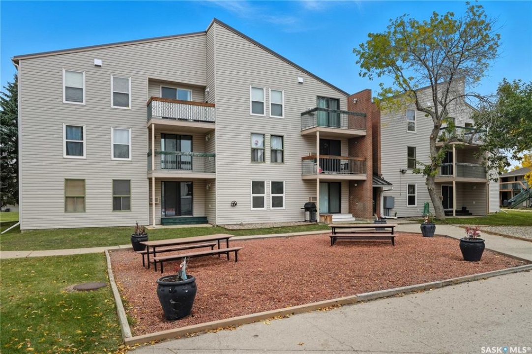 Looking for your first home or a smart investment? This is a clean and well maintained 1 bedroom /1 bathroom condo (corner unit) offering comfort, convenience and incredible value. The open concept living and dining area is bright and the perfect space for relaxing while enjoying a nice view out the patio doors. The galley style kitchen offers functional cupboard and counter space, making meal prep a breeze. The breakfast nook could be set up with a desk to accommodate a home office area. The bathroom has been refreshed with a bathfitter tub surround. The large in-suite storage room is a convenient and safe place to store a small deep freeze, or your bike, luggage, winter tires, etc. Step out onto your private balcony and enjoy peaceful views of the landscaped greenspace — the ideal spot for morning coffee or unwinding after work. The flooring throughout the main living areas was updated 3 years ago. This unit includes an electrified parking stall (stall #53) and is pet-friendly (with restrictions). Condo fees of $375.09/month cover heat, water, exterior maintenance, building insurance and reserve fund, so you can enjoy a worry-free lifestyle or hassle-free rental income. A common laundry room is located on the main floor. Medford Mews is located close to shopping (Normanview Shopping Centre), the bus stop, a gym, grocery stores, restaurants and the Galaxy Cinema — everything you need is only steps away. Whether you are ready to stop renting or want to add a low-maintenance property to your real estate portfolio, this condo checks all the boxes! Condo was previously rented at $1,100/month.